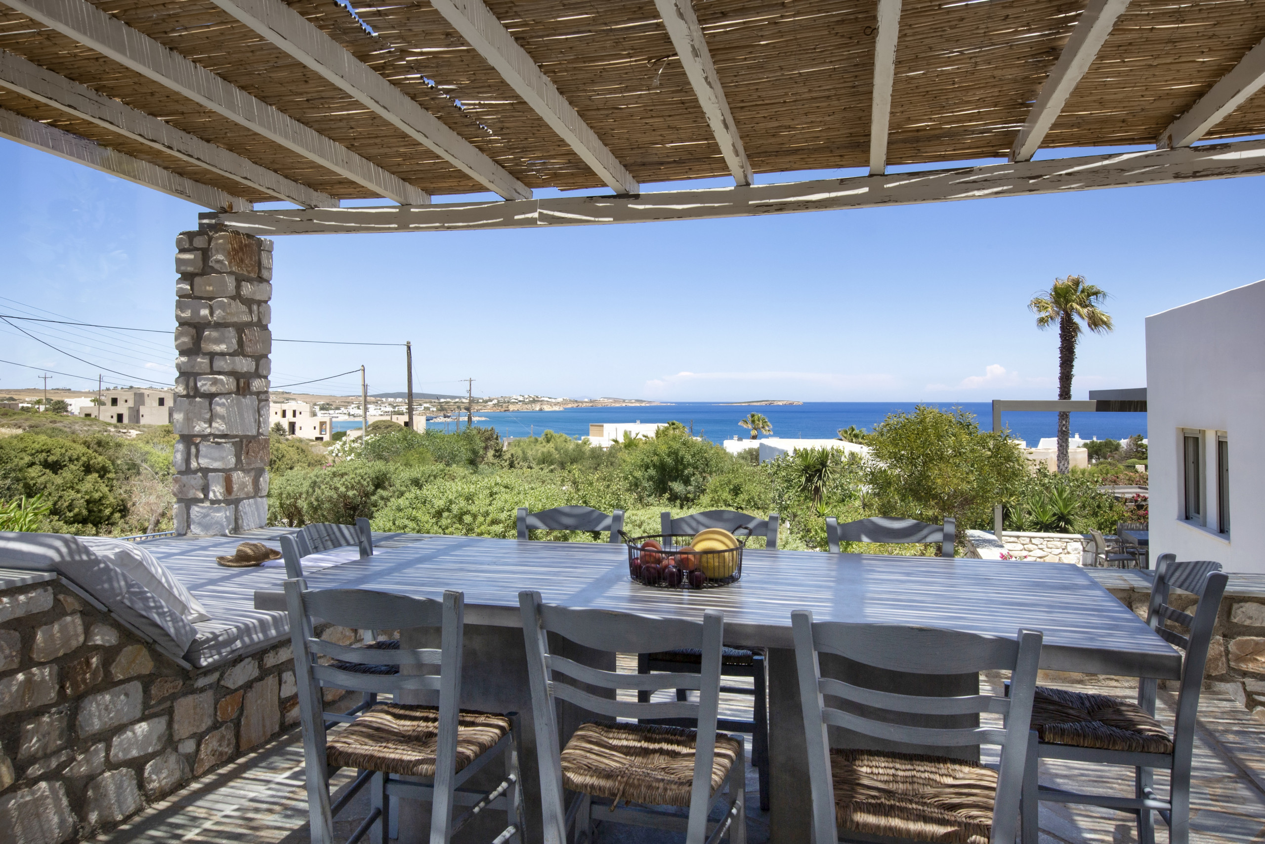 Anemos is the essential upmarket Paros pool villa. A beautiful family residence with stunning sea views and a large garden, it has many shaded areas outdoors for the whole party to wine and dine alfresco. Two gorgeous beaches are just a few steps away. Up to 8 guests can enjoy this private pool villa very comfortably.