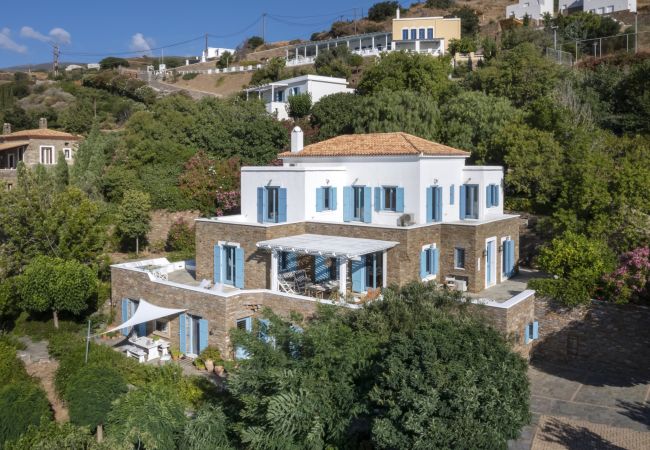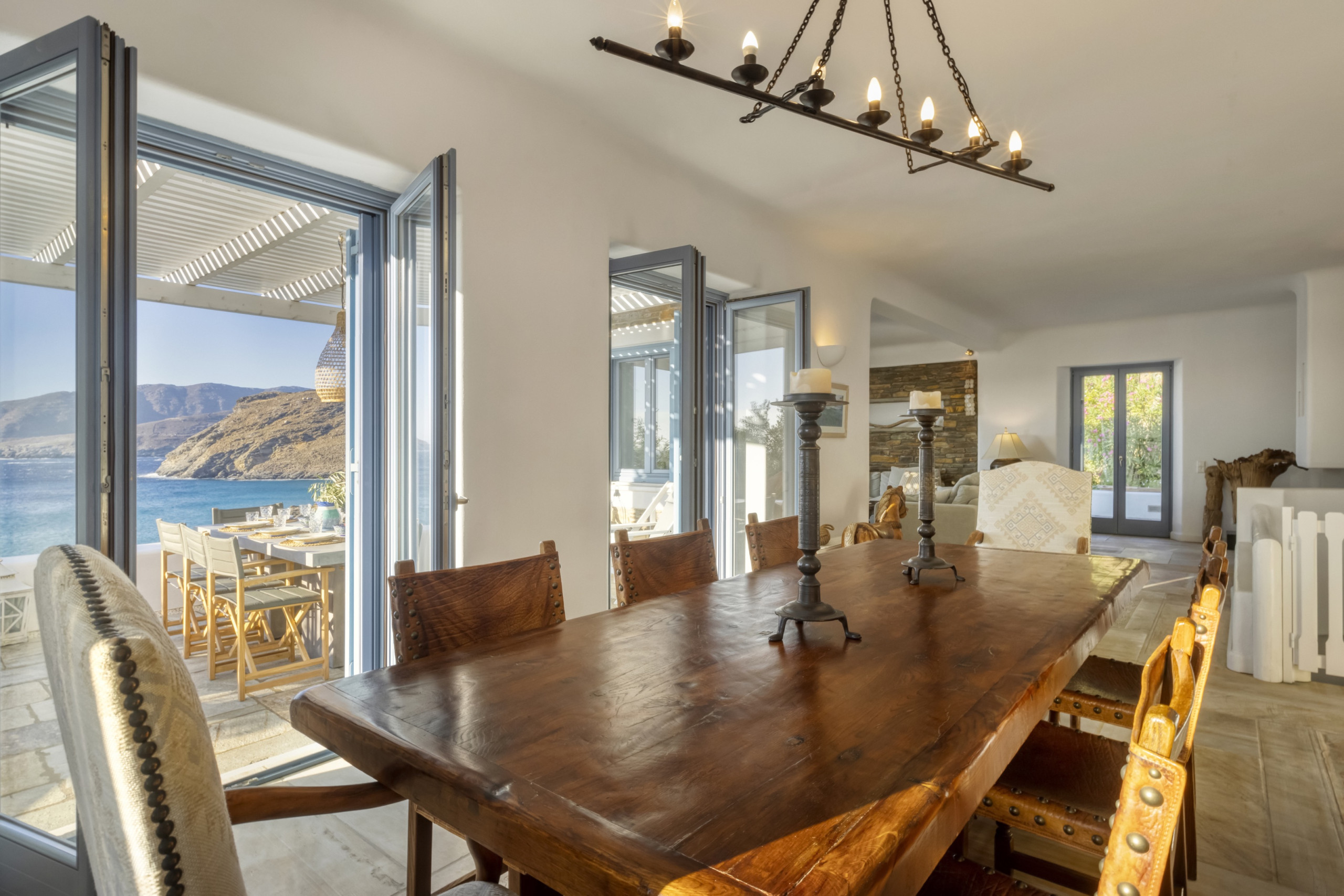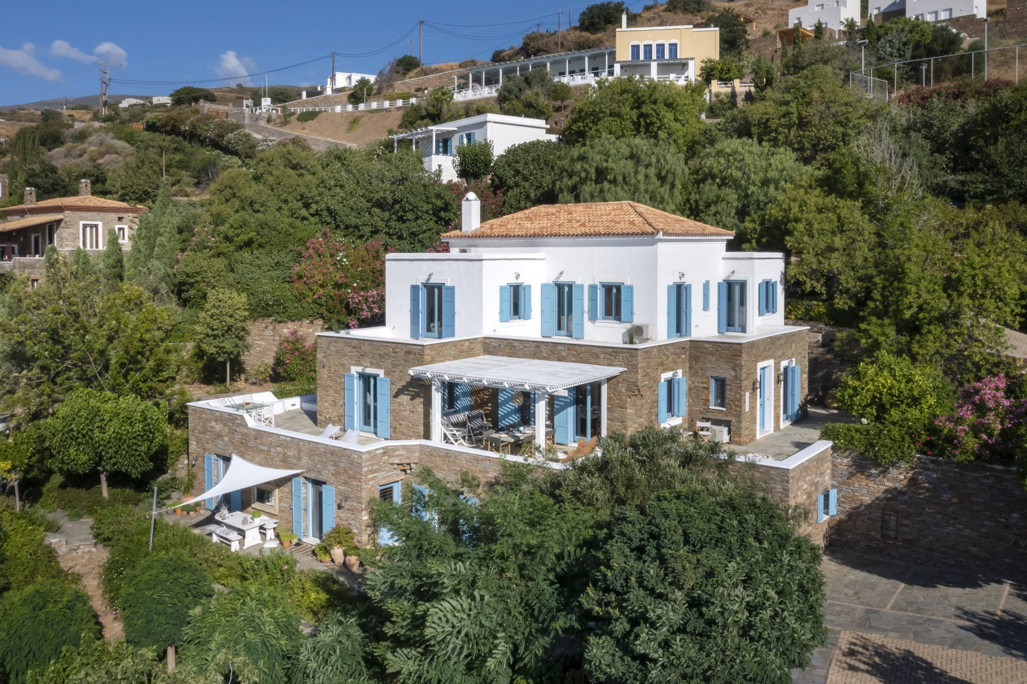 A magnificent seaside villa with superb views over the Aegean, this home has been featured in architecture magazines for its elegant design. Set in an area of exquisite natural beauty, on the noble Greek island of Andros, this substantial 6-bedroom home is just a few meters walk on a private path away from an idyllic sandy beach. Ideal for large groups or families looking to relax in comfort and in one of Greece’s less known and more exclusive islands.