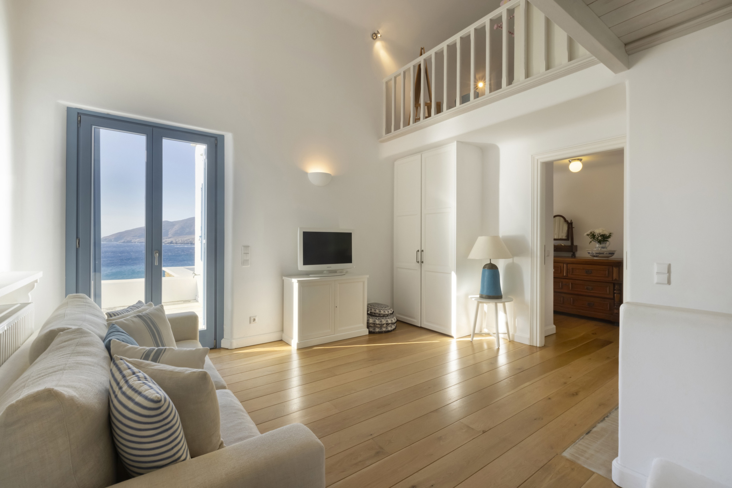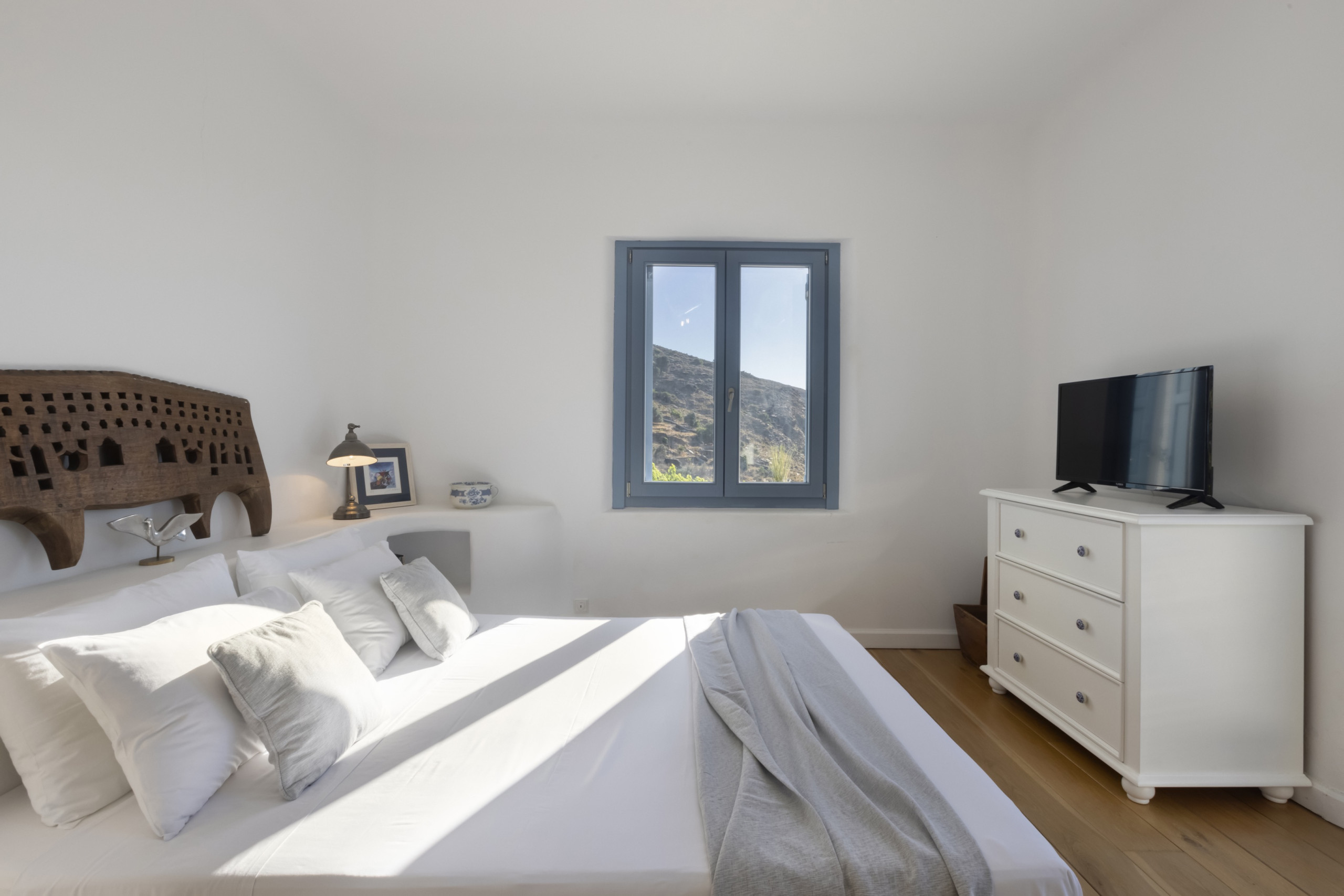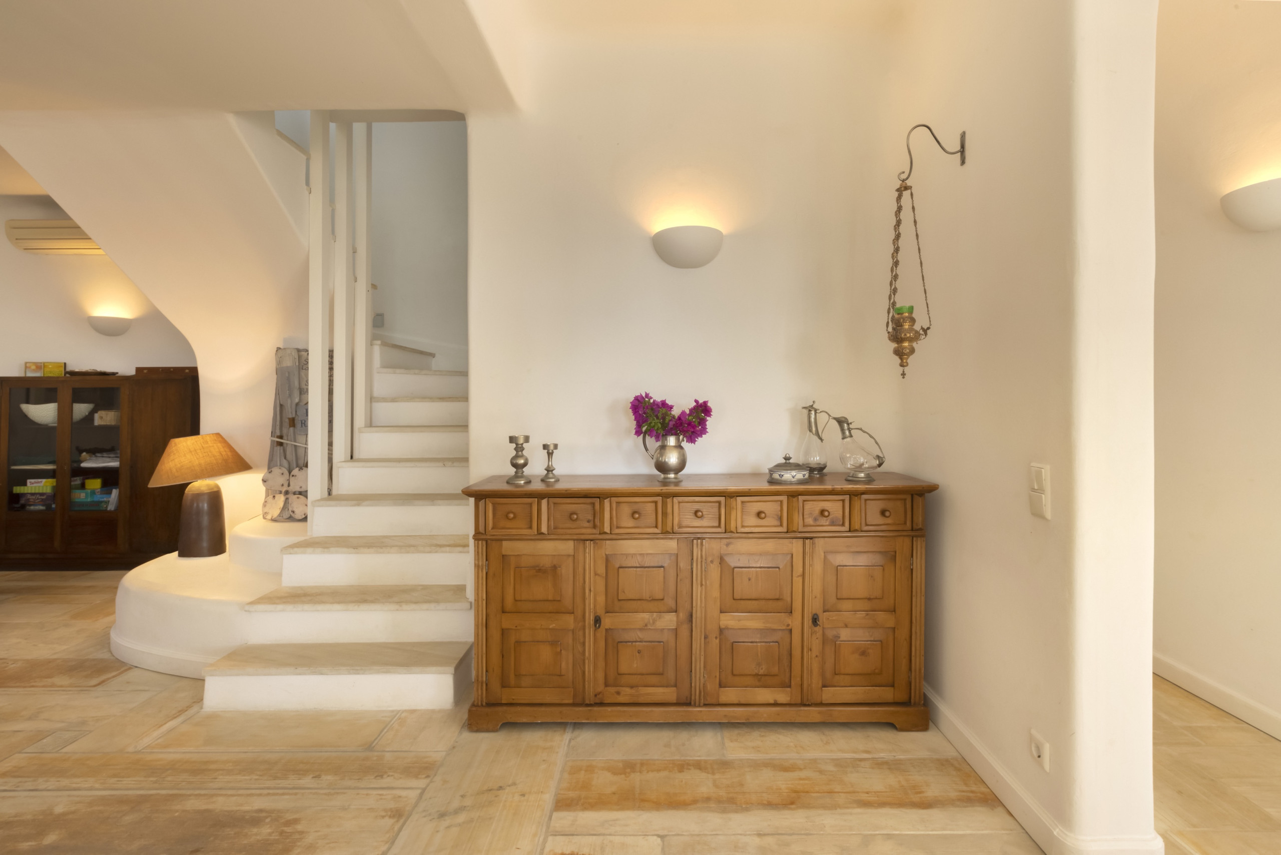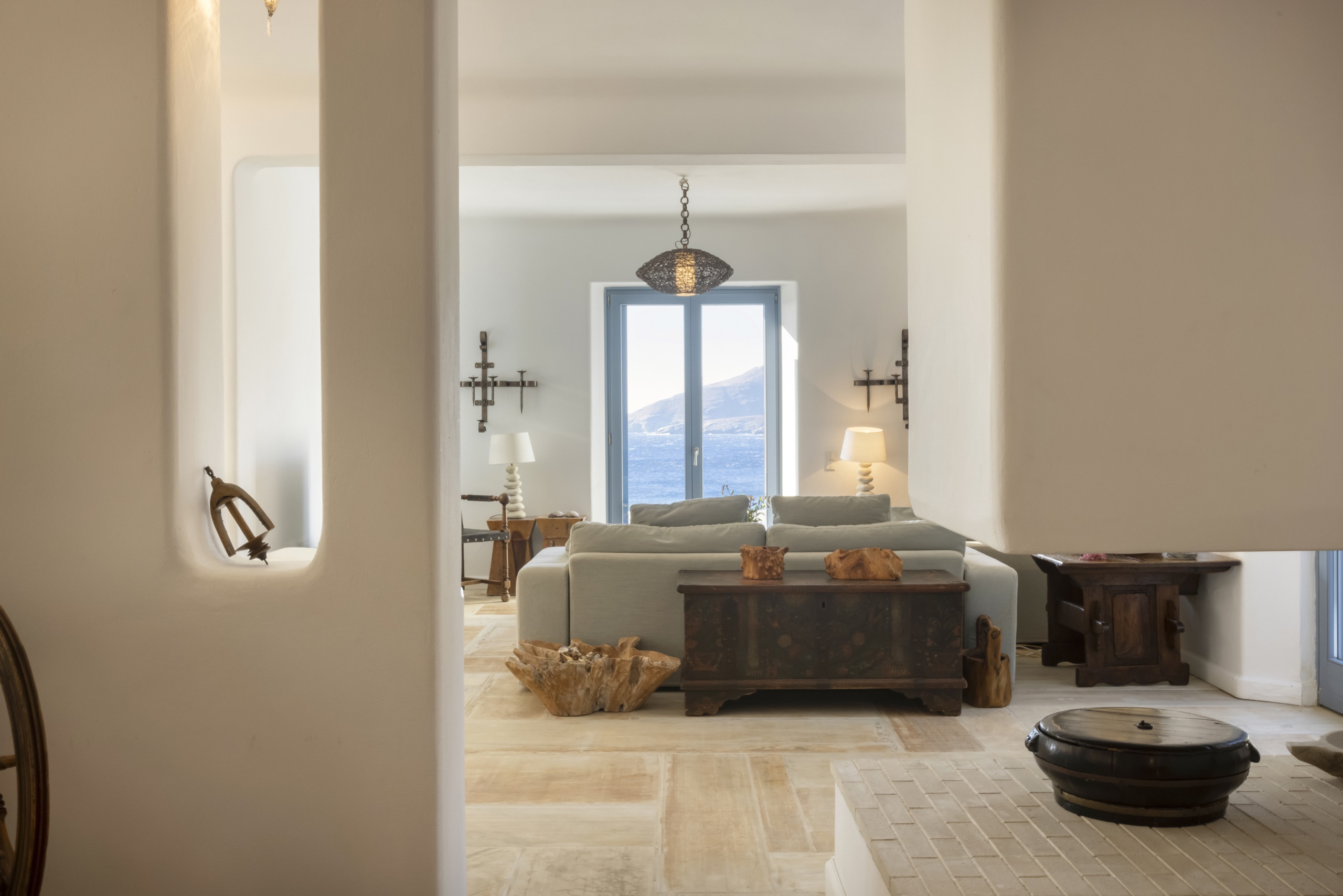 The residence is set on three levels. It has been built in keeping with the local architecture, using local stone and featuring wooden elements and whitewashes walls. From its garden, verandas and outdoor spaces you will savor the Aegean sea, take in the island’s atmosphere and relax in elegance and comfort.