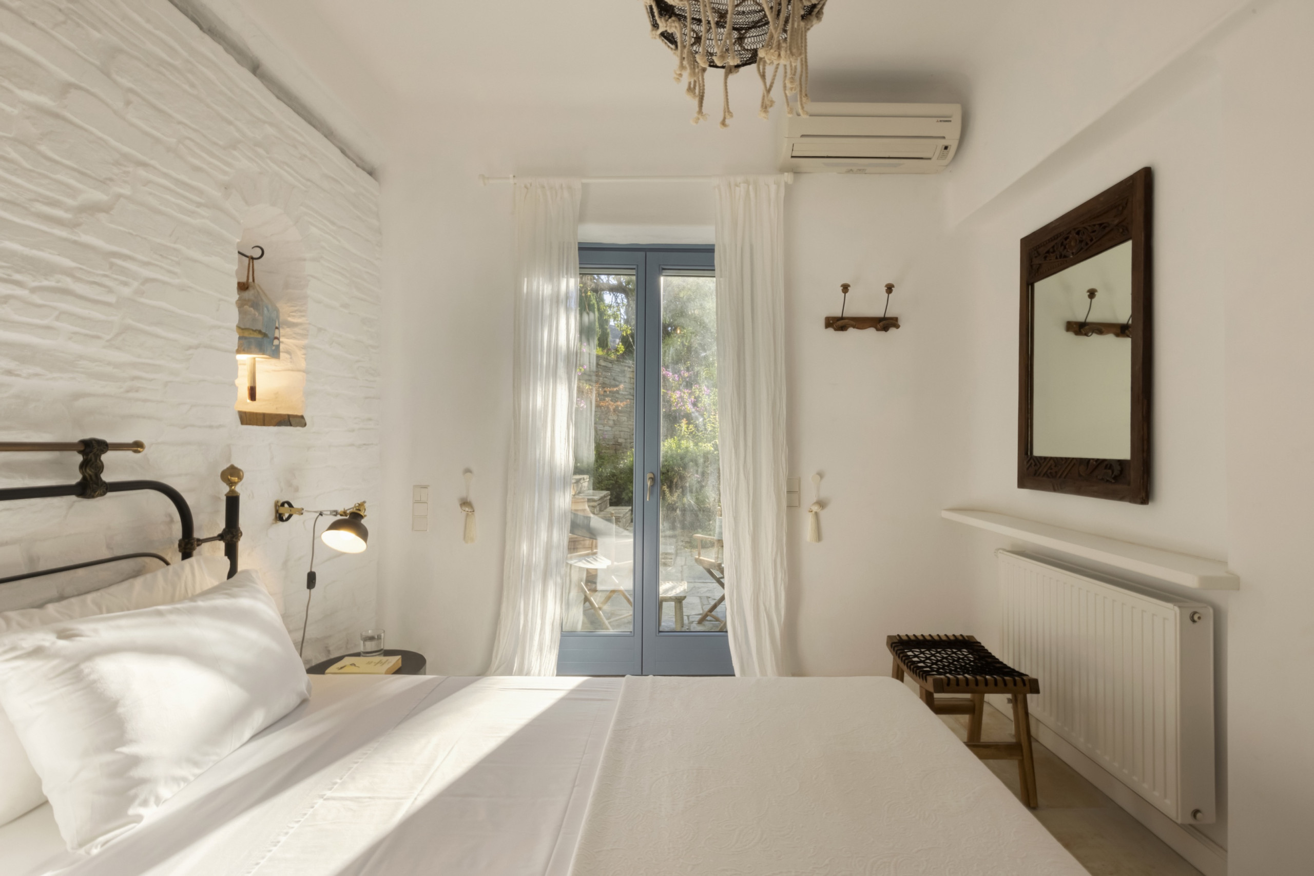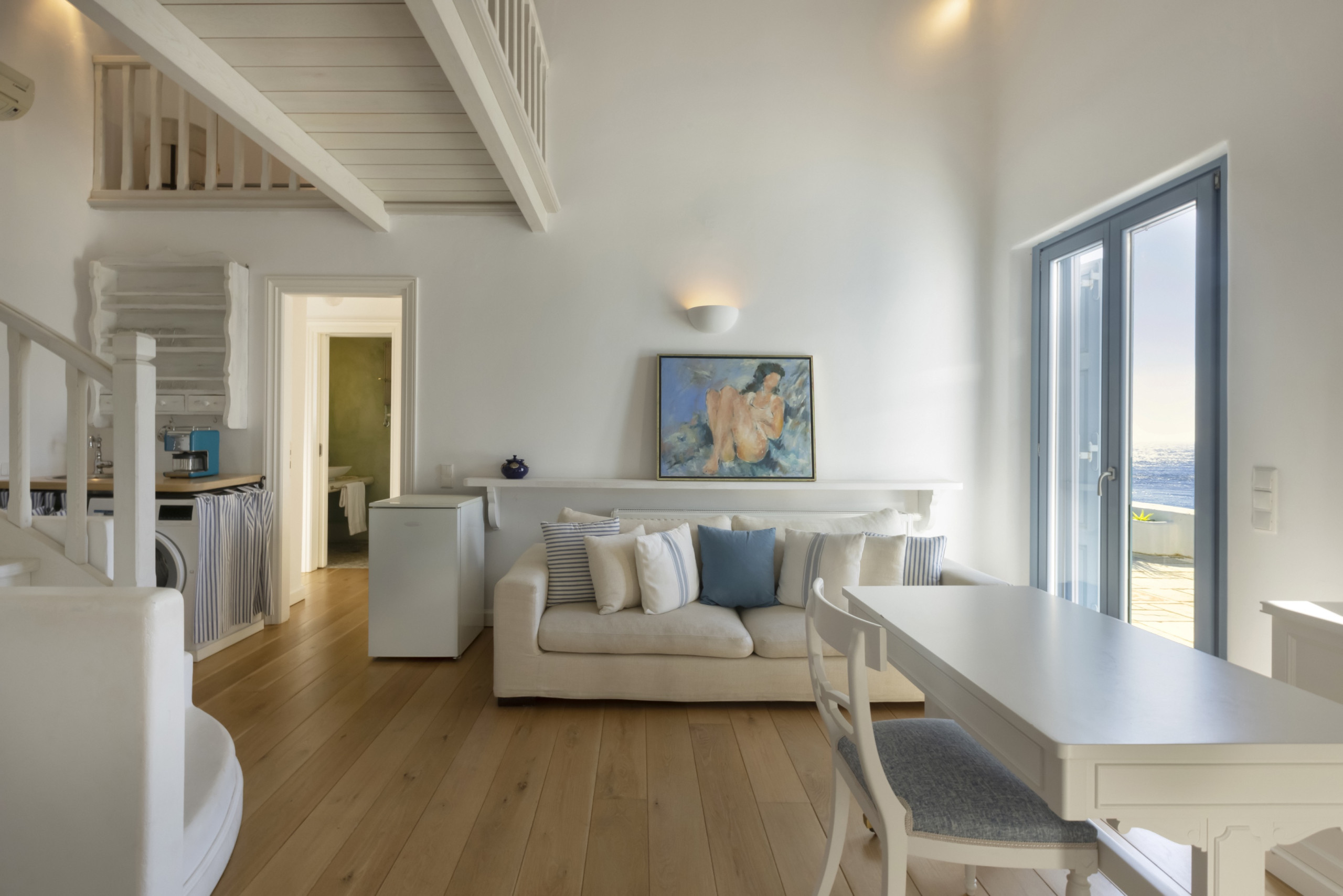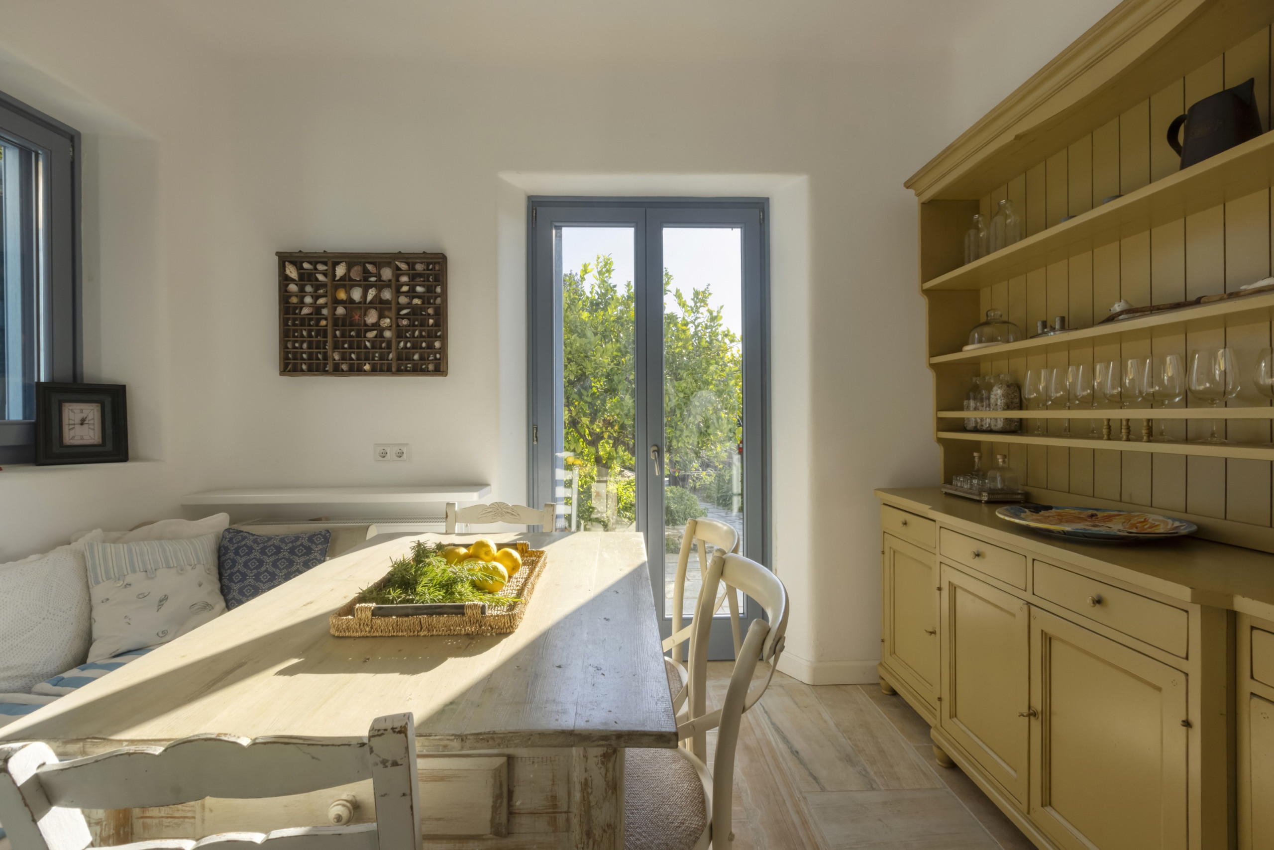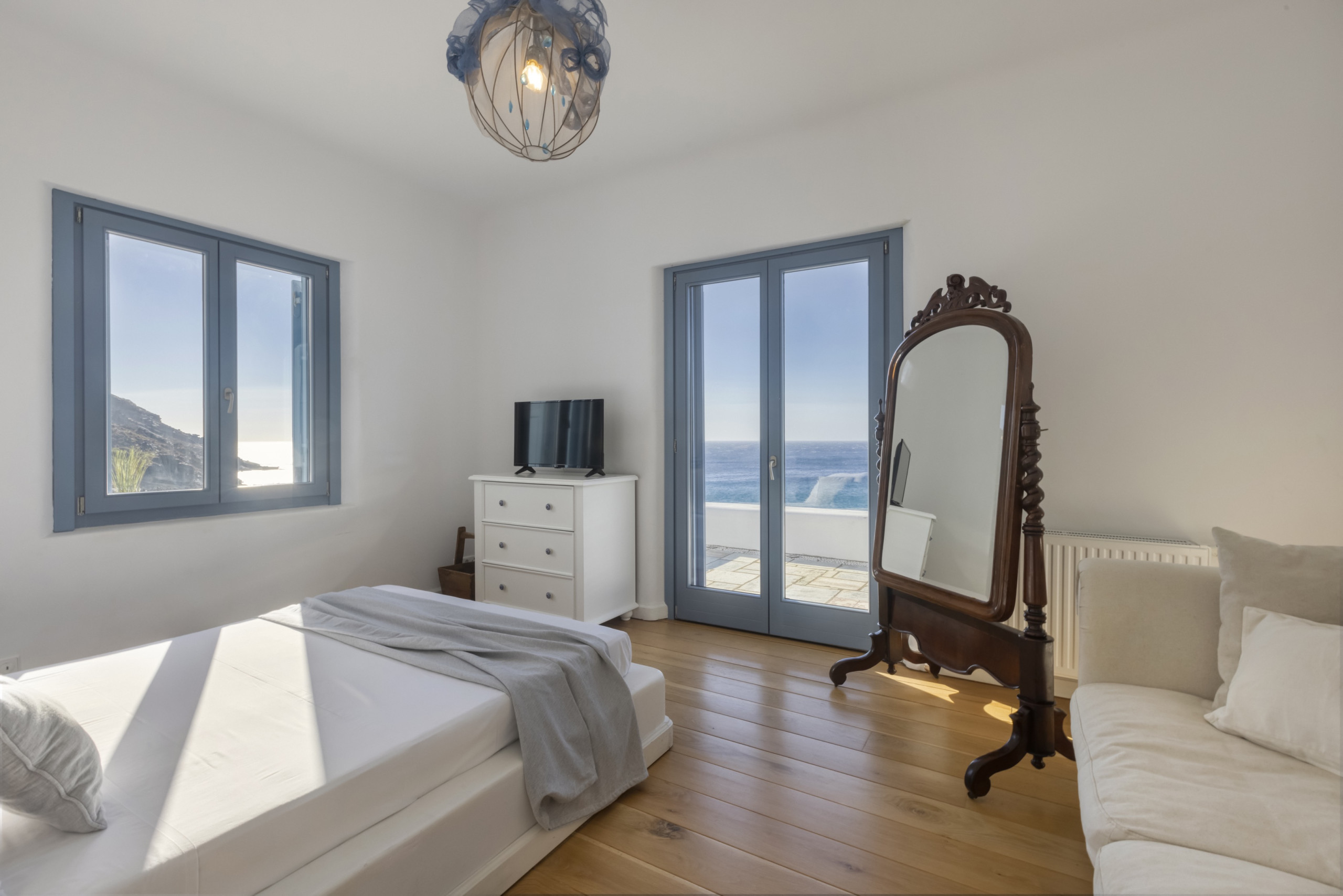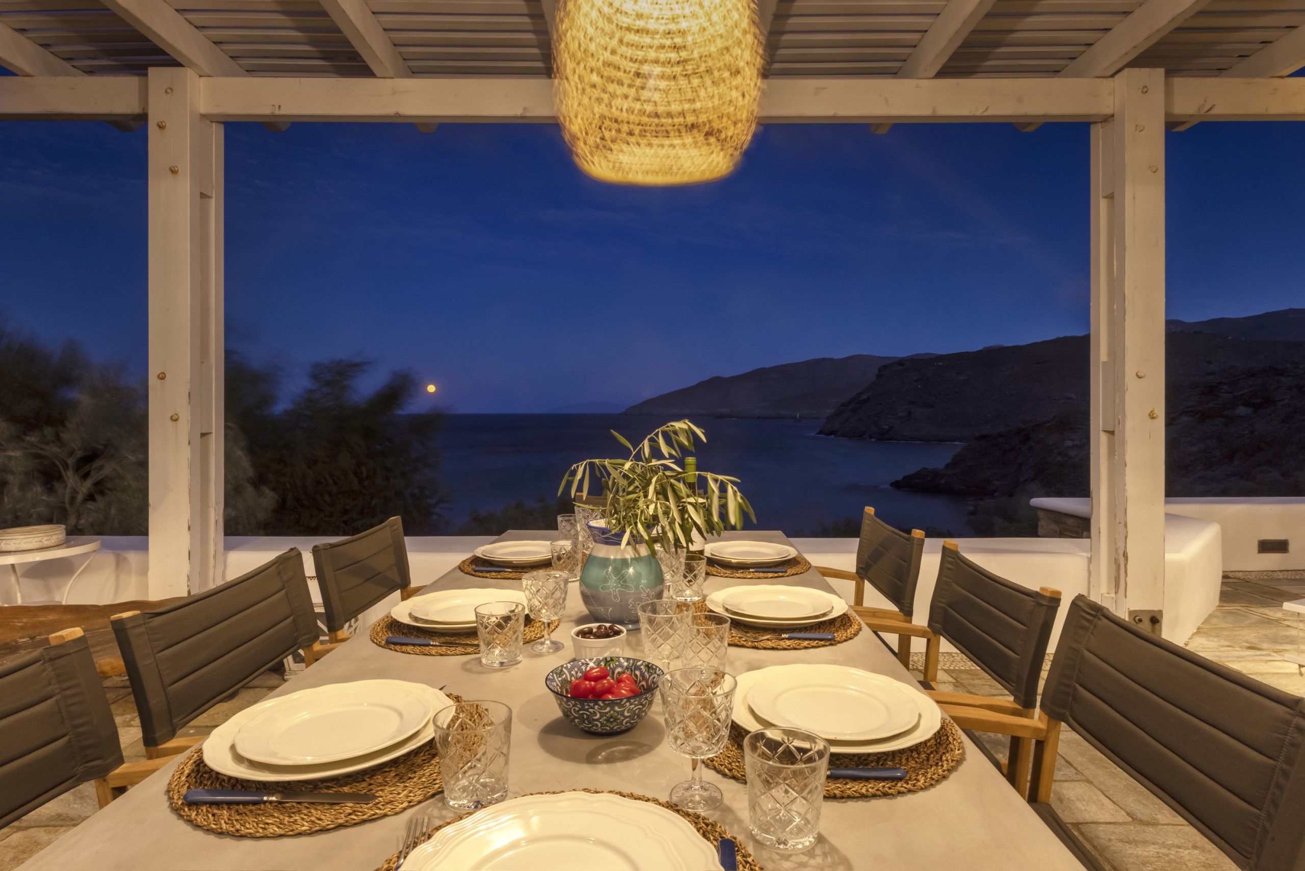 The residence is set on three levels. It has been built in keeping with the local architecture, using local stone and featuring wooden elements and whitewashes walls. From its garden, verandas and outdoor spaces you will savor the Aegean sea, take in the island’s atmosphere and relax in elegance and comfort.