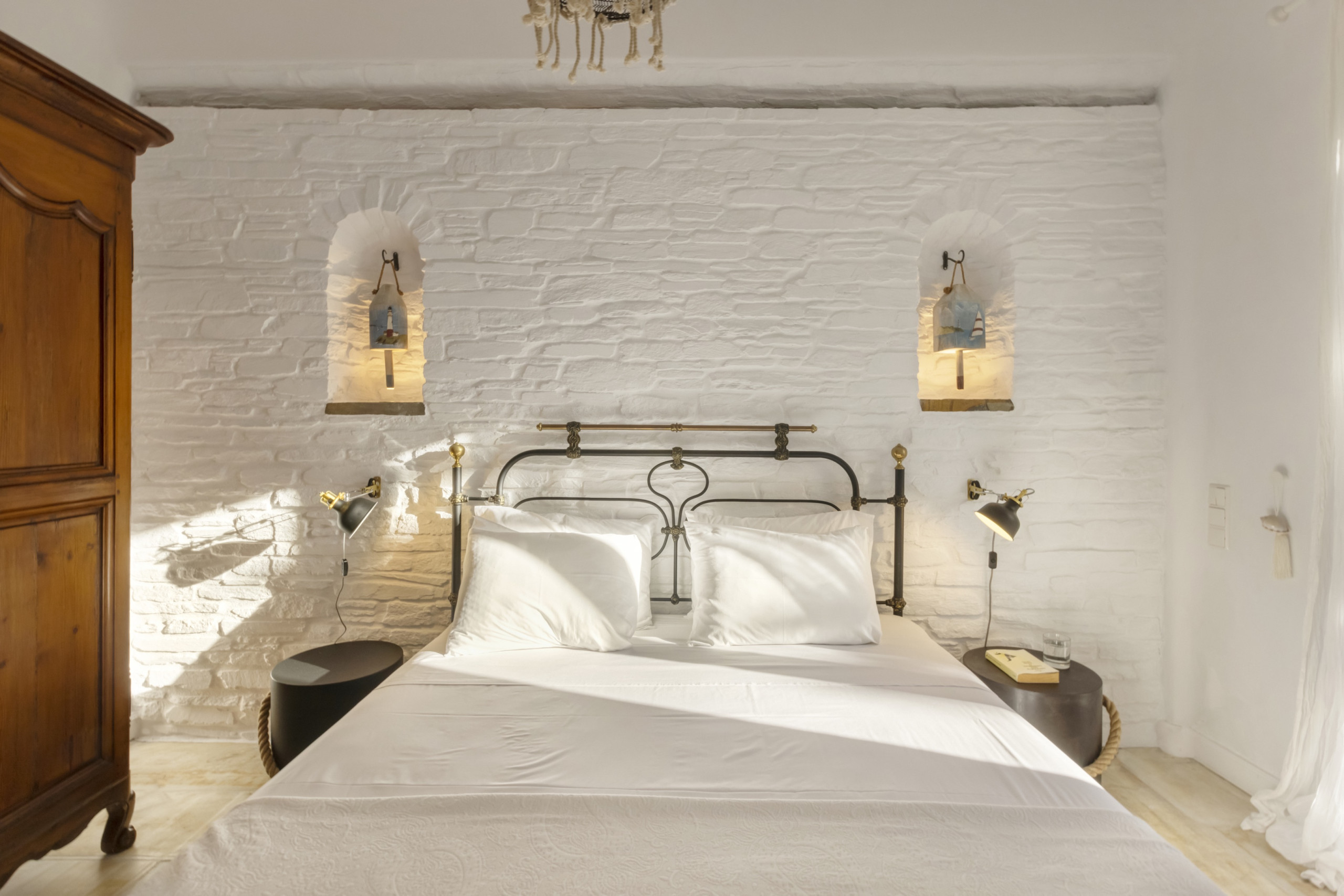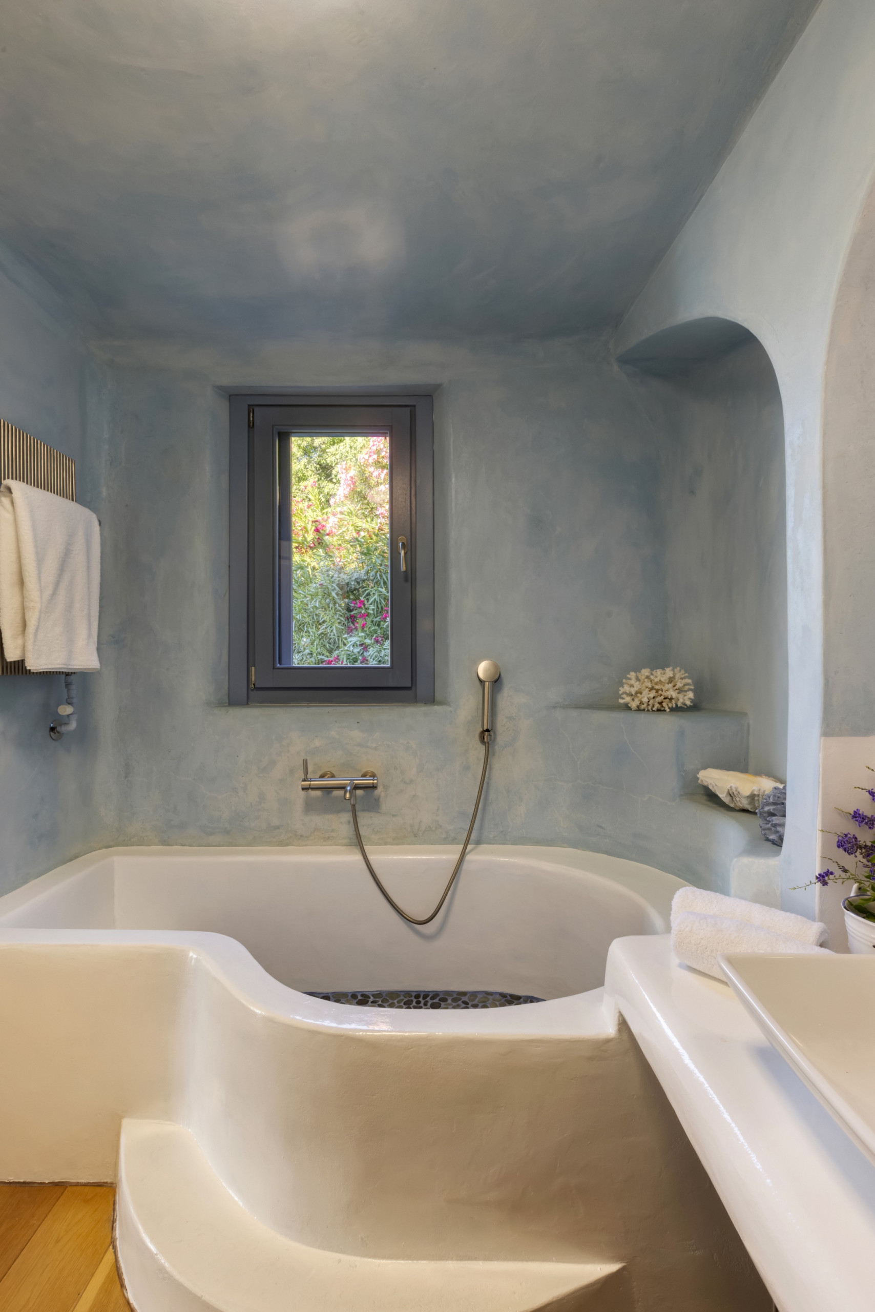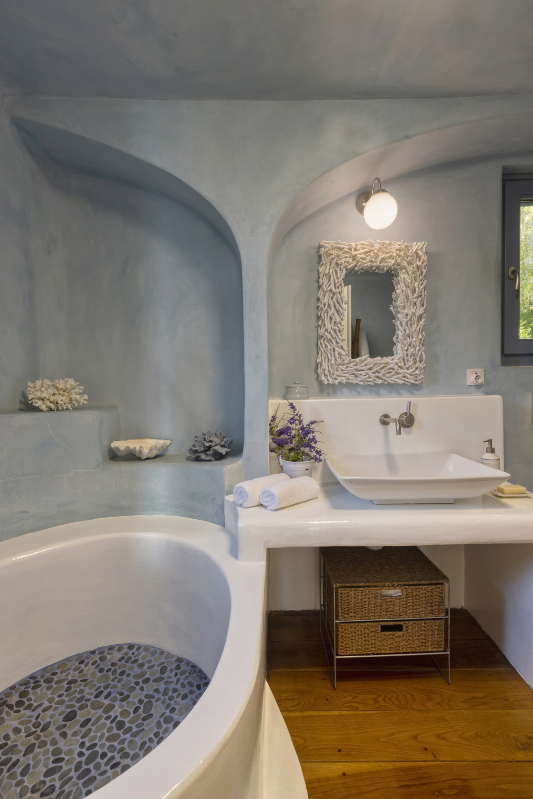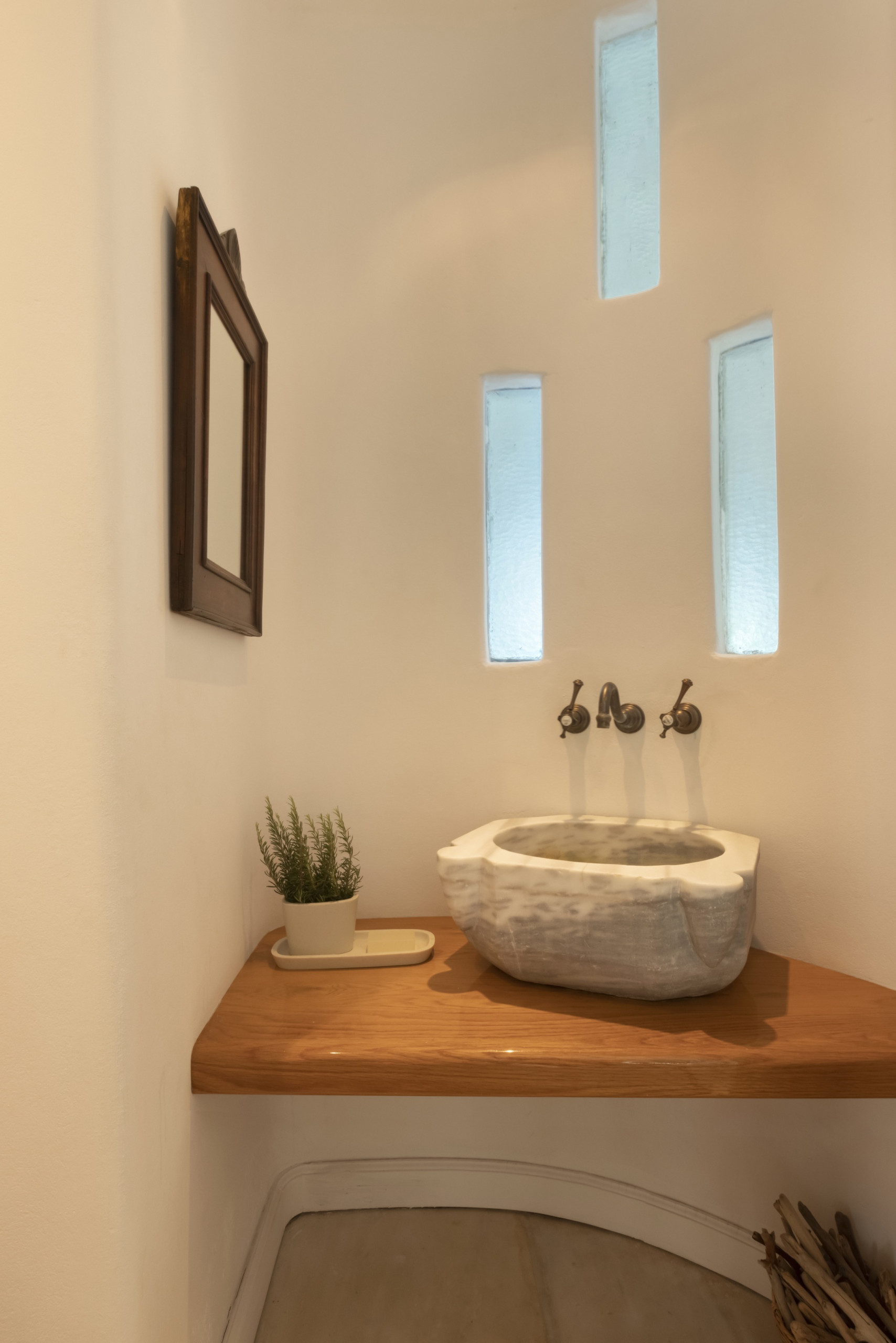 The residence is set on three levels. It has been built in keeping with the local architecture, using local stone and featuring wooden elements and whitewashes walls. From its garden, verandas and outdoor spaces you will savor the Aegean sea, take in the island’s atmosphere and relax in elegance and comfort.