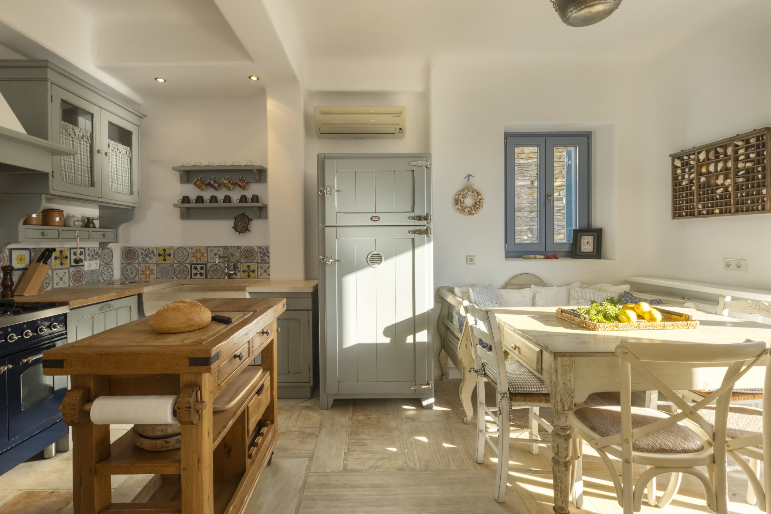 The residence is set near the village of Stenies, a short drive from the main Andros town Hora, where you will be able to find all essential shopping. It is part of a group of five homes, all with private entrances and private outdoors areas. All five homes have direct access to a beautiful sandy beach and there is a taverna nearby.
