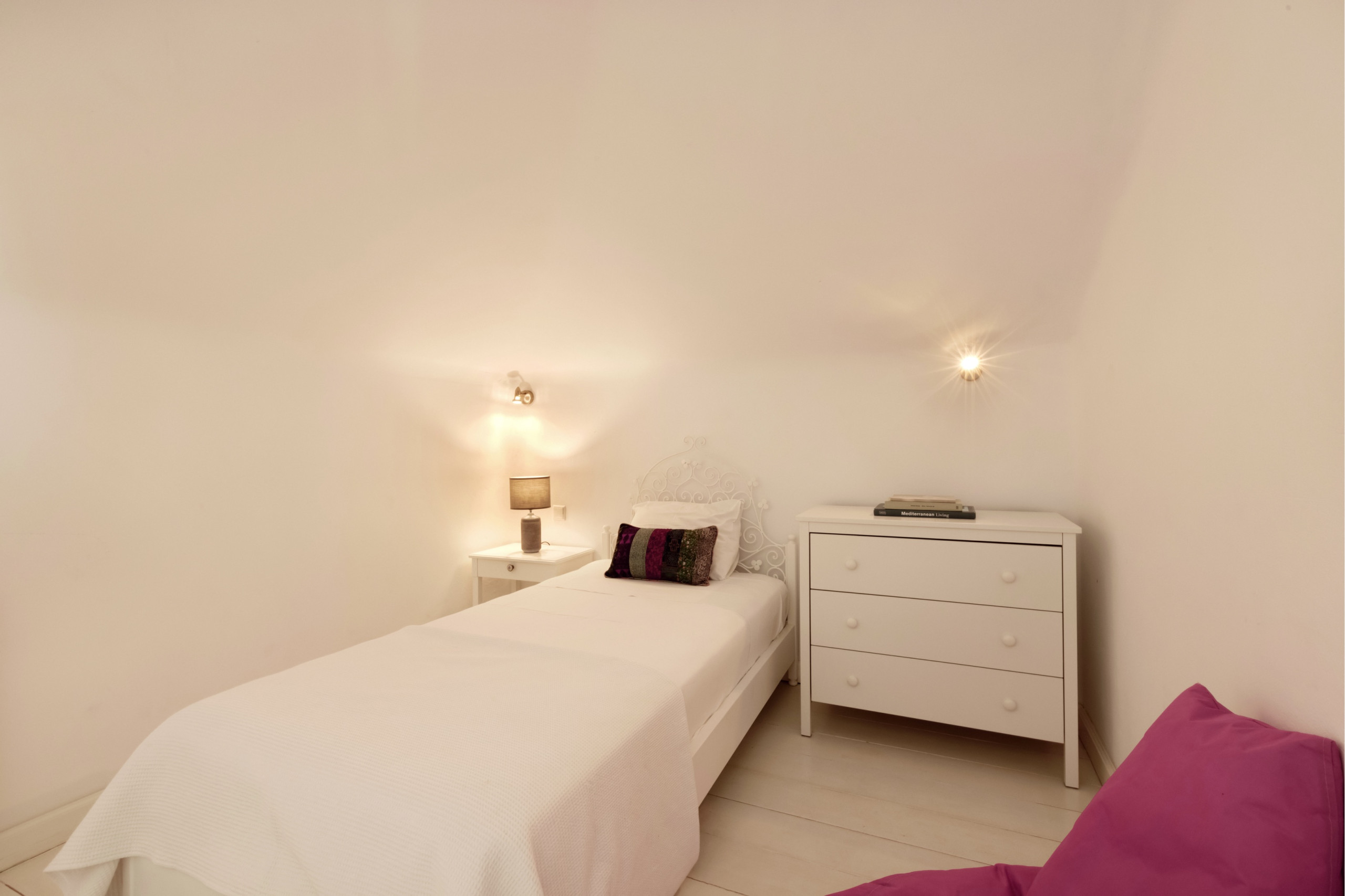 On the first floor there is another living area with a small kitchenette, washing machine and a small refrigerator. There are three bedrooms: the master bedroom with its en-suite bathroom, a bedroom with two single beds, and another with one single bed. There is also another bathroom. This level has its very own separate entrance should you want to use it for more privacy.
