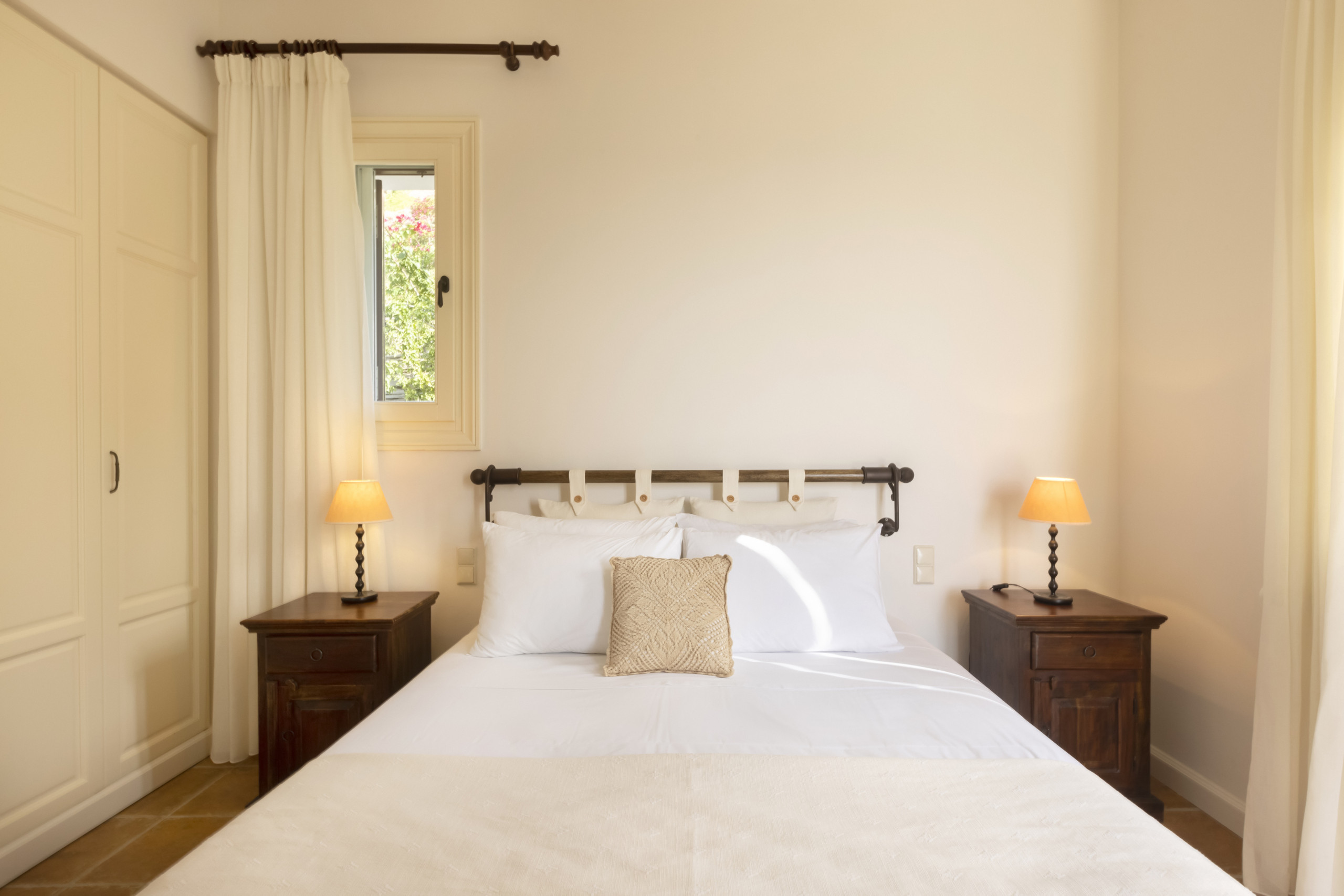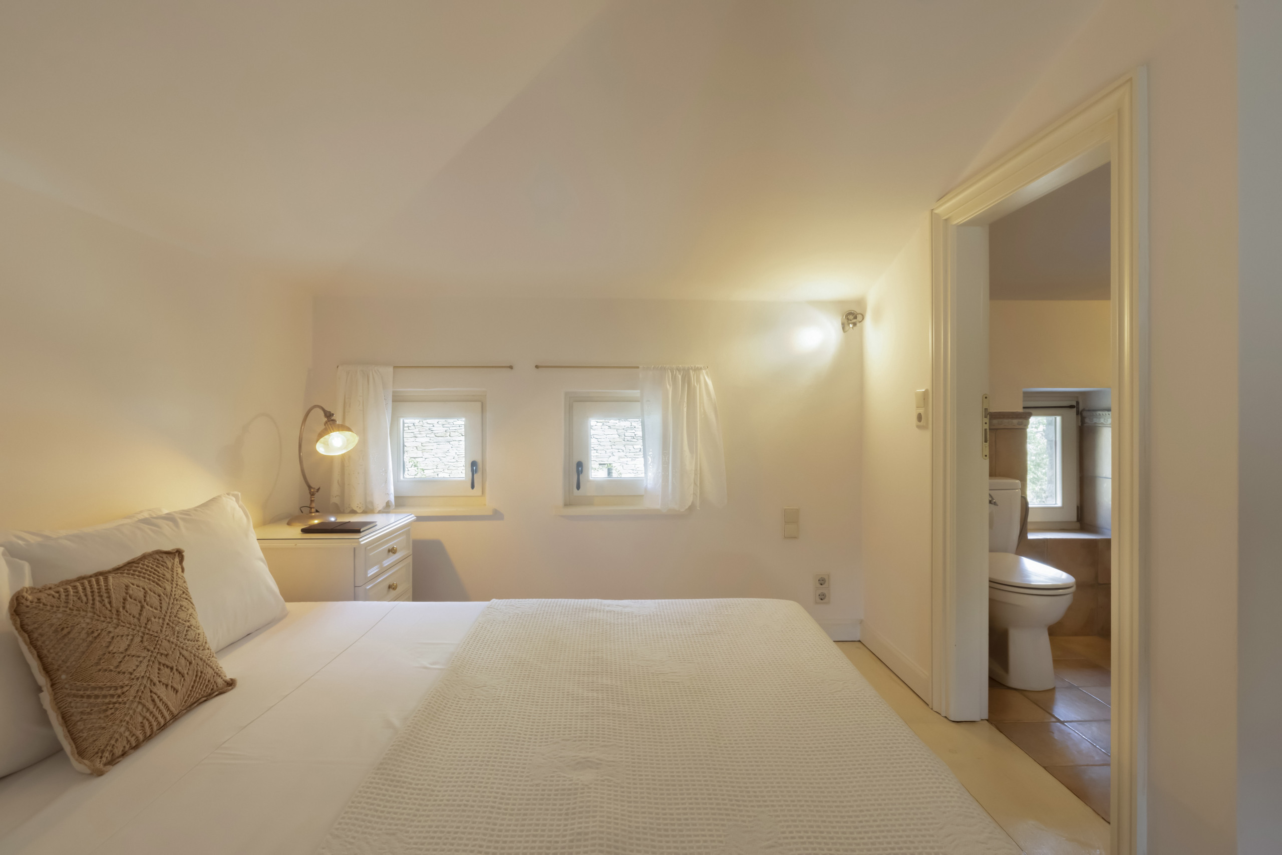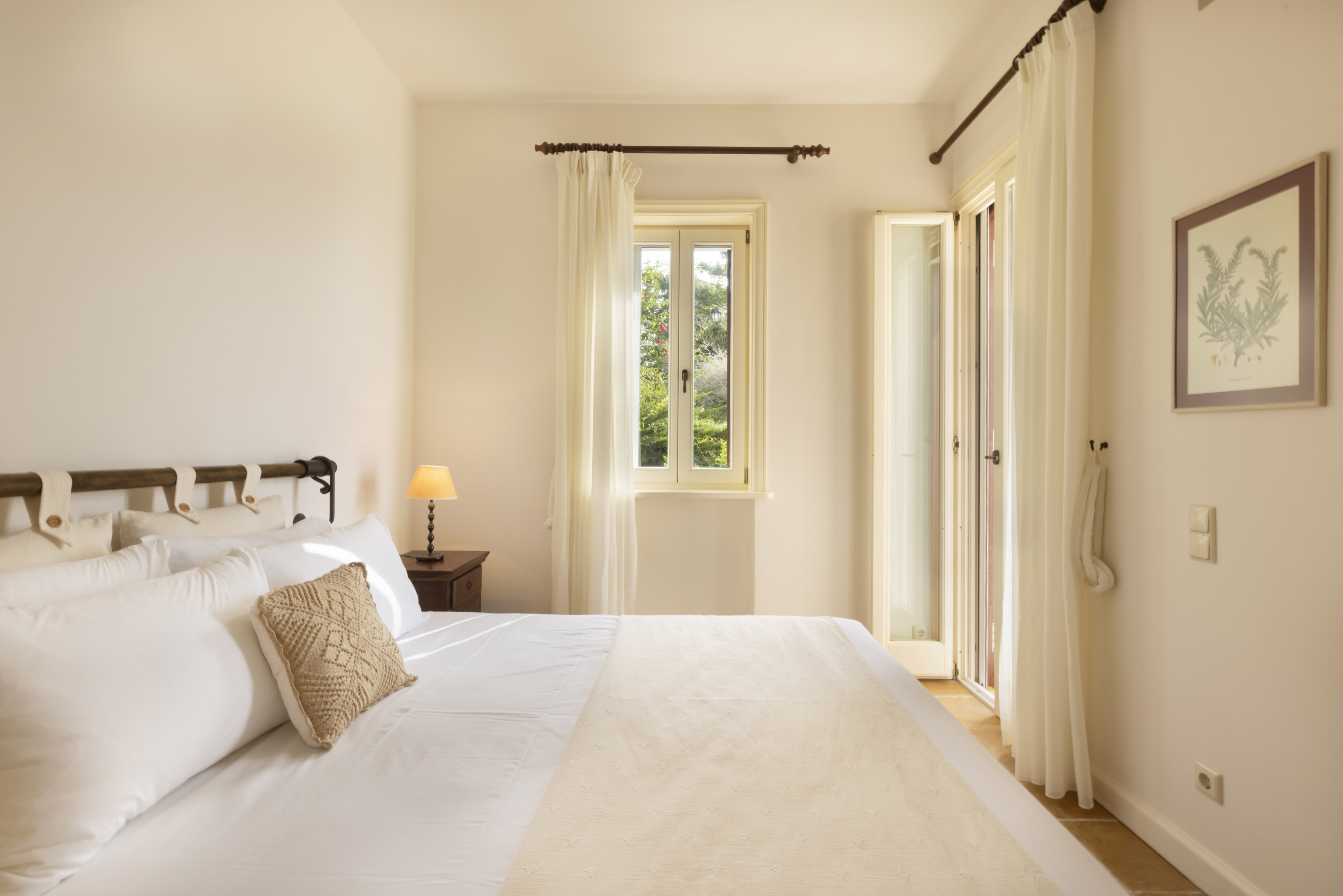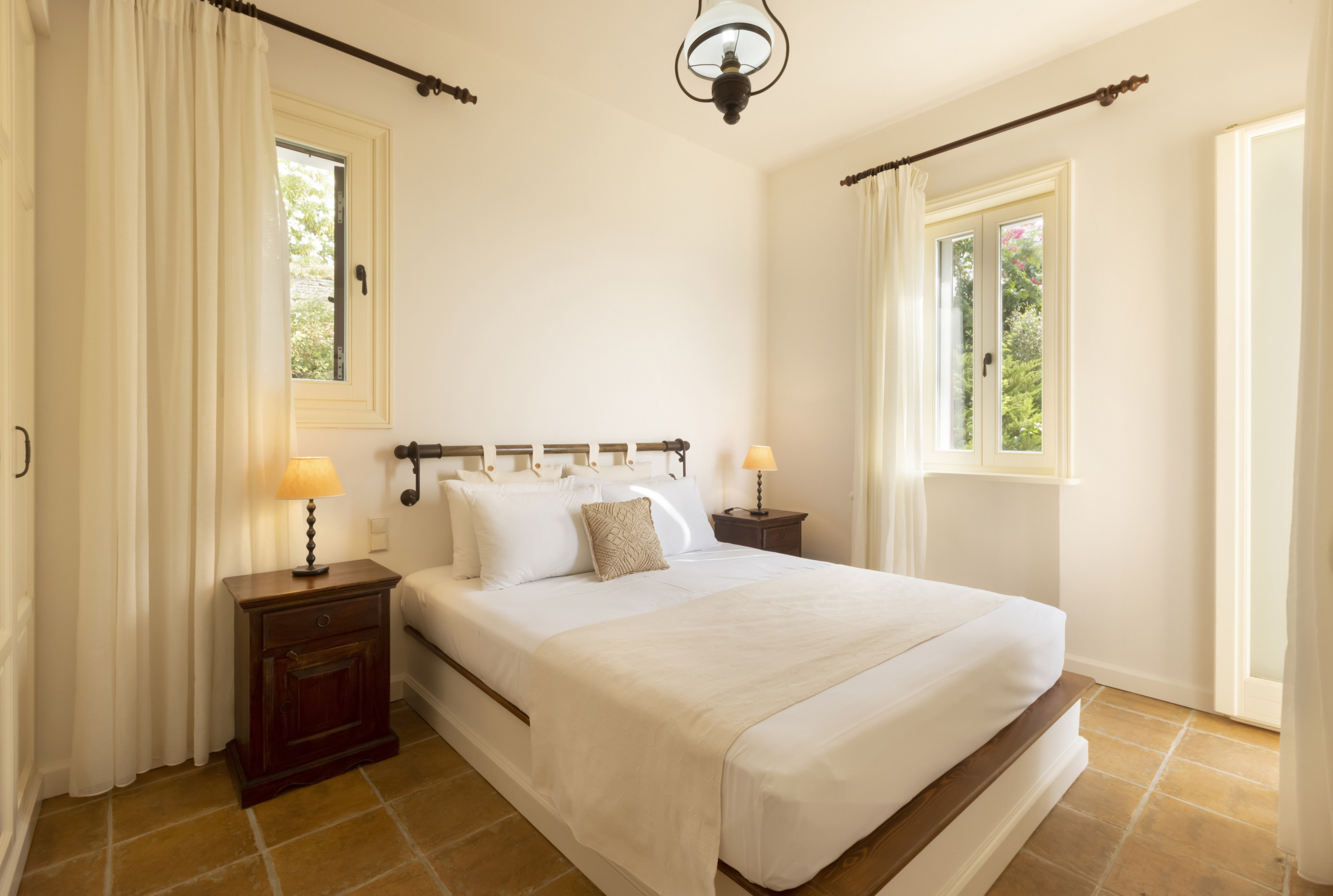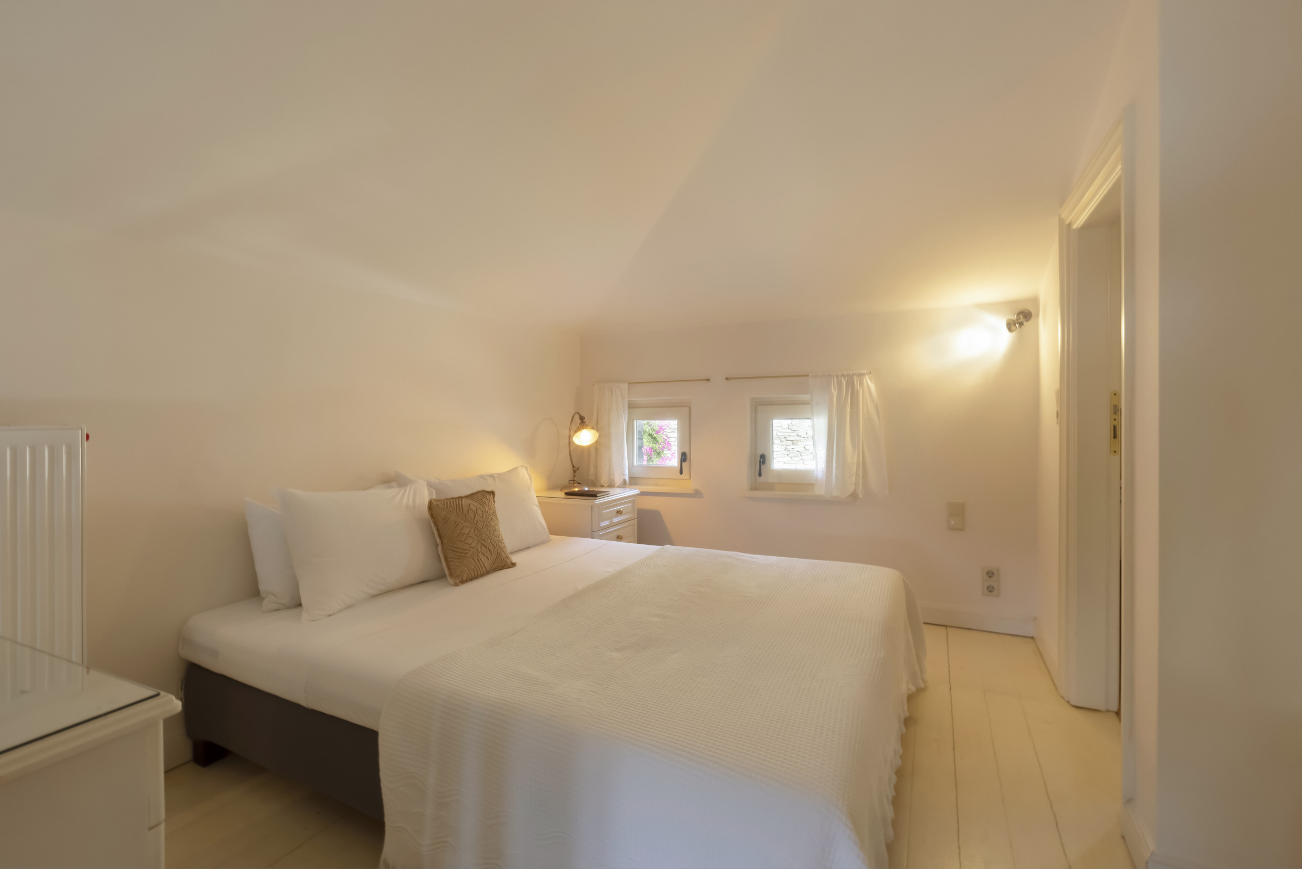 There are four double bedrooms, three of which are en suite. There is a fourth bathroom and a separate WC. The entire residence has whitewashed walls and a tranquil, relaxed, chic vibe.
