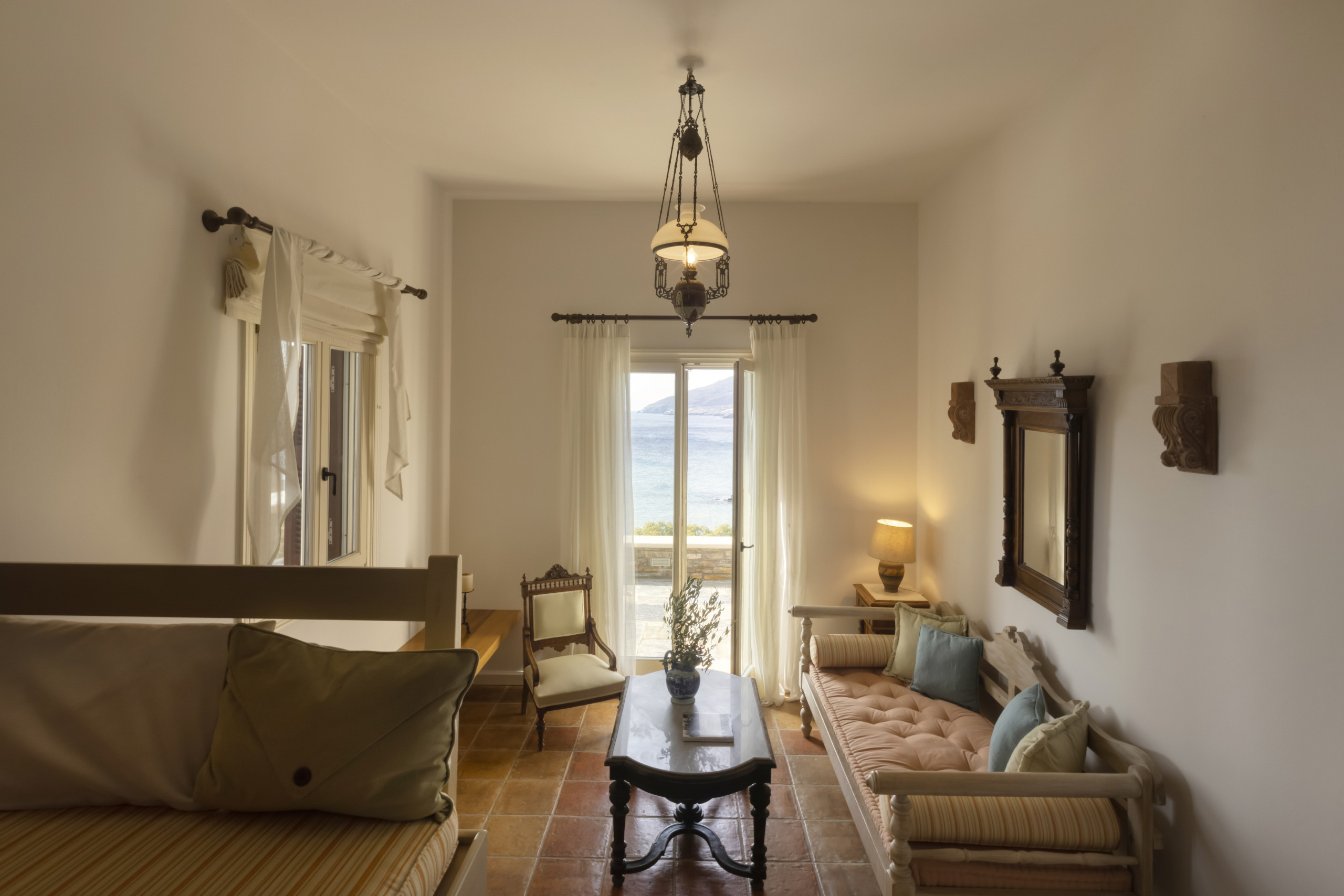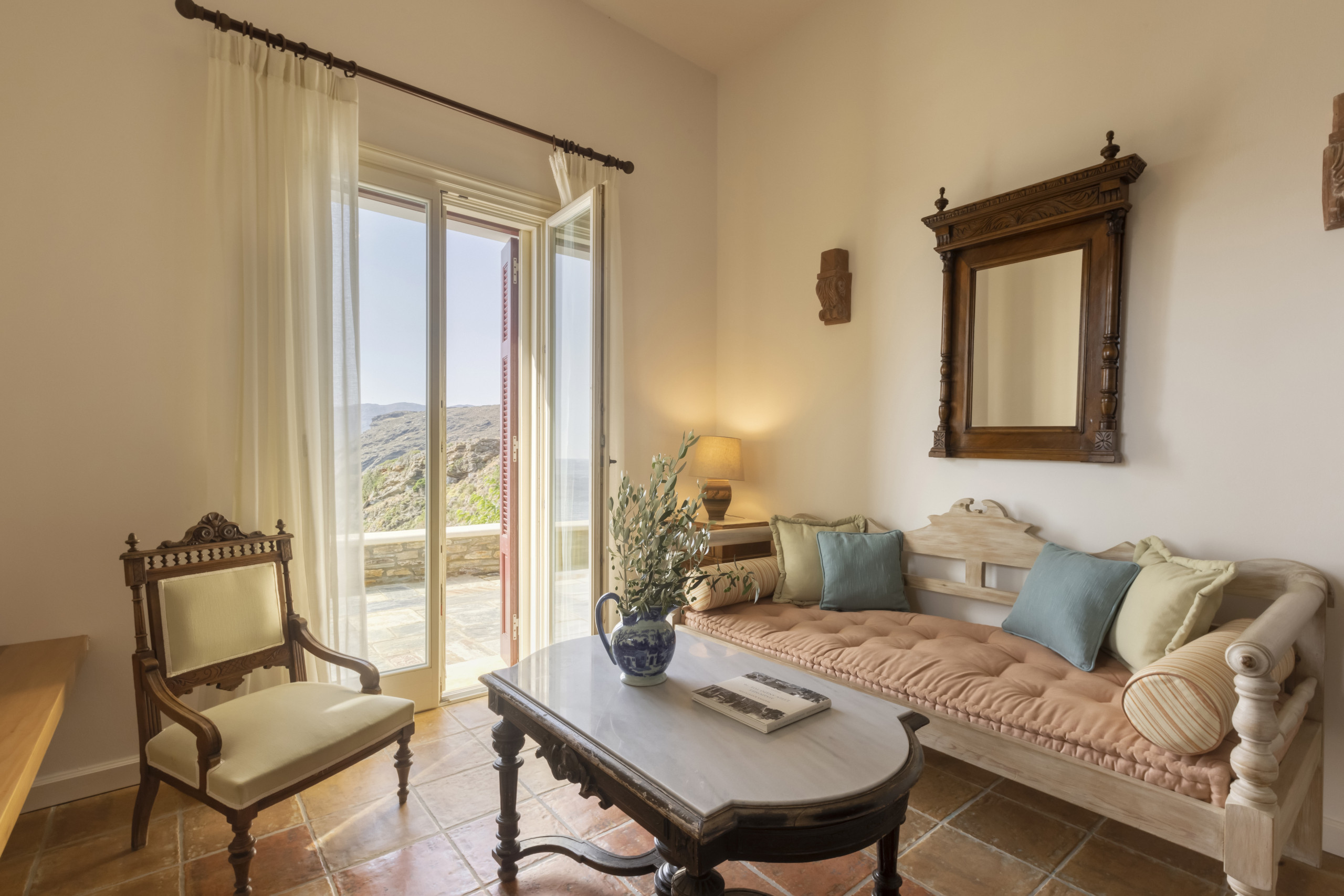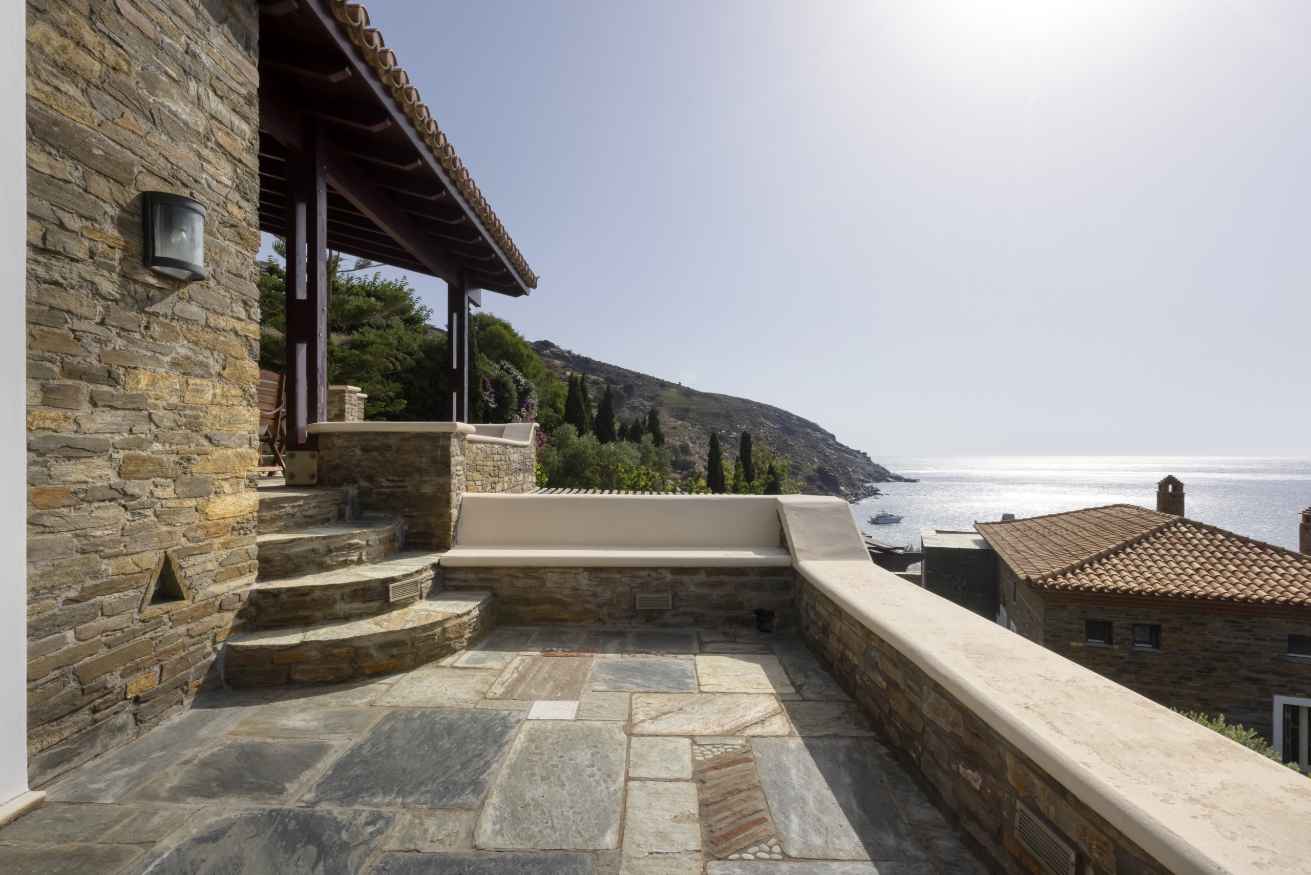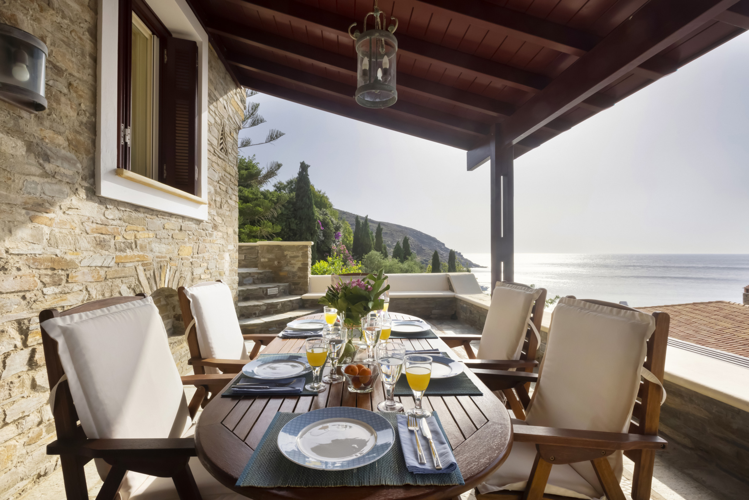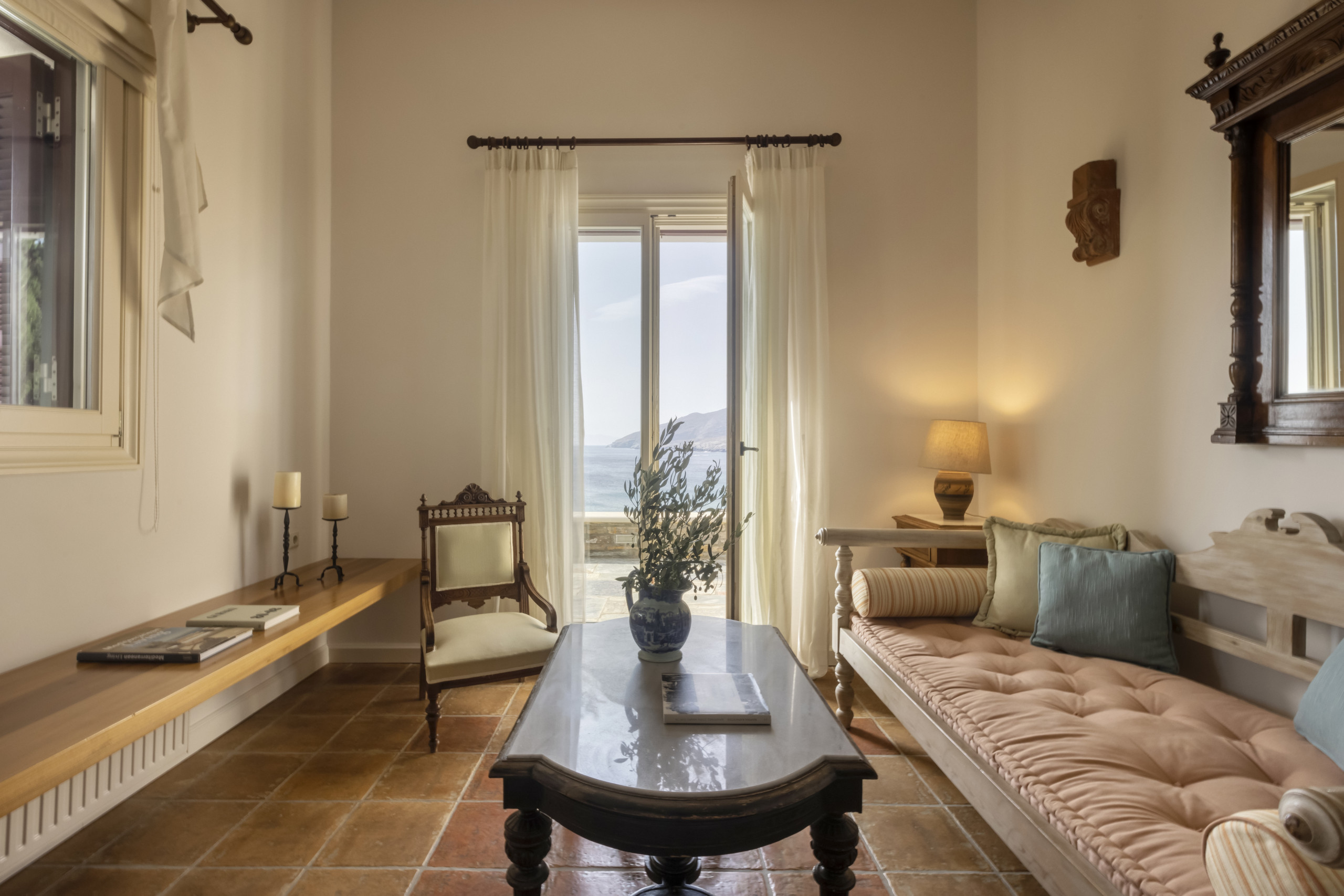 Walk outdoors and take in the gorgeous sea views, the sea breeze and Andros’ beautiful verdant landscape. You will find plenty of areas to sit, wind and dine with your friends and loved ones.