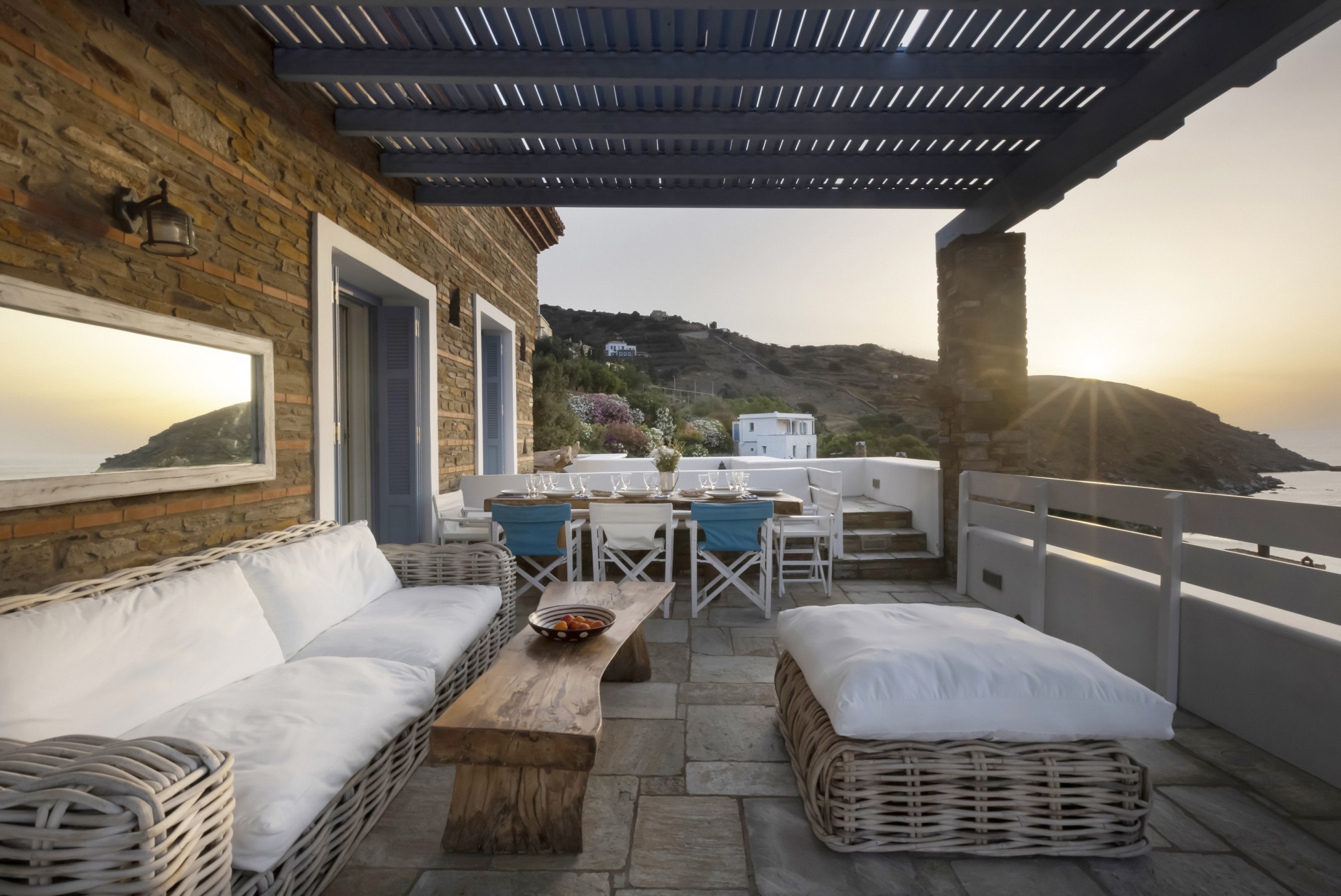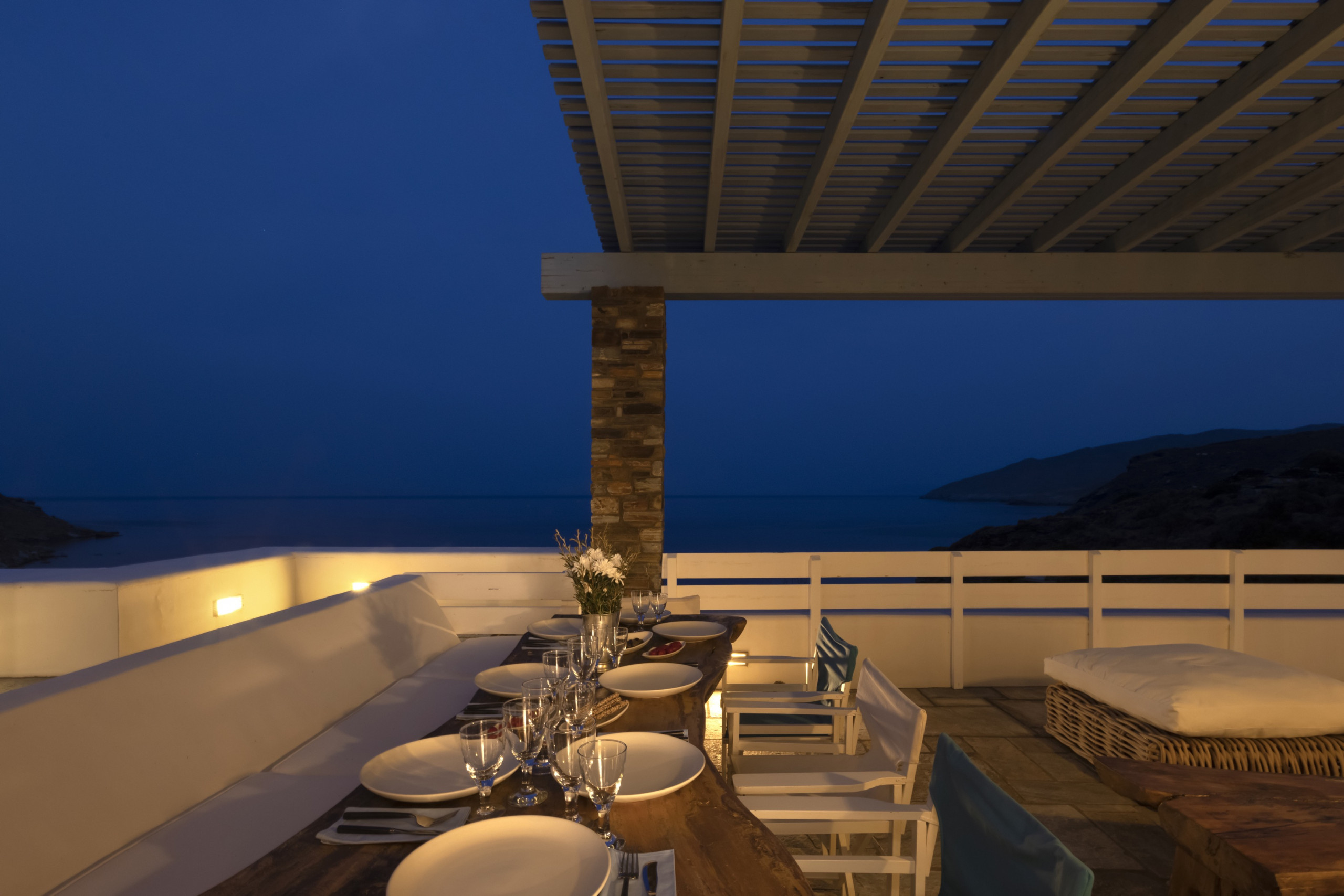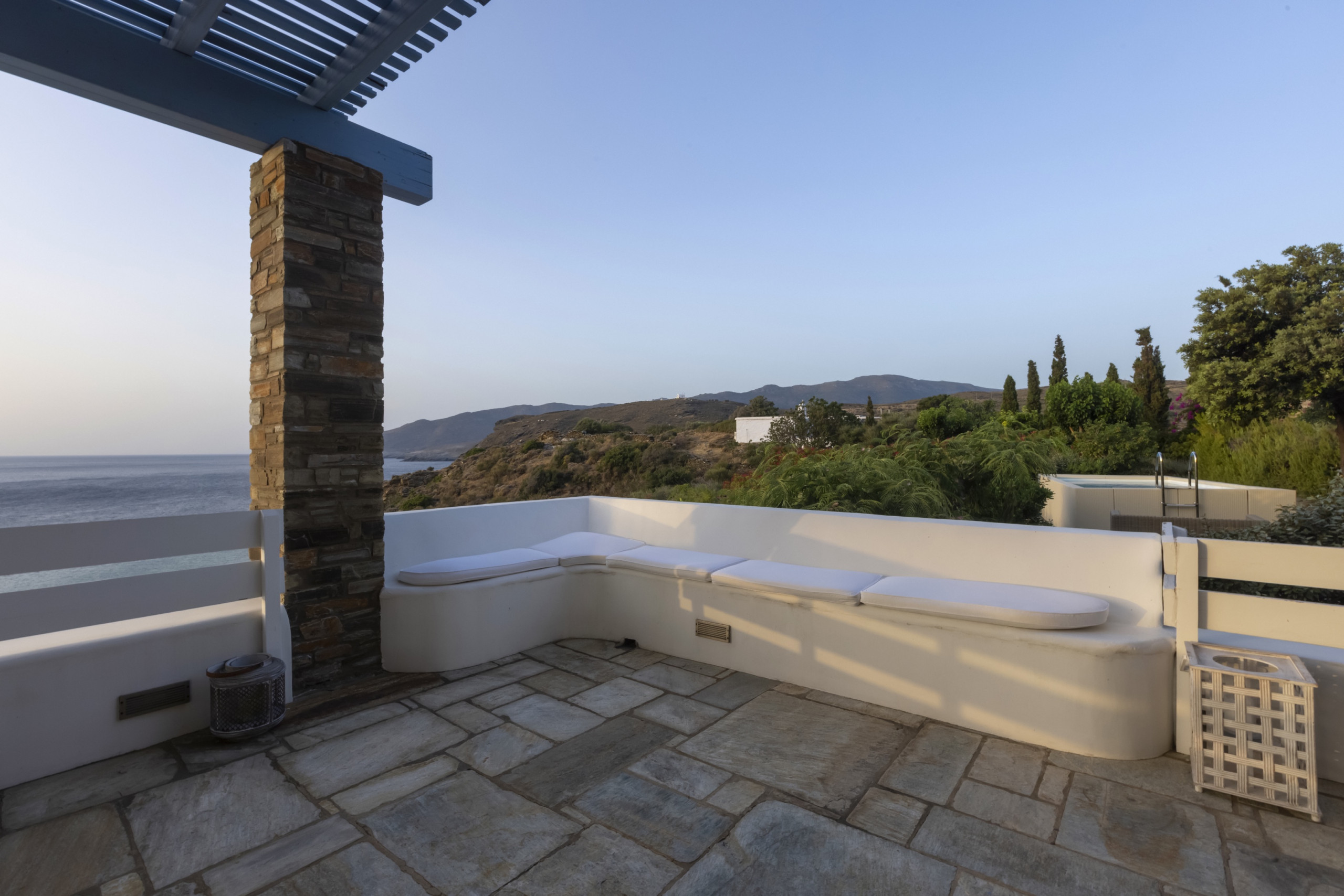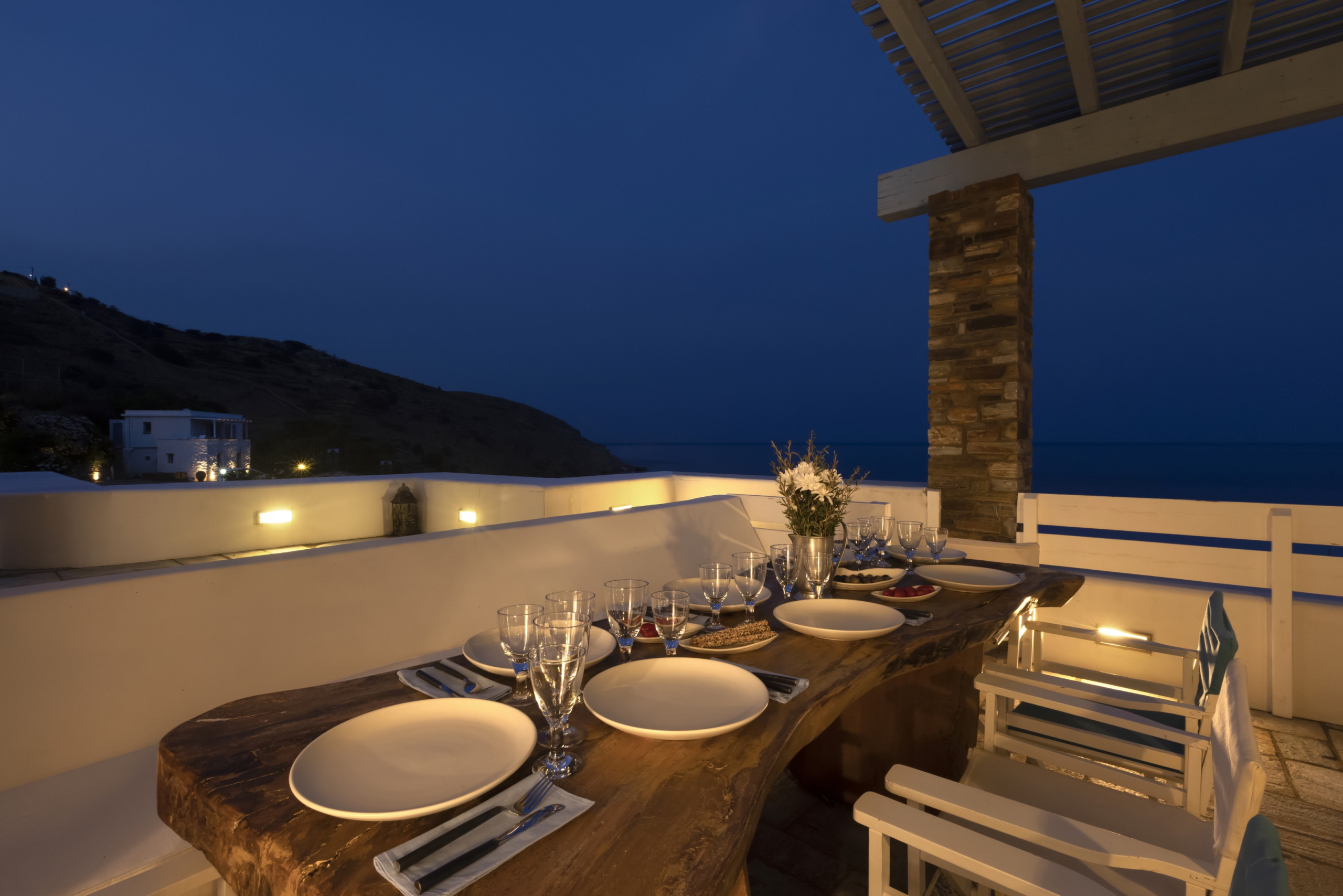 Walk outdoors and take in the gorgeous sea views, the sea breeze and Andros’ beautiful verdant landscape. You will find plenty of areas to sit, wind and dine with your friends and loved ones.