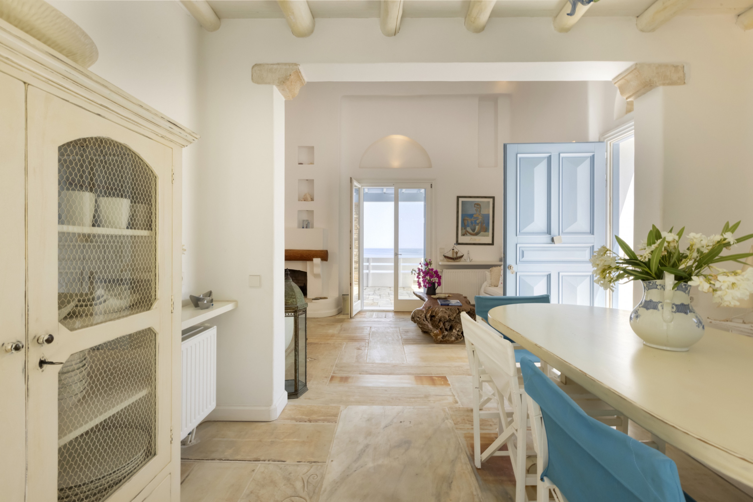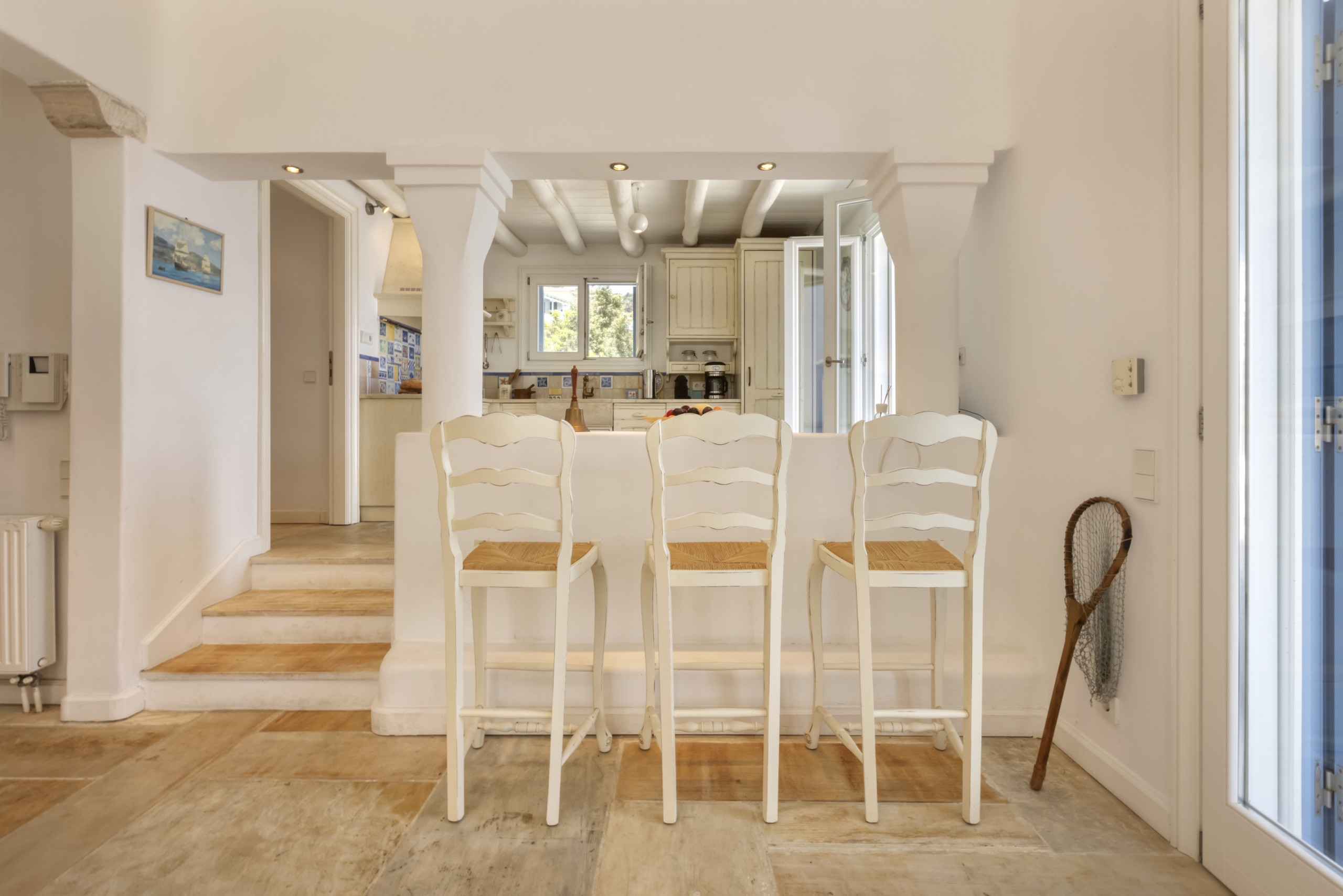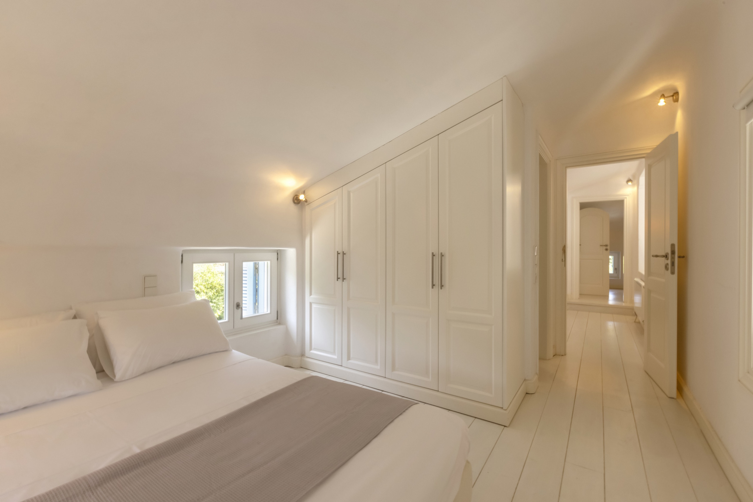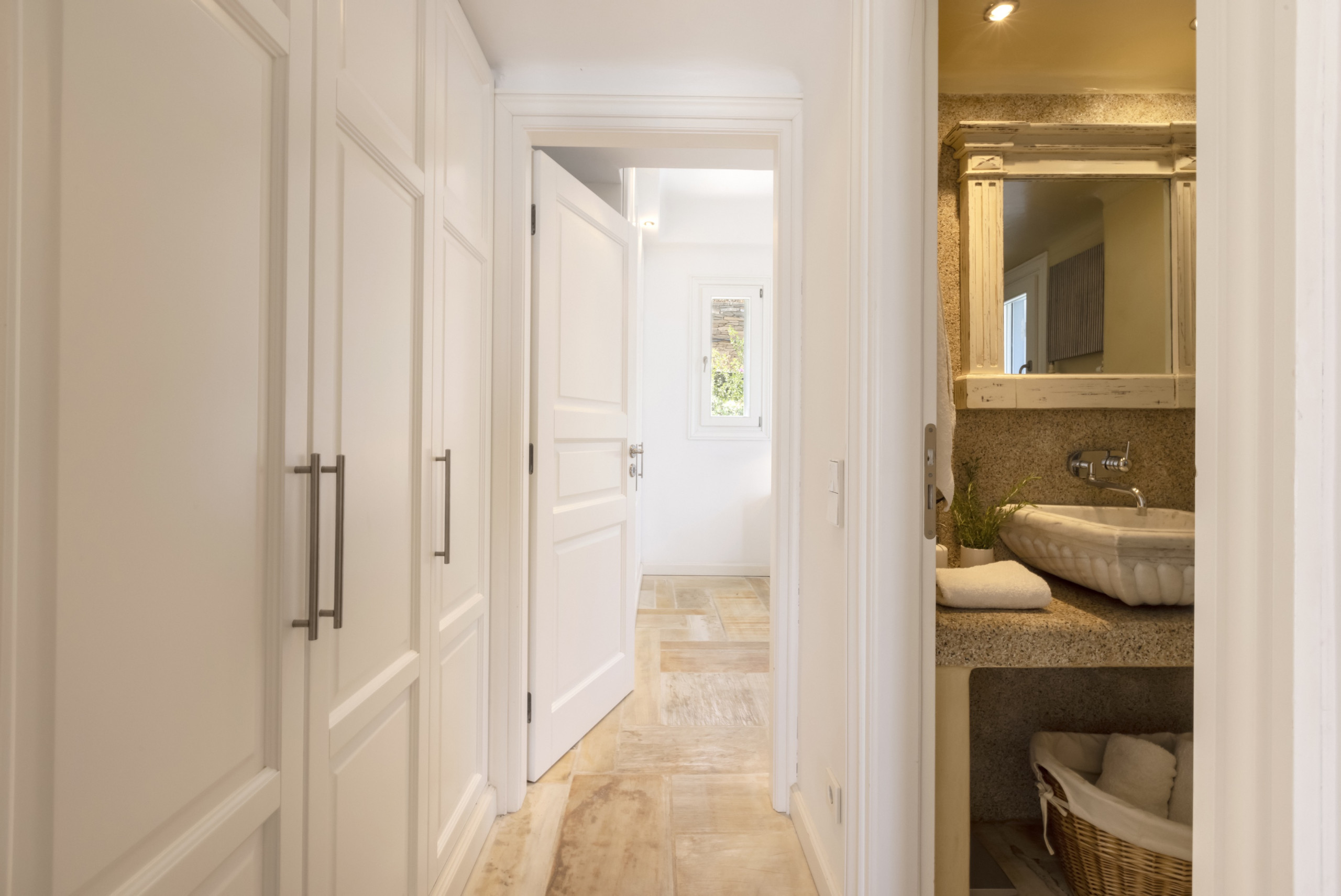 There are four double bedrooms, three of which are en suite. There is a fourth bathroom and a separate WC. The entire residence has whitewashed walls and a tranquil, relaxed, chic vibe.