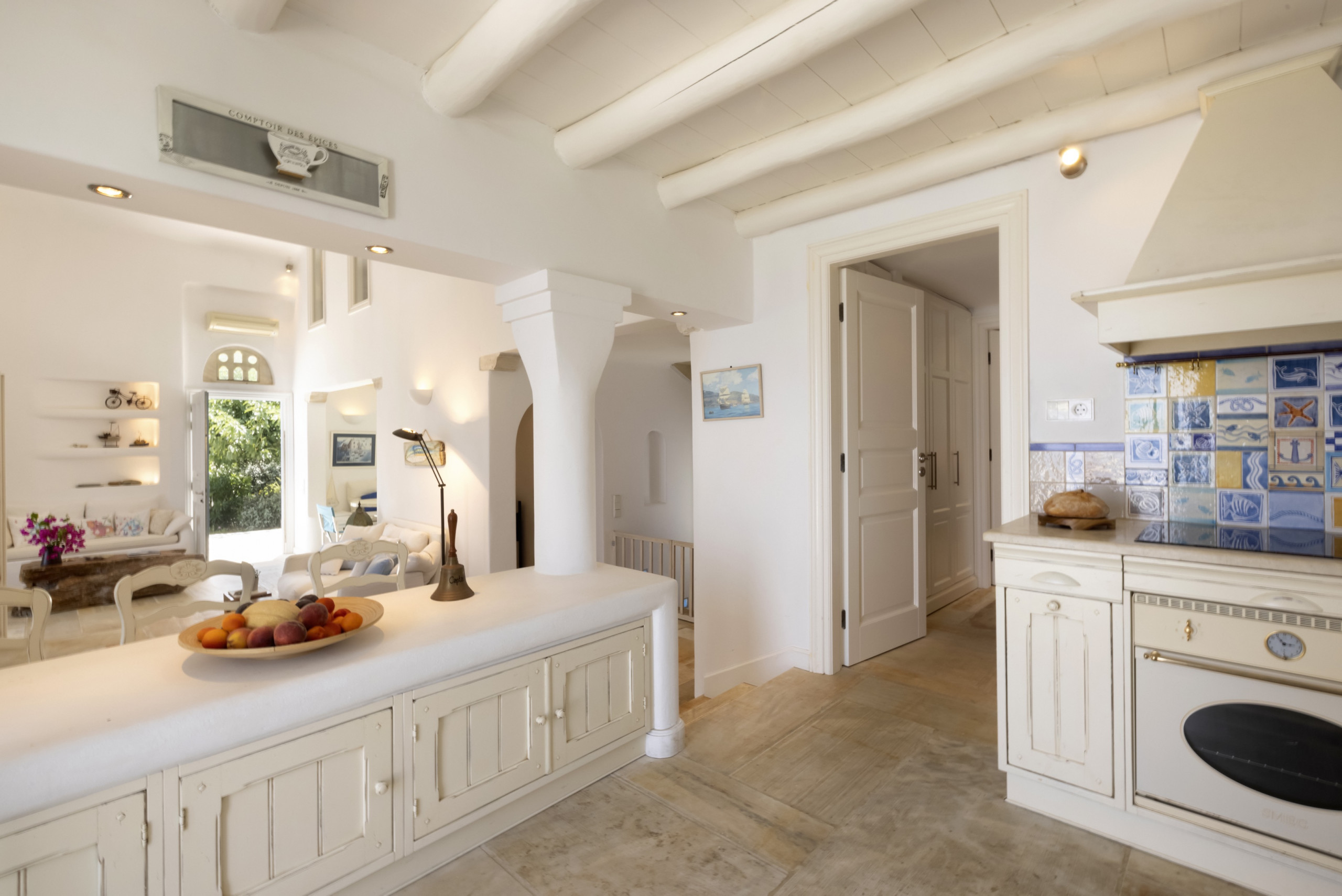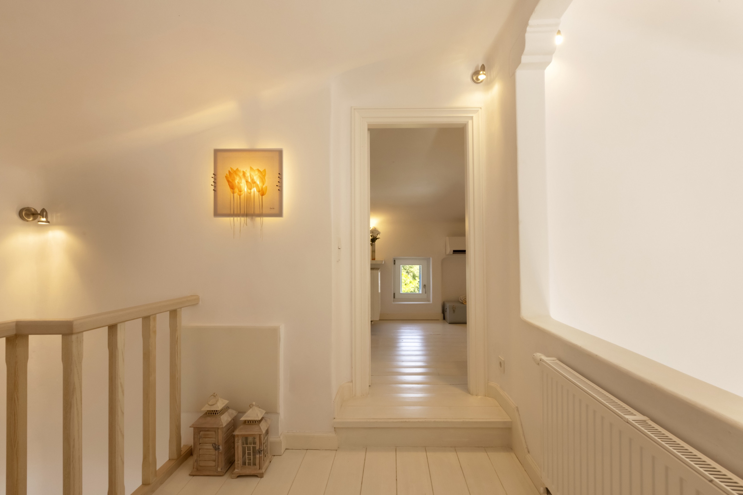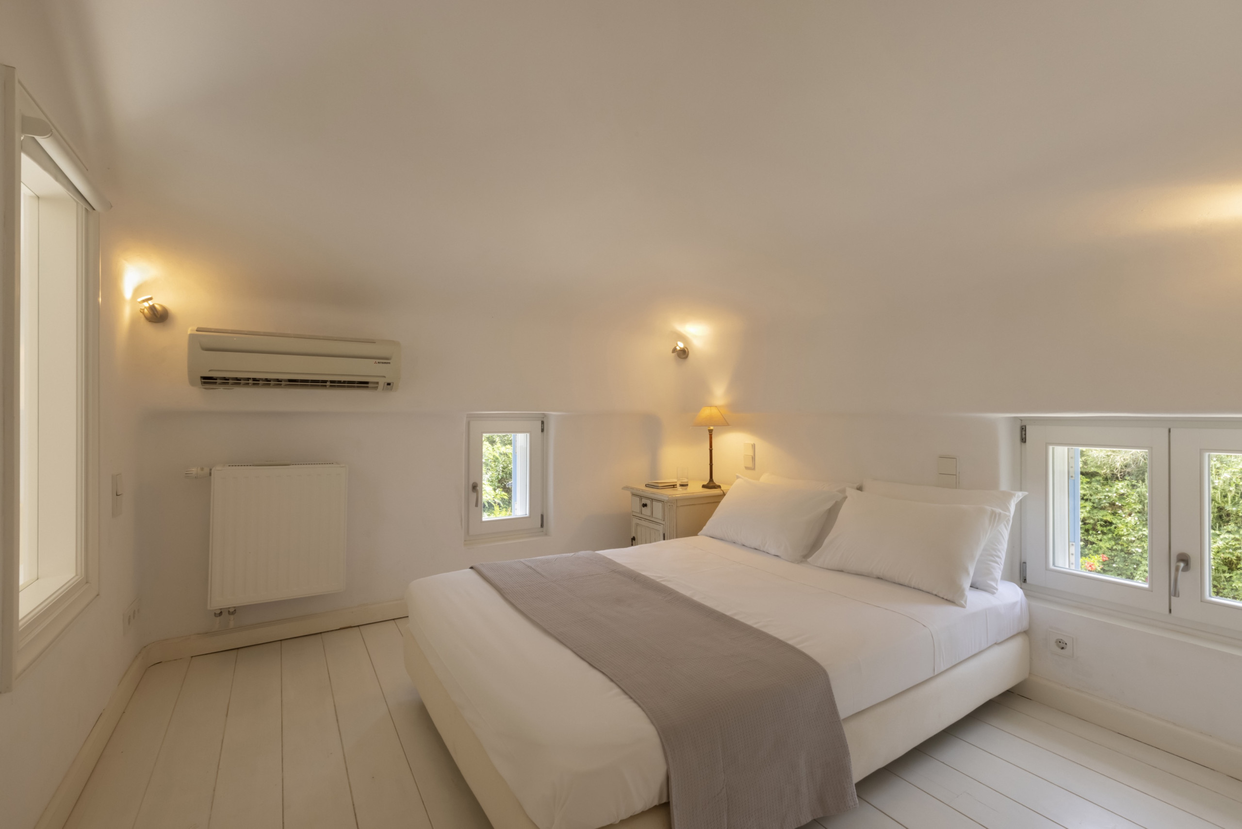 There are four double bedrooms, three of which are en suite. There is a fourth bathroom and a separate WC. The entire residence has whitewashed walls and a tranquil, relaxed, chic vibe.