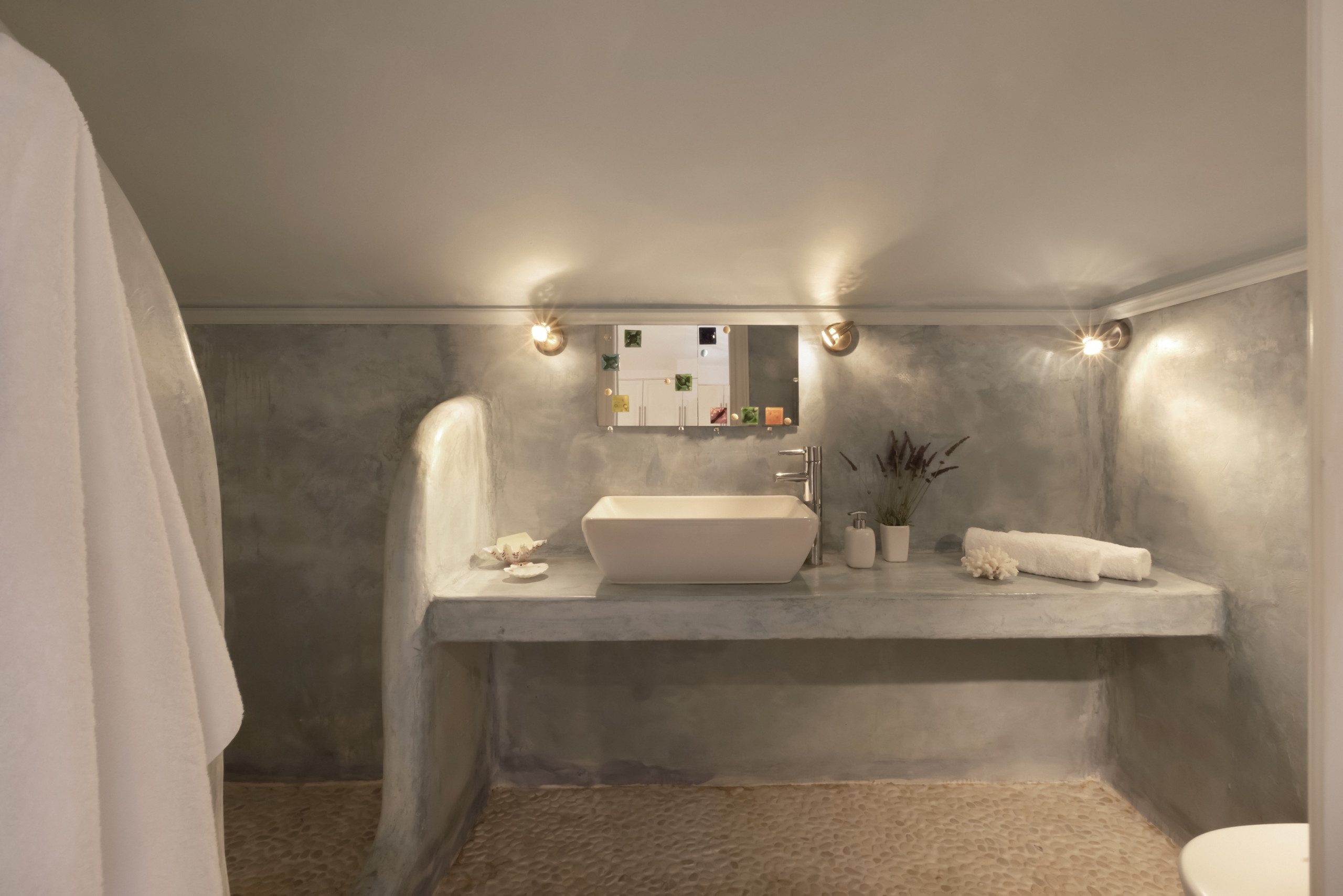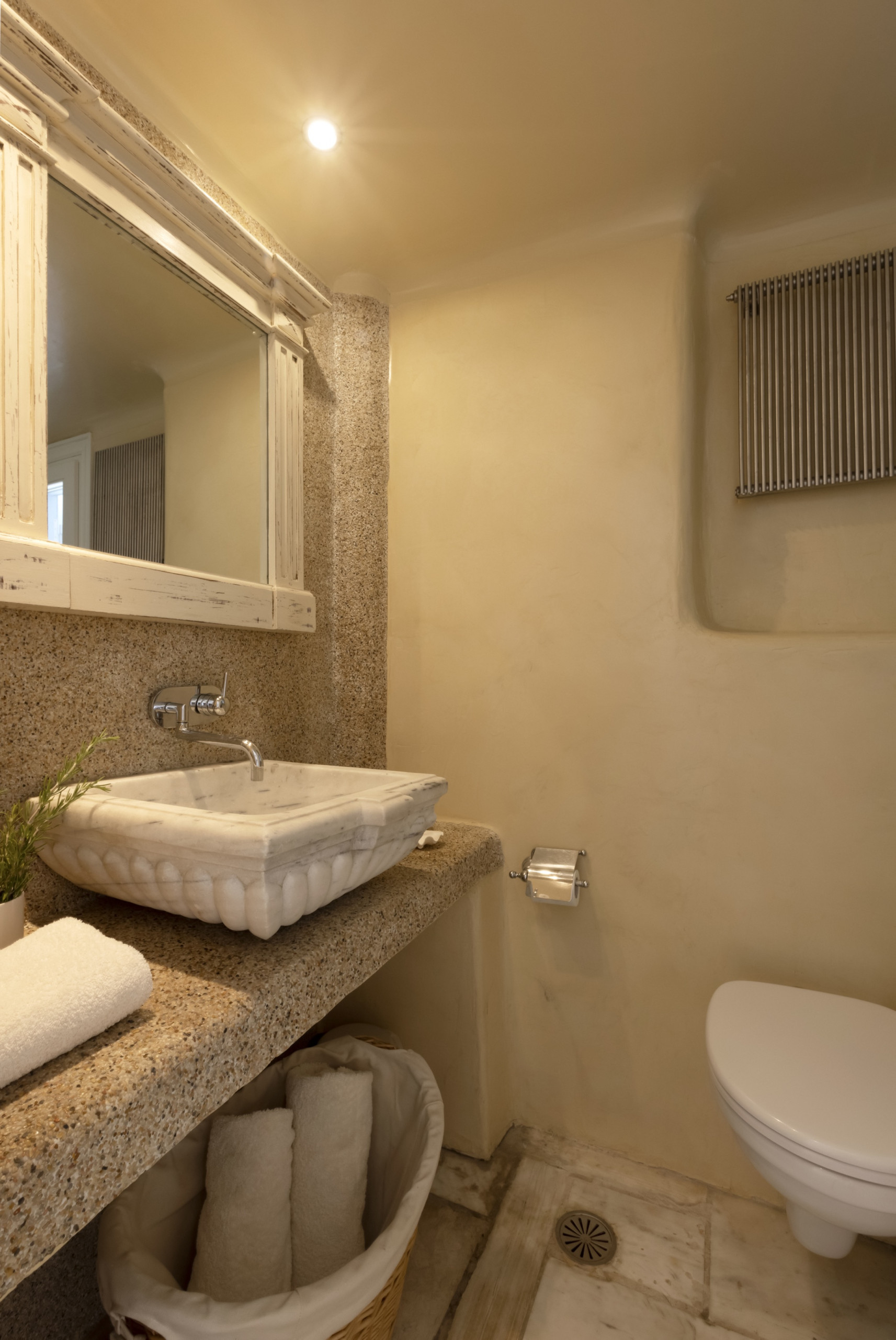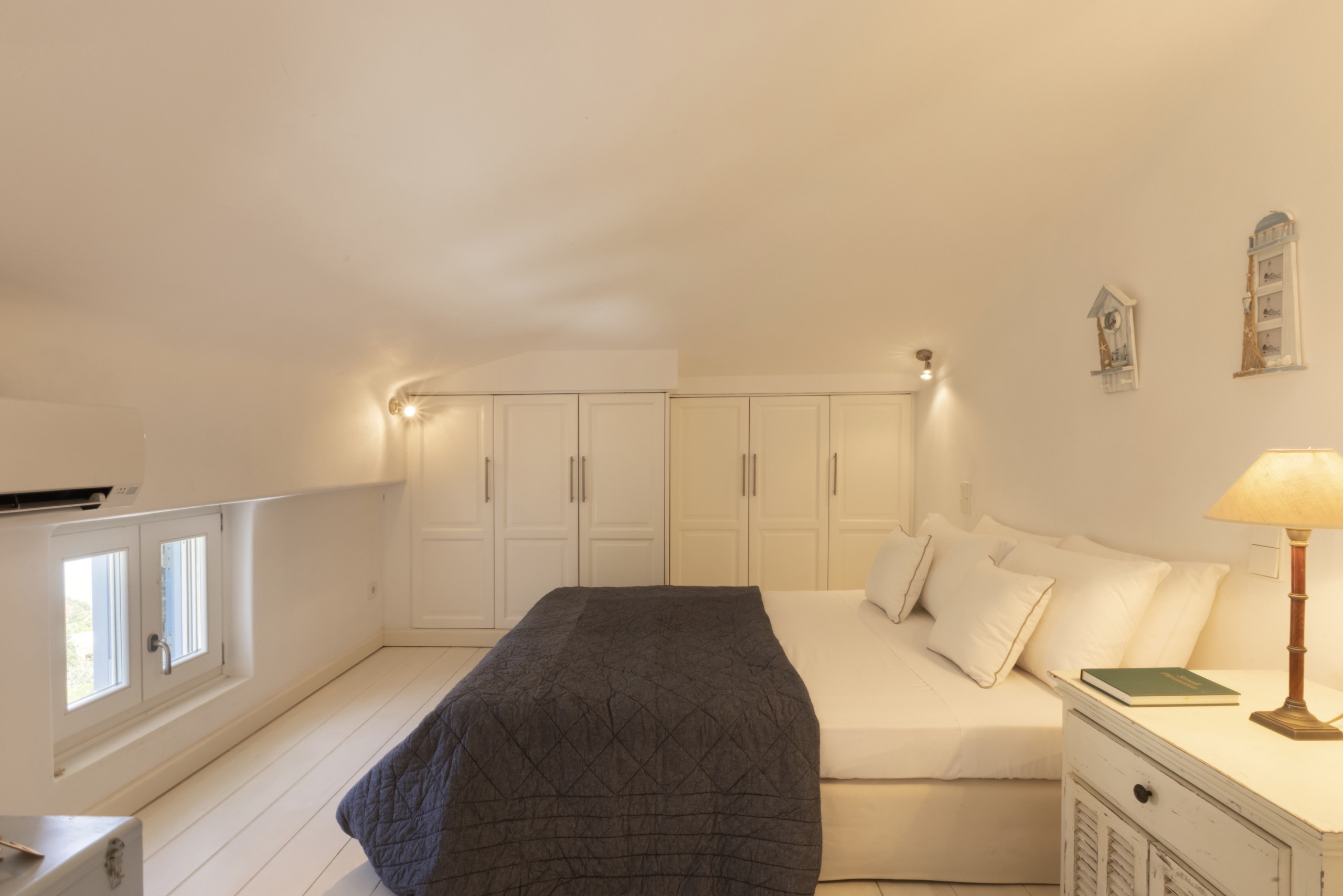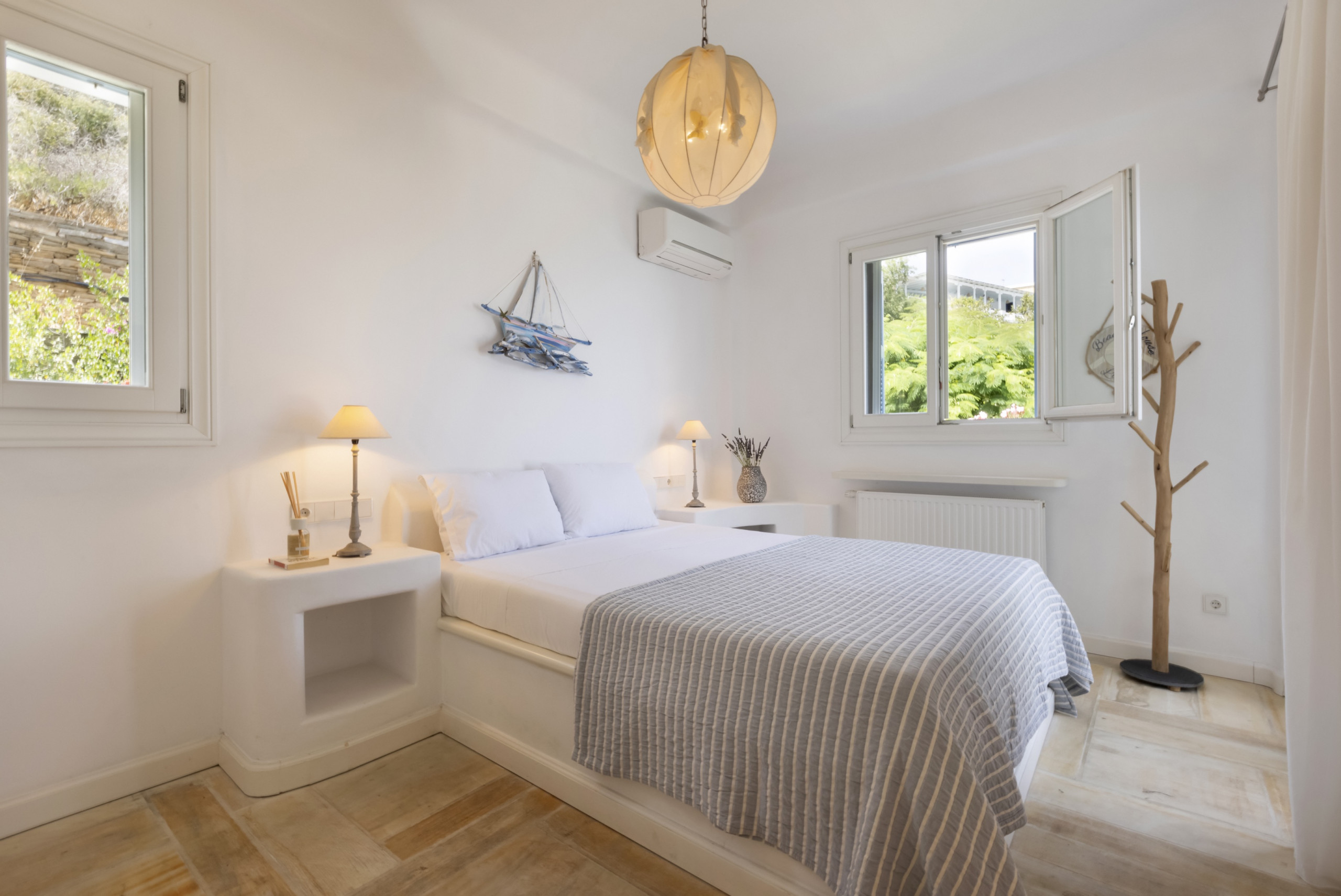 There are four double bedrooms, three of which are en suite. There is a fourth bathroom and a separate WC. The entire residence has whitewashed walls and a tranquil, relaxed, chic vibe.