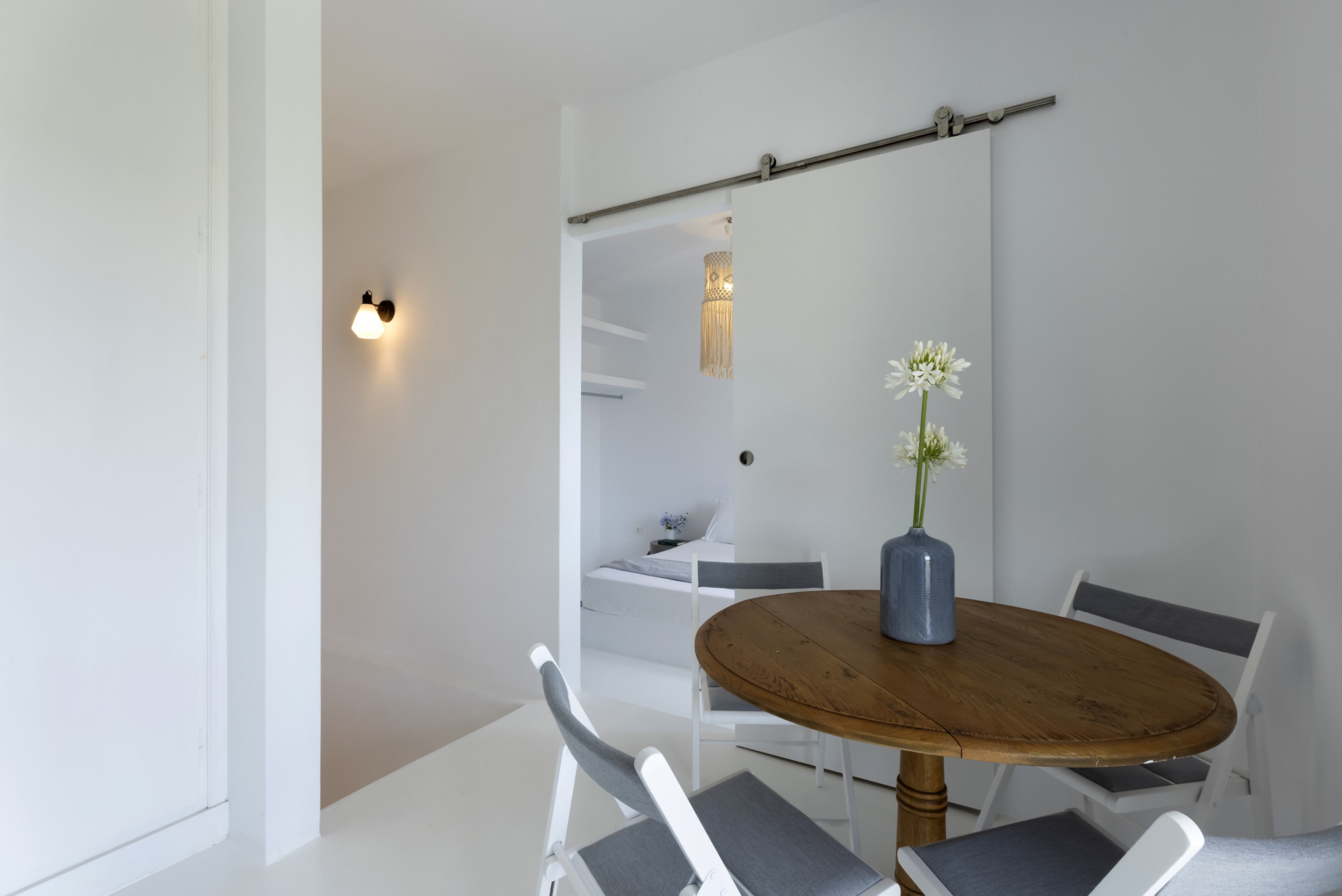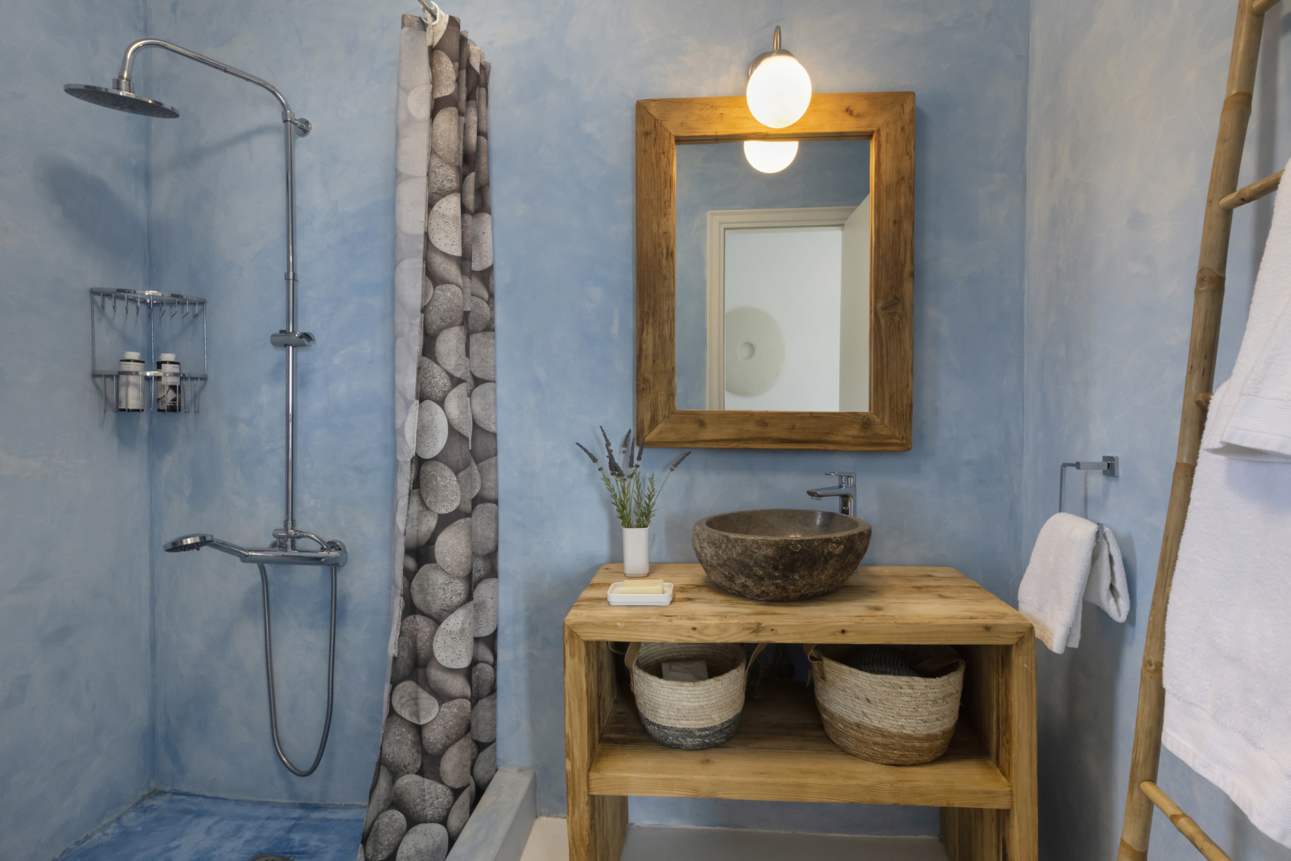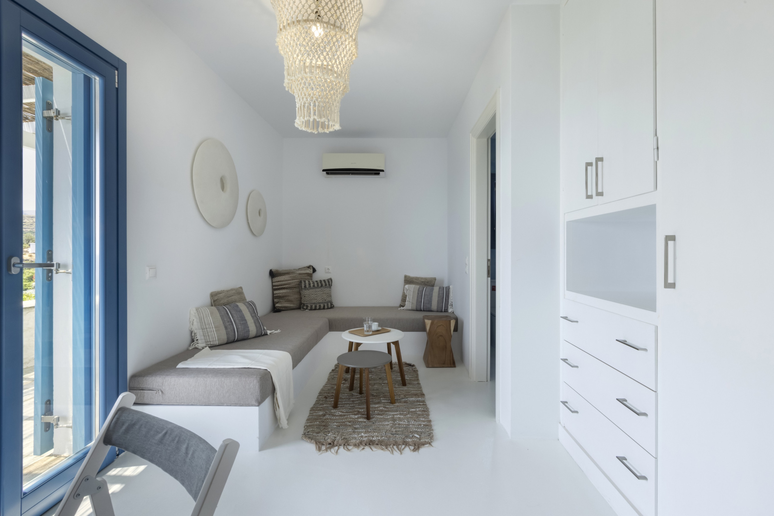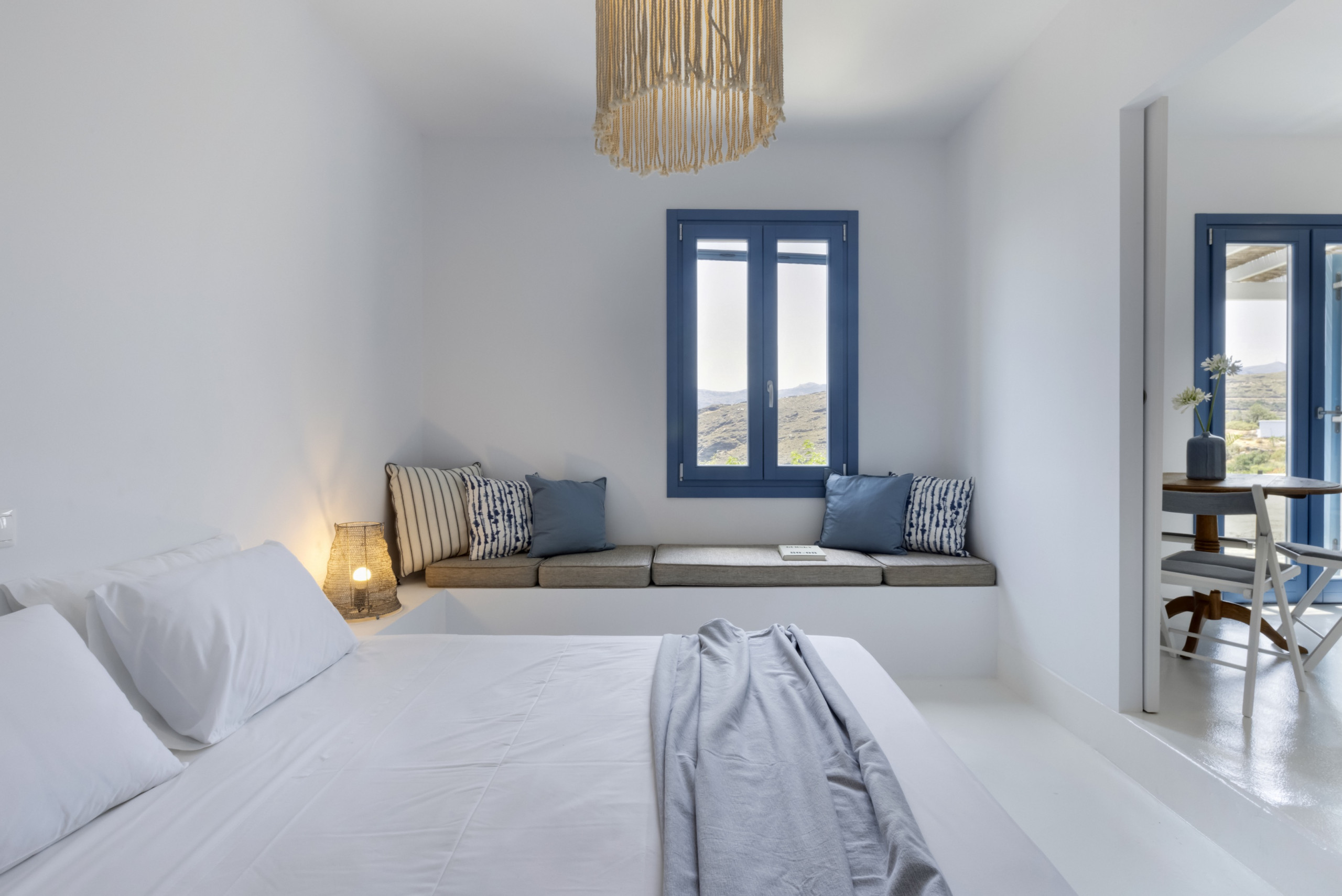 The residence, set in one level with a few steps leading to the bedrooms, has been built in keeping with the local architecture, using local stone and featuring wooden elements and whitewashes walls. From its garden, verandas and outdoor spaces you will savor the Aegean sea, take in the island’s atmosphere and relax in elegance and comfort.