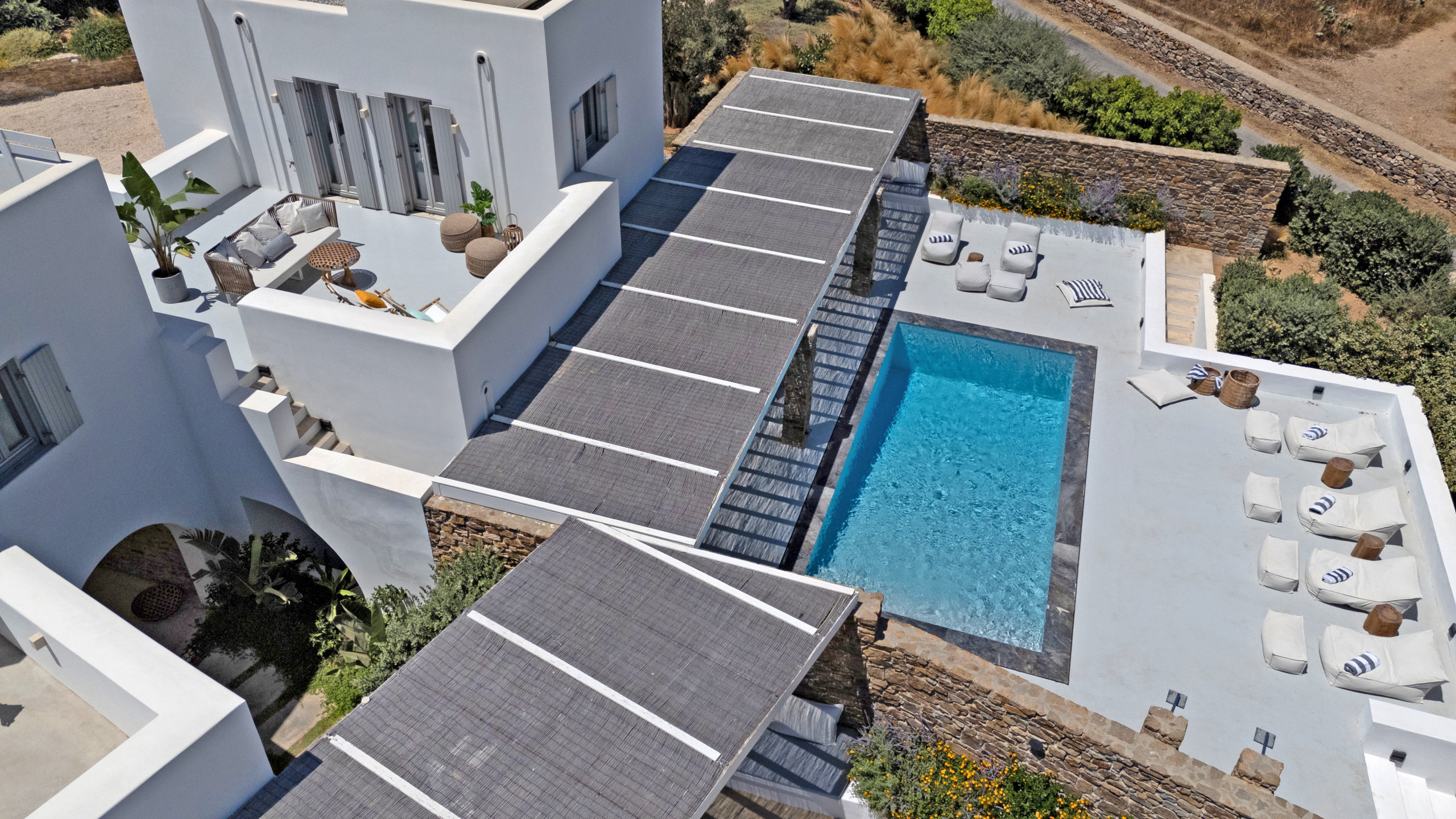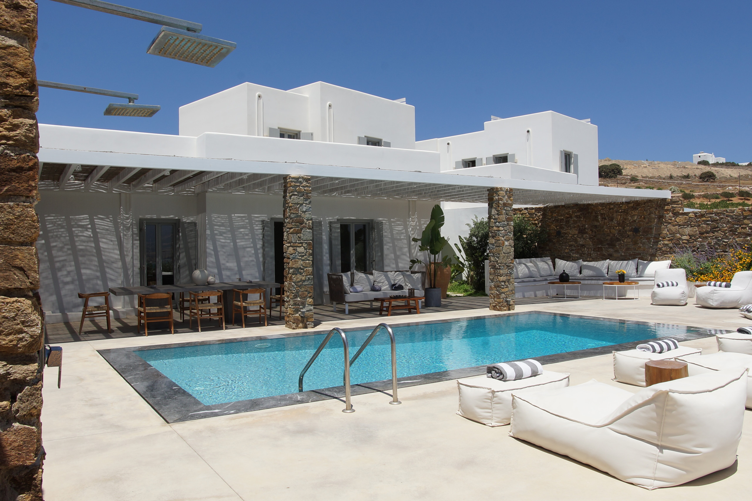 The luxury design Dreamy Villa is stunning 5 bedroom apartment Villa, with an amazing pool. We are talking high-end smart home with fabulous design furniture that shouts mediterranean summer, spacious spectacular bedrooms with beautiful ensuite BTHS, wifi networks as fast as it gets, and other amenities that promise to make this a dream vacation in one of the most hip and chic Cycladic islands of Greece. Everyday refreshing is provided!