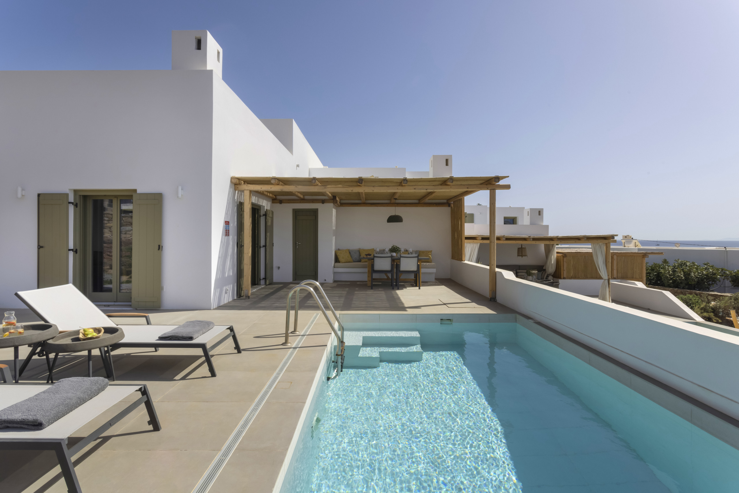 Having adopted the traditional Cycladic architecture but with a distinct stylistic pro-file each one, the 3 houses of the complex feature fully equipped comfortable spac-es, welcoming outdoor facilities with a private swimming pool and breathtaking views of the Aegean Sea.