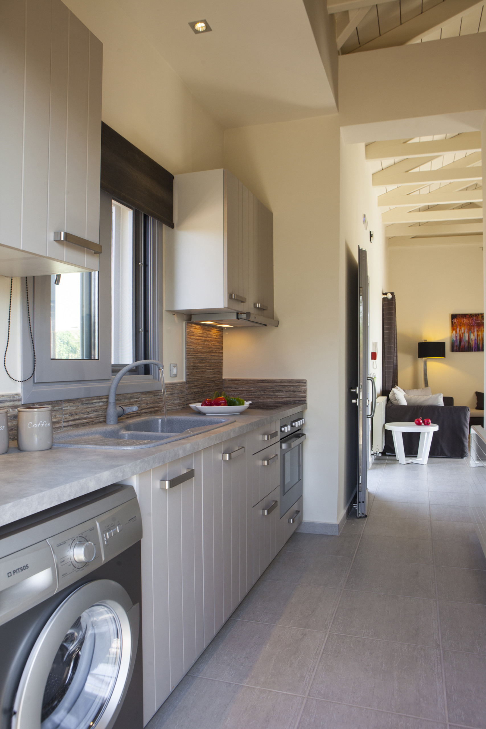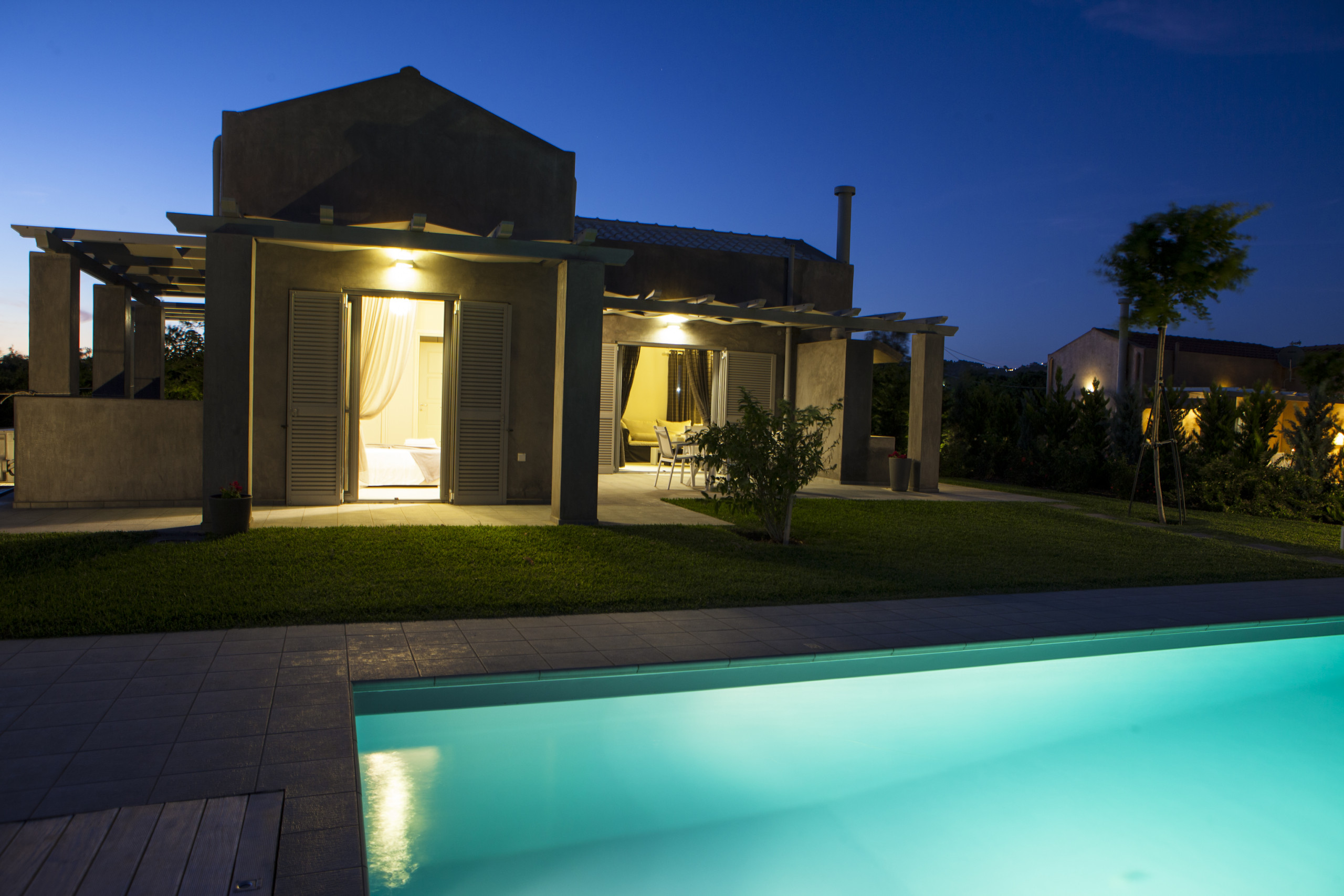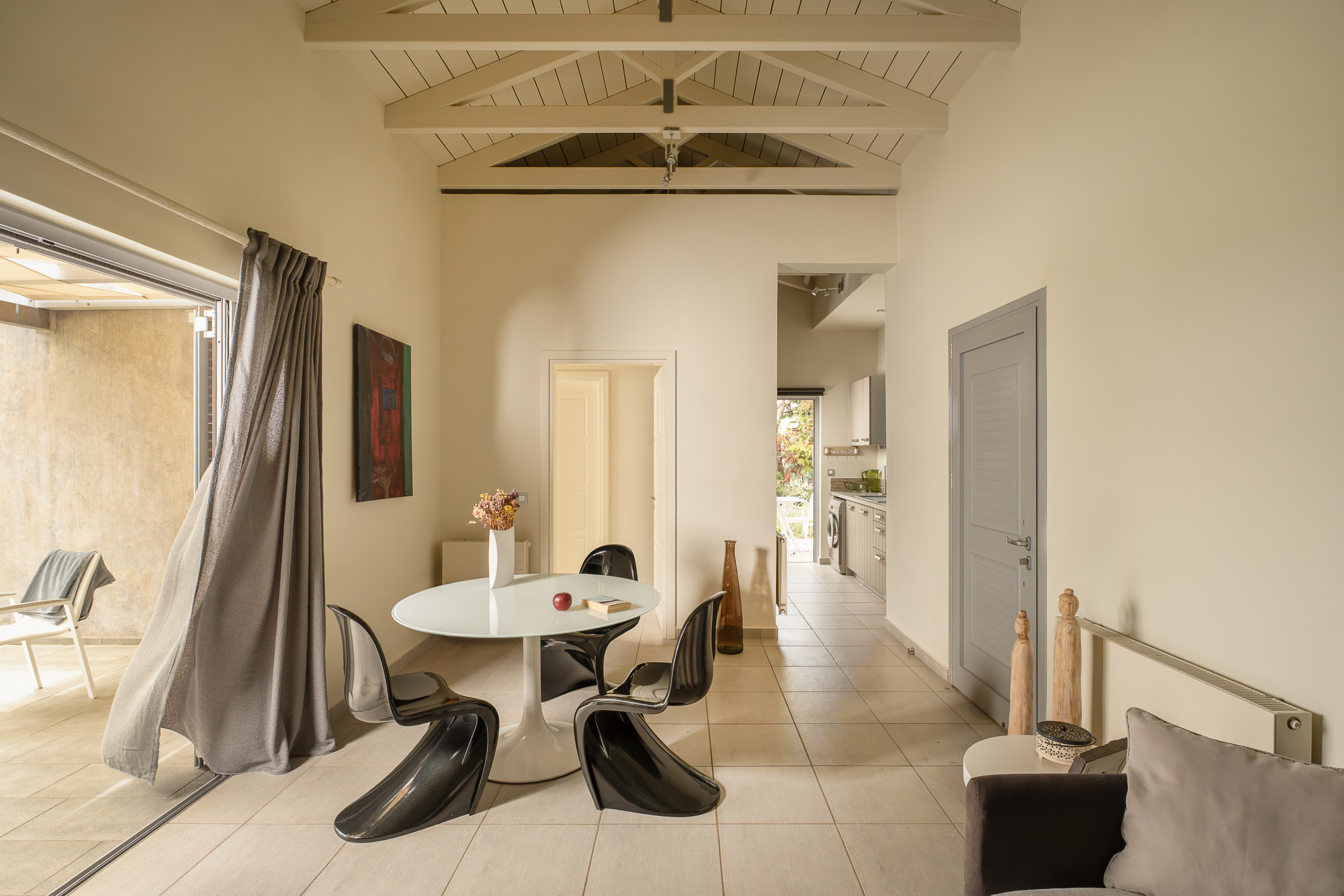 Villa Lefteris is set in a great location, within walking distance of local tavernas, shops and the two sandy beaches. This newly built, large modern one bedroom property has been styled and finished to a very high standard and sits within beautifully landscaped gardens. Villa Lefteris offers a spacious open plan and shabby chic design, offering beautiful pastel colours and wooden vaulted ceilings throughout. From the living area, patio doors lead out to a large covered terrace which overlooks the pool, the sea and surrounding countryside. The village of Svoronata sits on the coast surrounded by lush and unspoilt countryside, fields and orchards are abundant. In the village of Svoronata you will be charmed with the country paths offering a few local tavernas. There are also some Mini-markets, all situated within walking distance. The lovely beaches of Ammos, Ai helis and Avithos are all close by. Argostoli, the capital of the island, Lassi and the famous Makris Gialos beach, are all within a fifteen minute drive away from Villa Lefteris.