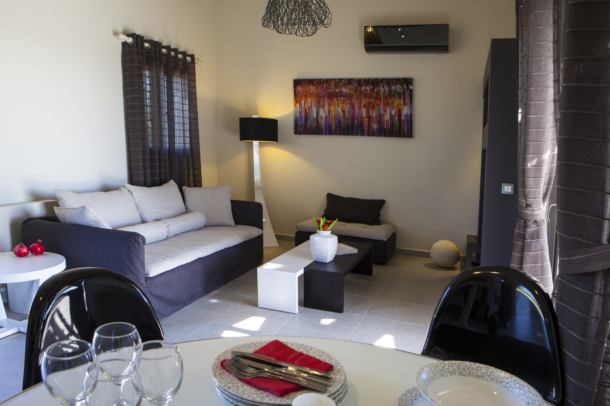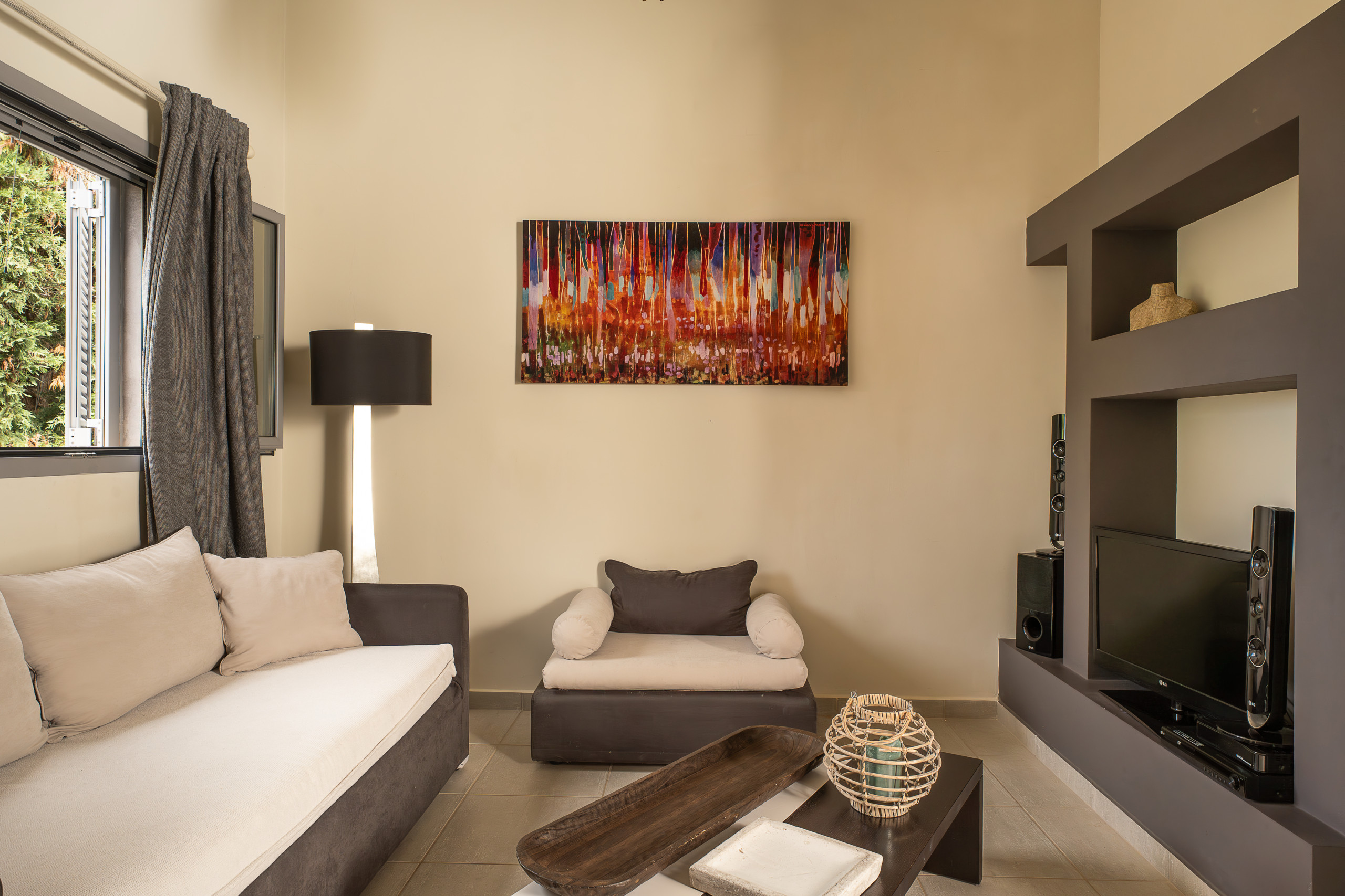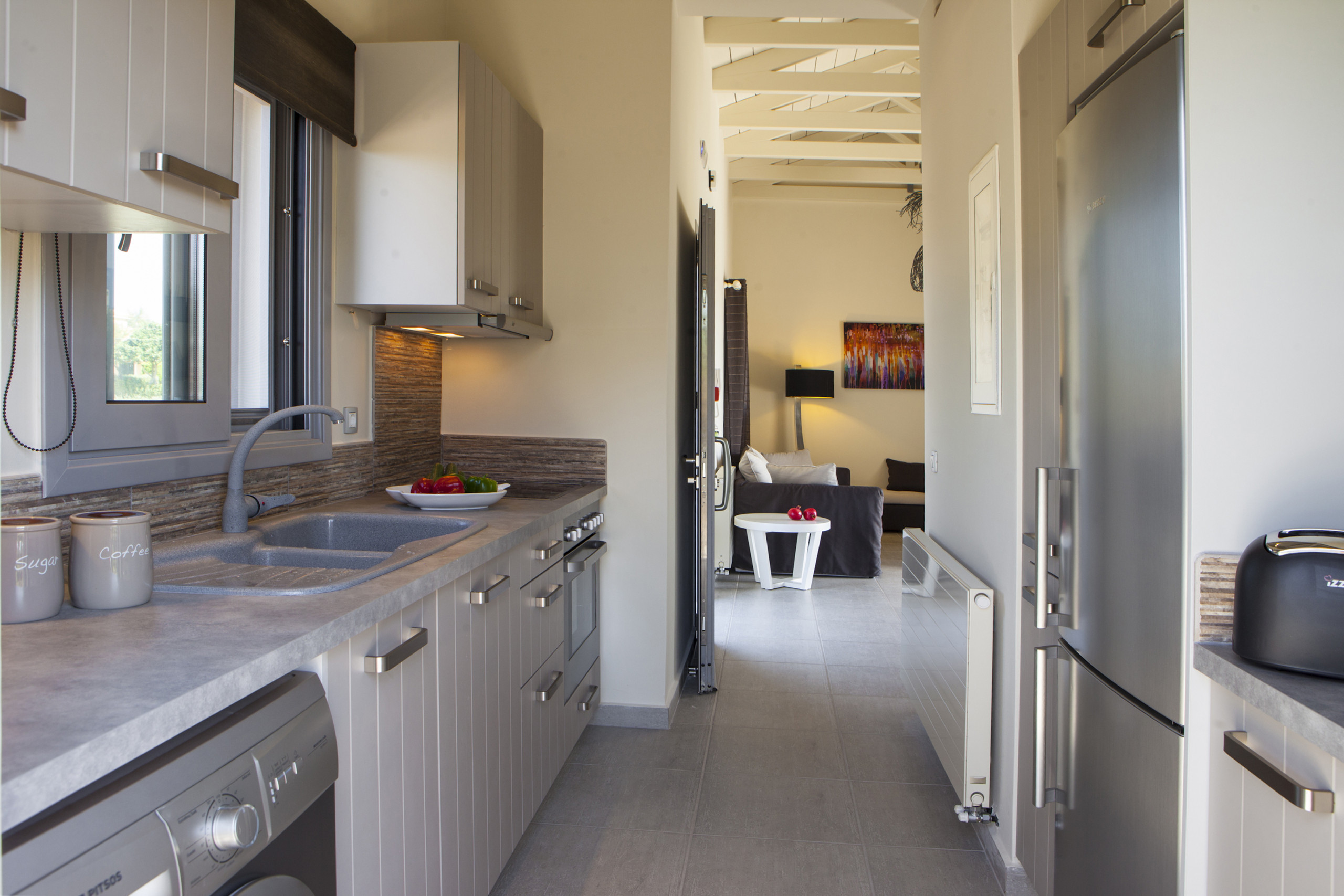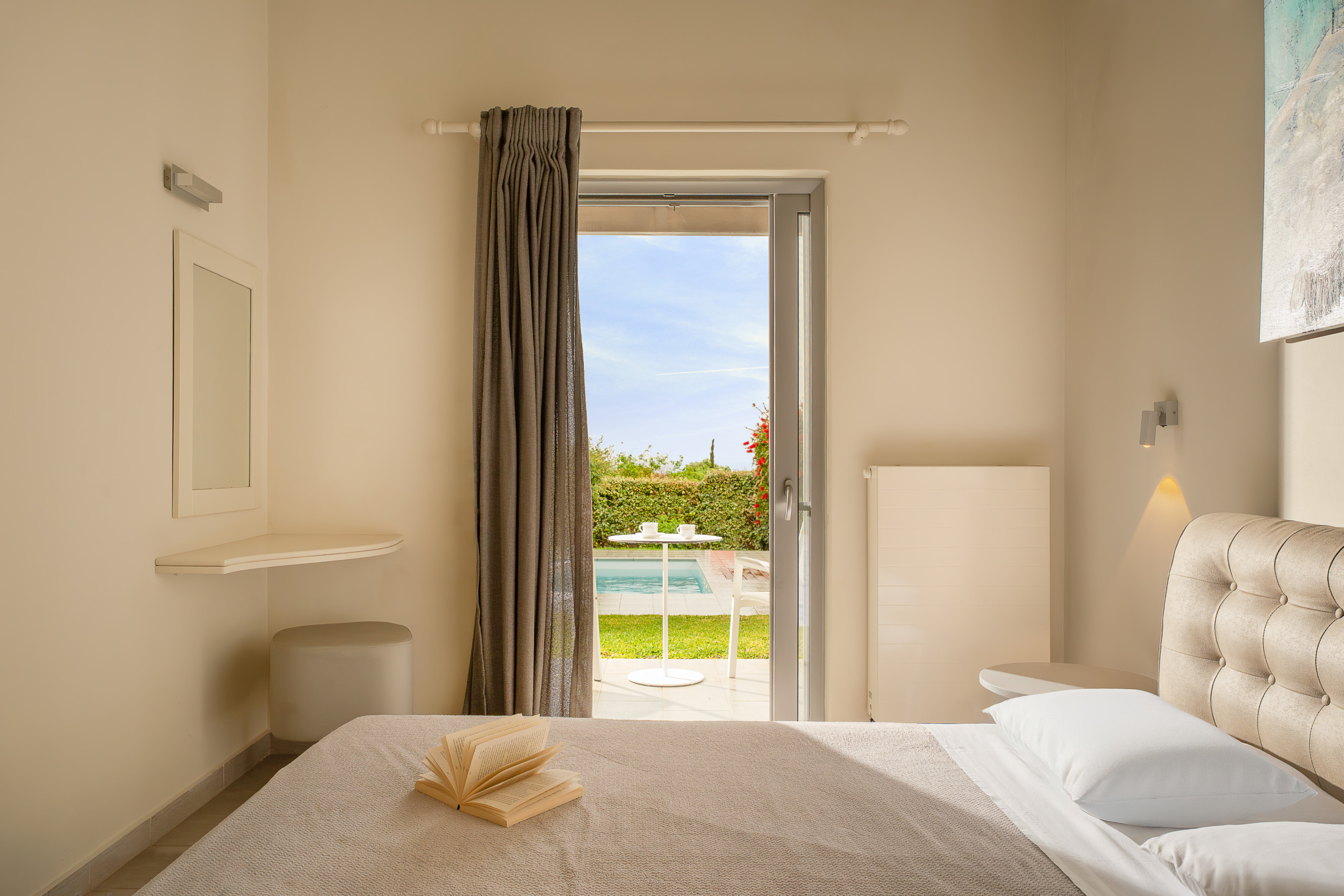 Villa Lefteris is set in a great location, within walking distance of local tavernas, shops and the two sandy beaches. This newly built, large modern one bedroom property has been styled and finished to a very high standard and sits within beautifully landscaped gardens. Villa Lefteris offers a spacious open plan and shabby chic design, offering beautiful pastel colours and wooden vaulted ceilings throughout. From the living area, patio doors lead out to a large covered terrace which overlooks the pool, the sea and surrounding countryside. The village of Svoronata sits on the coast surrounded by lush and unspoilt countryside, fields and orchards are abundant. In the village of Svoronata you will be charmed with the country paths offering a few local tavernas. There are also some Mini-markets, all situated within walking distance. The lovely beaches of Ammos, Ai helis and Avithos are all close by. Argostoli, the capital of the island, Lassi and the famous Makris Gialos beach, are all within a fifteen minute drive away from Villa Lefteris.
