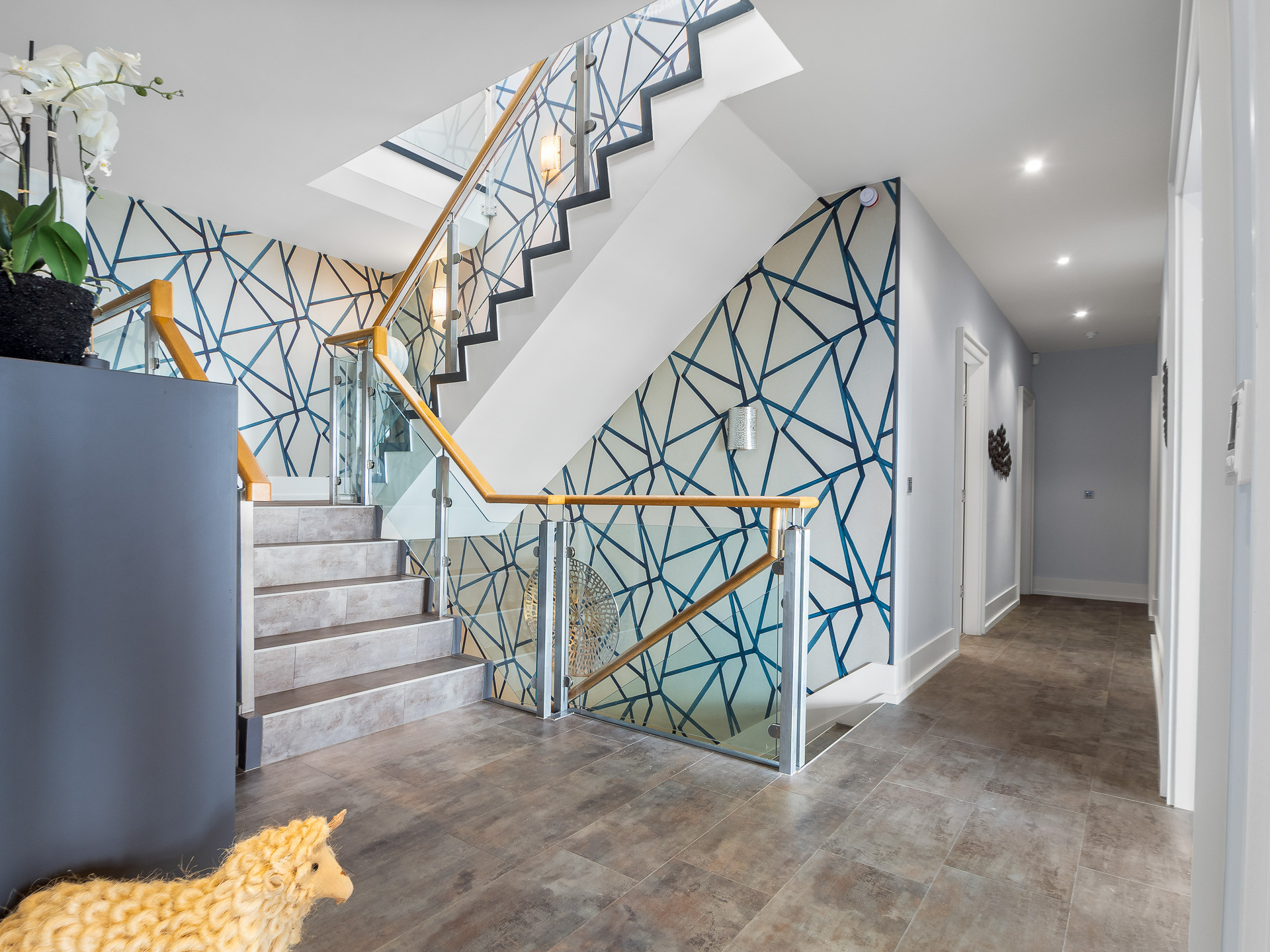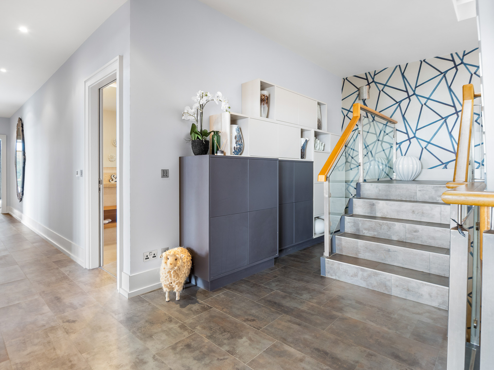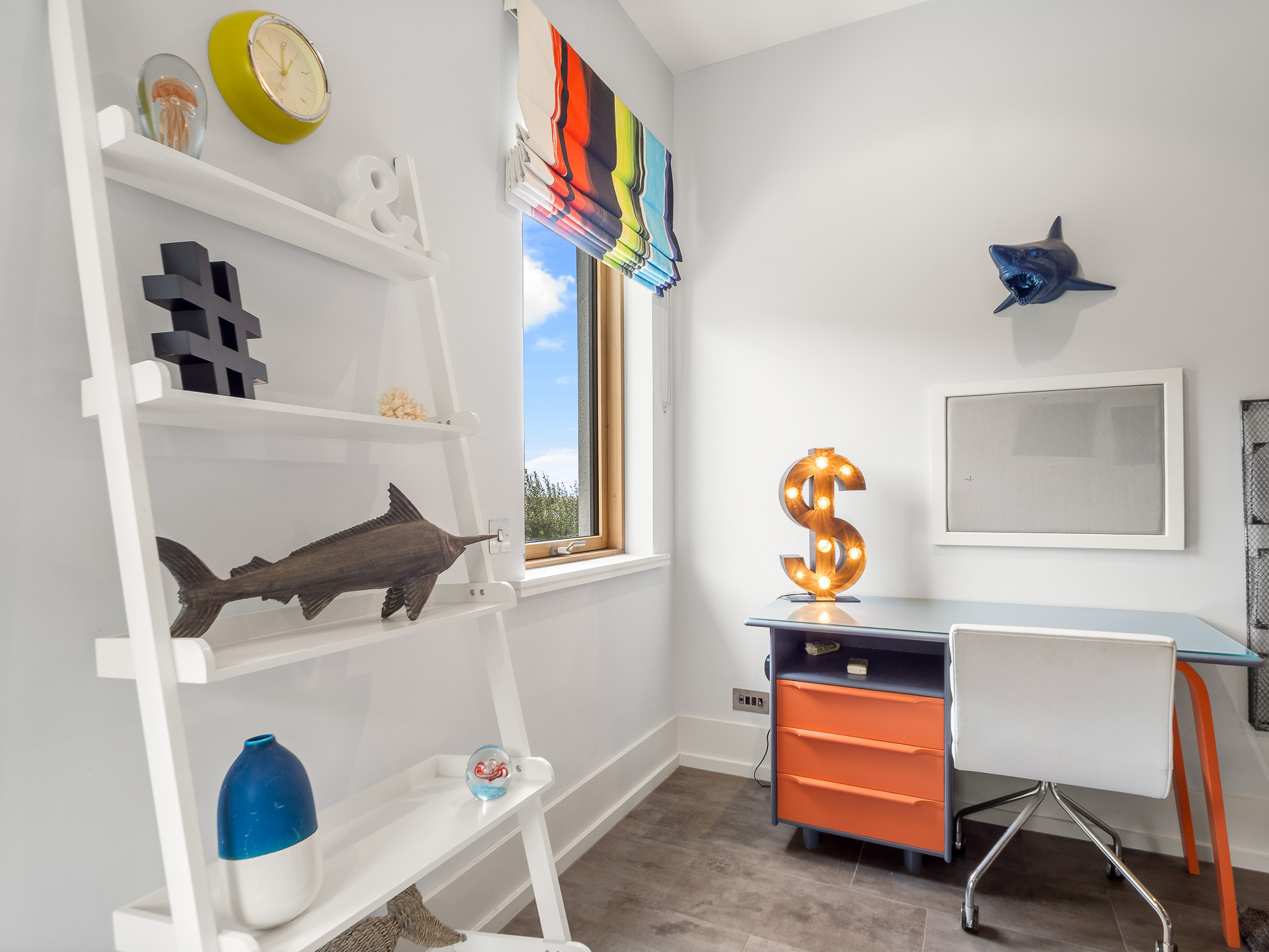 Five spacious en-suite bedrooms promise the ultimate in comfort, each a sanctuary designed for a peaceful night’s sleep, while a separate study on the upper floor offers a private retreat for those blending work and leisure.