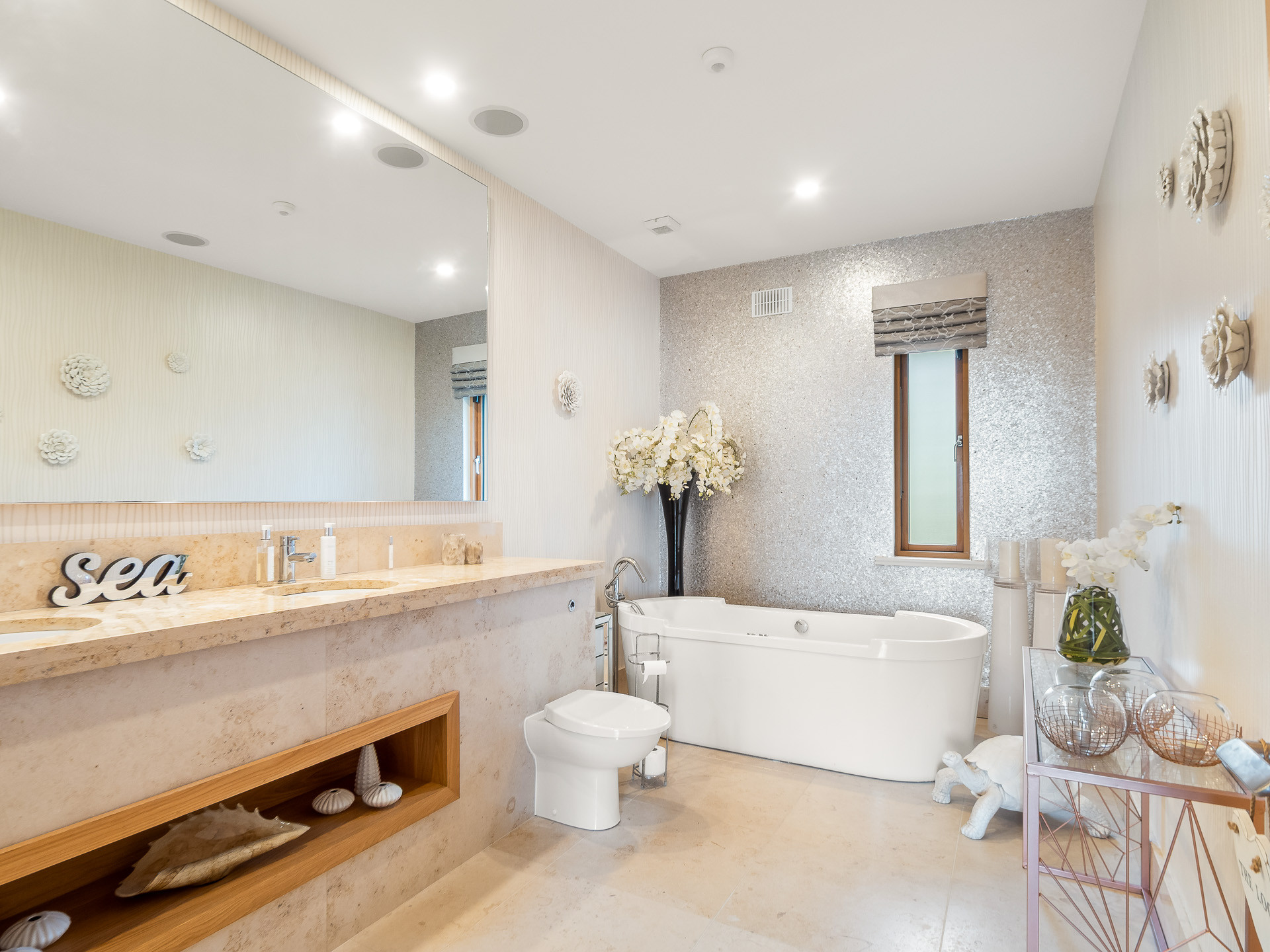 Inside, every detail speaks of refined luxury. This exceptional villa has been designed to make the most of its spectacular location, with floor-to-ceiling windows throughout, flooding every room with natural light and framing panoramic views that shift with the tides and the skies.
