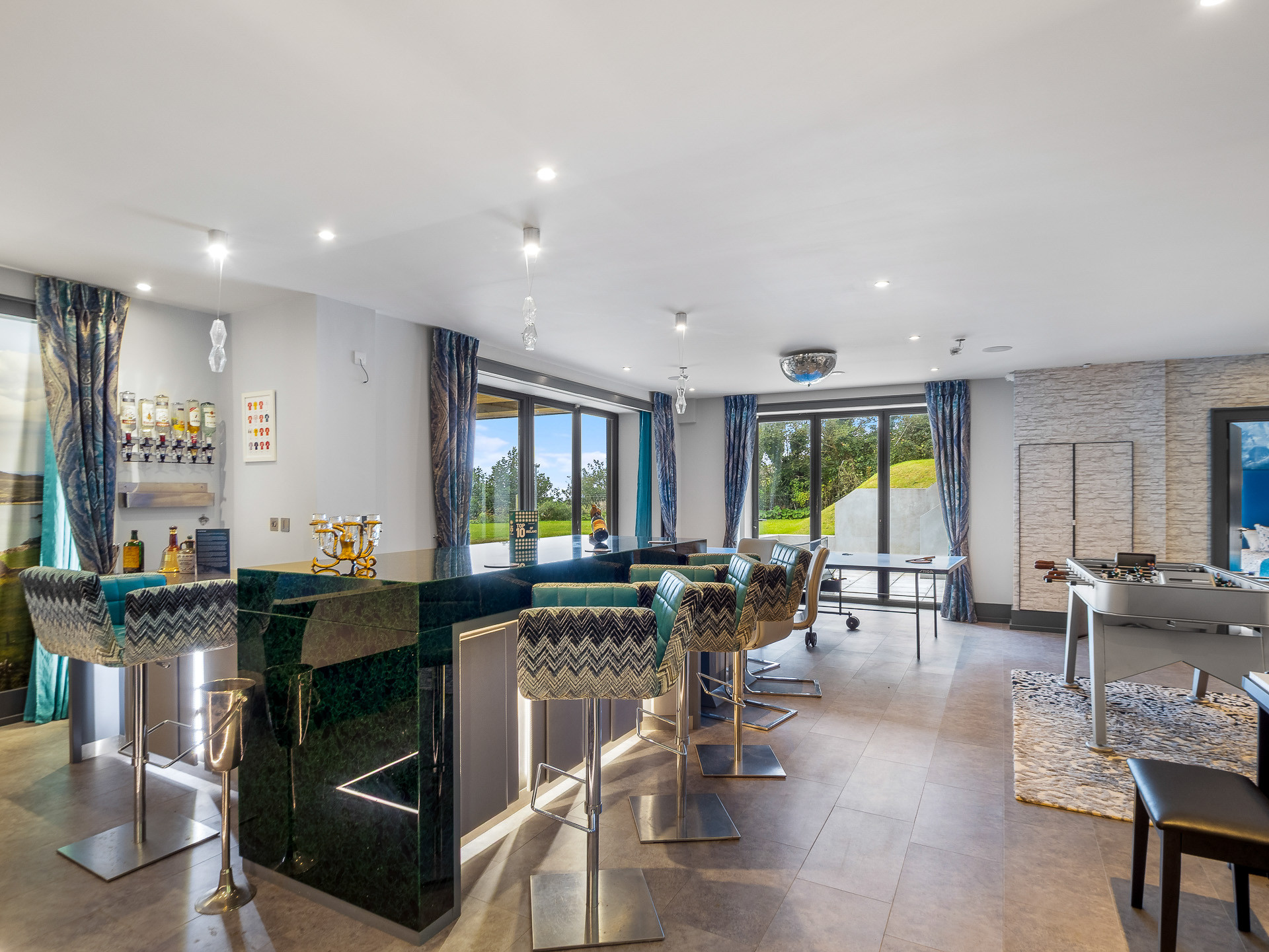 deepcushioned sofas in the cinemastyle lounge as the latest blockbuster fills the big screen. A sleek bar keeps the conversation flowing from predinner cocktails to midnight toasts, while air hockey, darts, table football and table tennis spark hours of friendly rivalry. Whether it’s an energising start to the day or a cosy winddown after exploring Connemara, this lowerlevel retreat delivers luxury, laughter, and a sense of togetherness that lingers long after checkout.