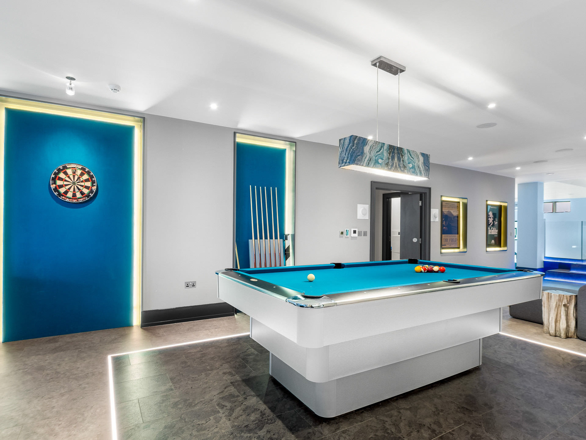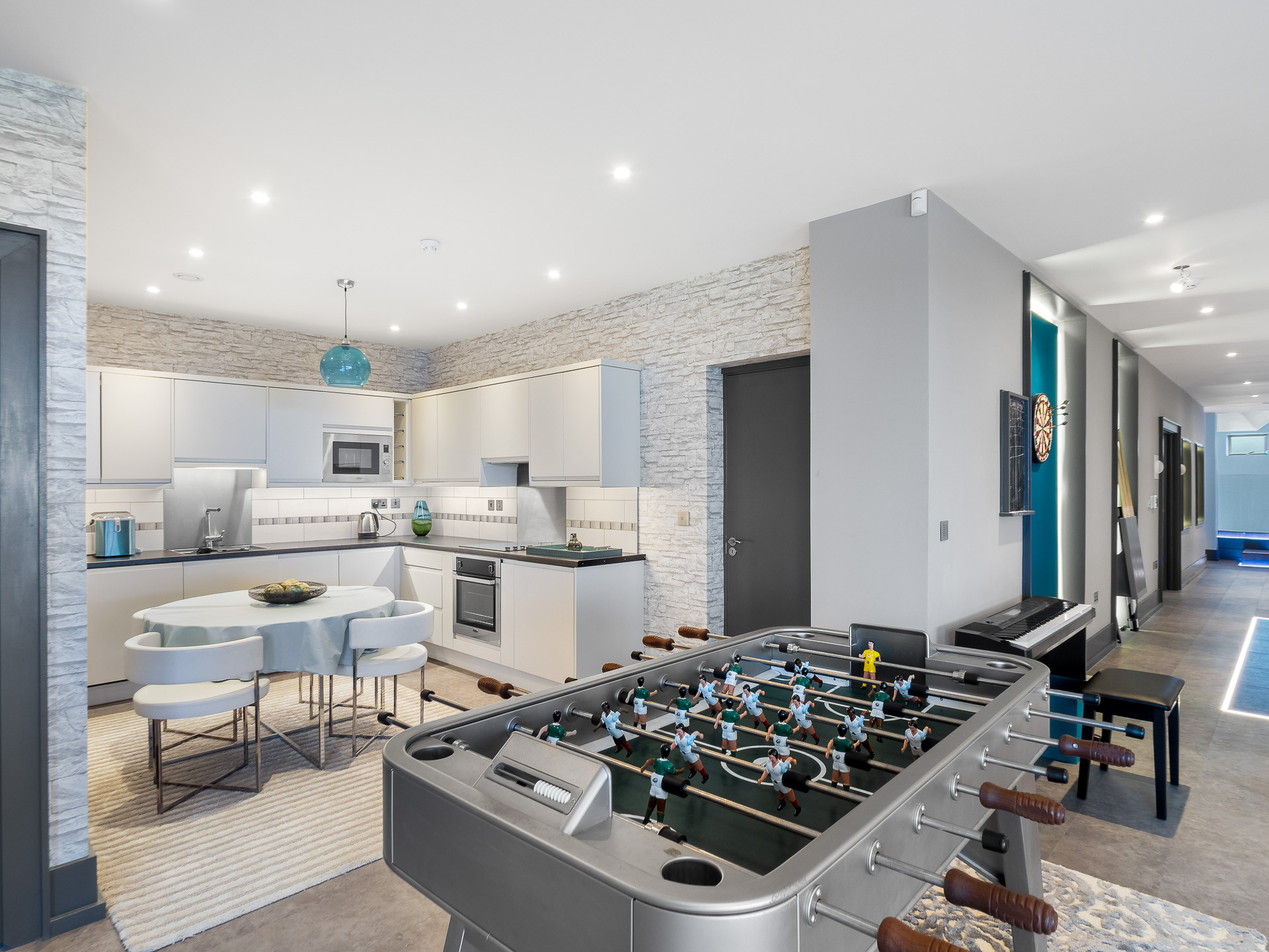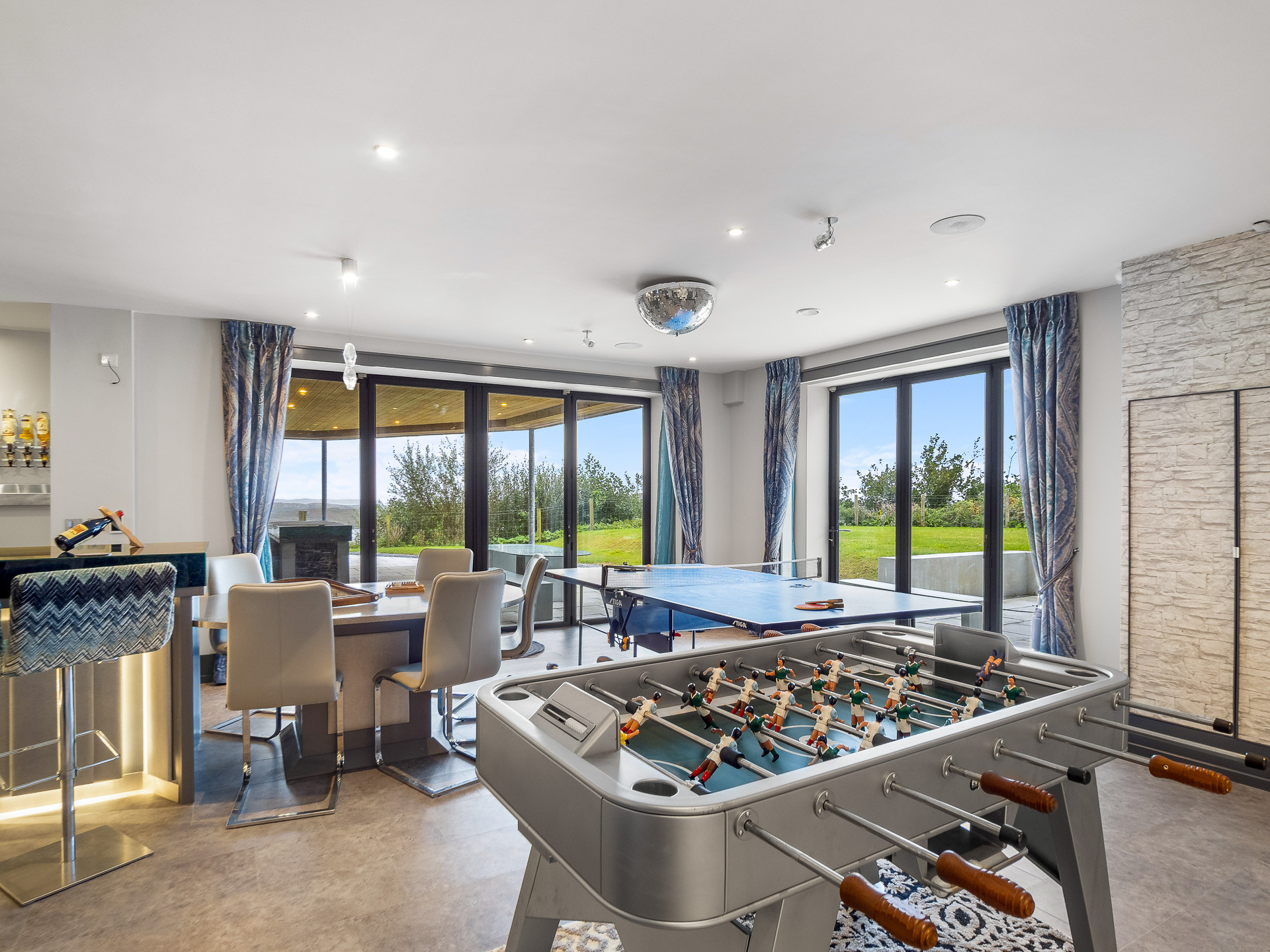 -Fully equipped games room with pool table, table tennis, air hockey, table football and darts