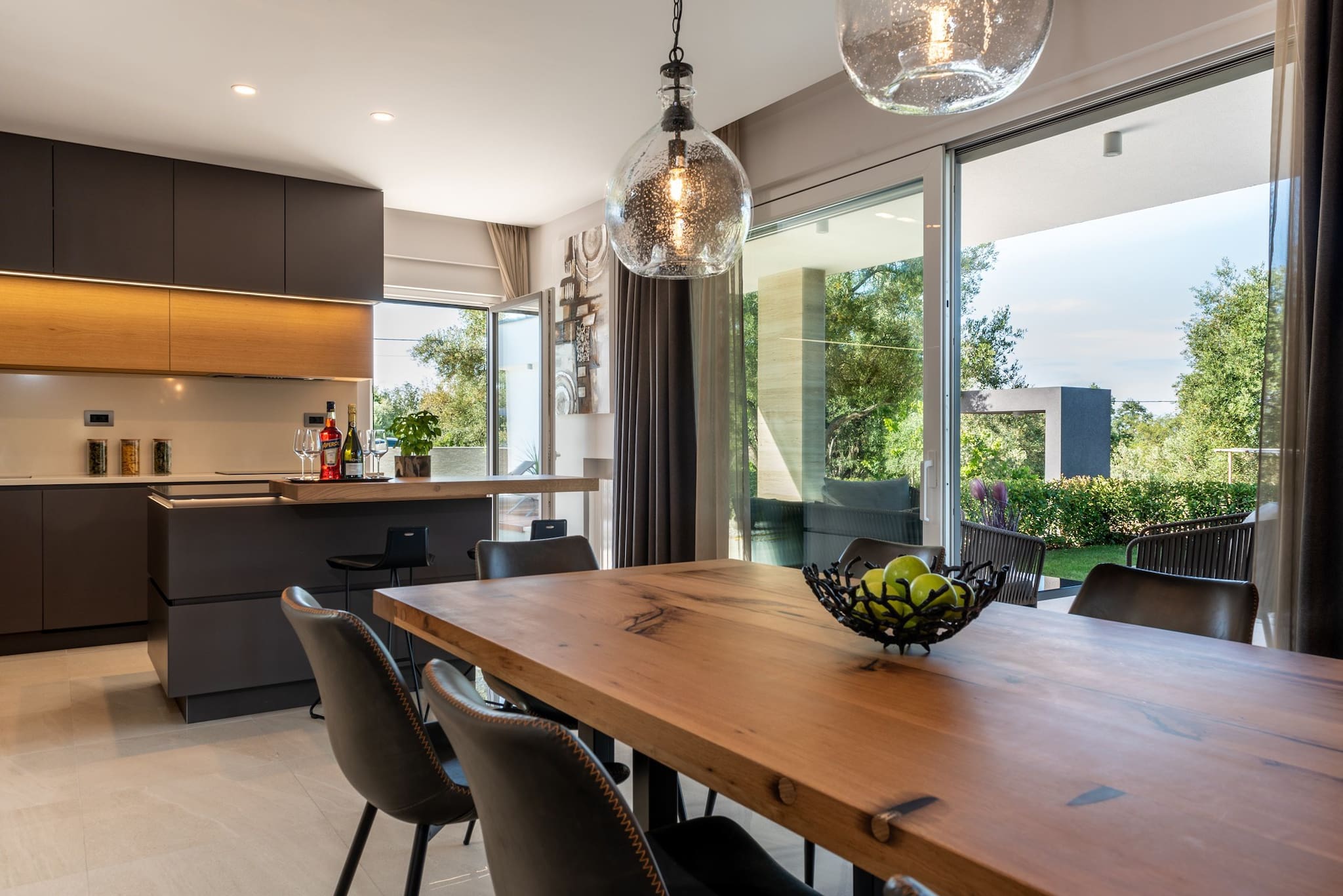 Villa offers a terrace with dining area next to the pool, so as another terrace at the roof, which provides a wonderful sea view.