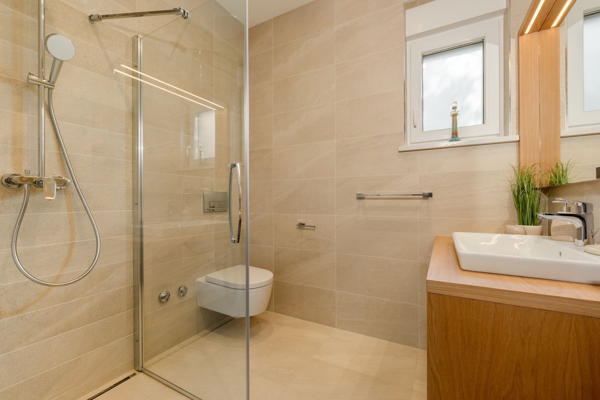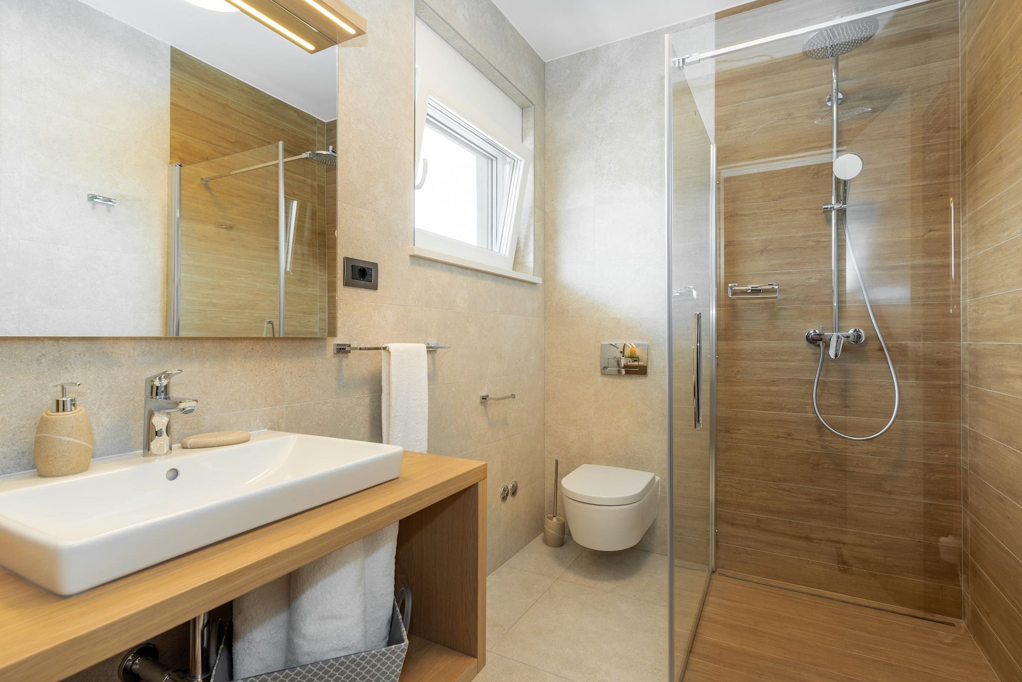 Every bedroom has an en suite bathroom, and there is also one separate toilet in the villa, and one more next to the outdoor kitchen.