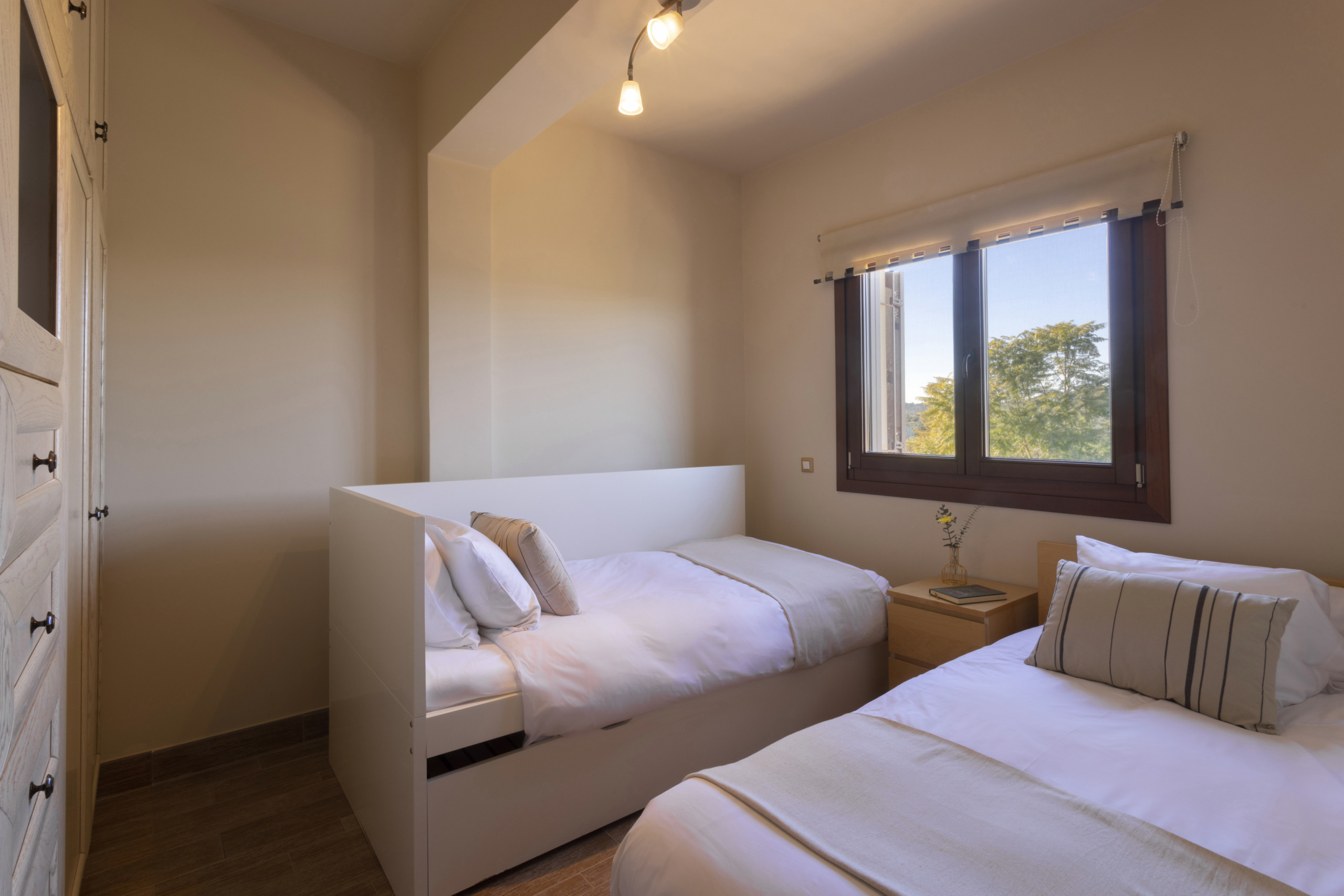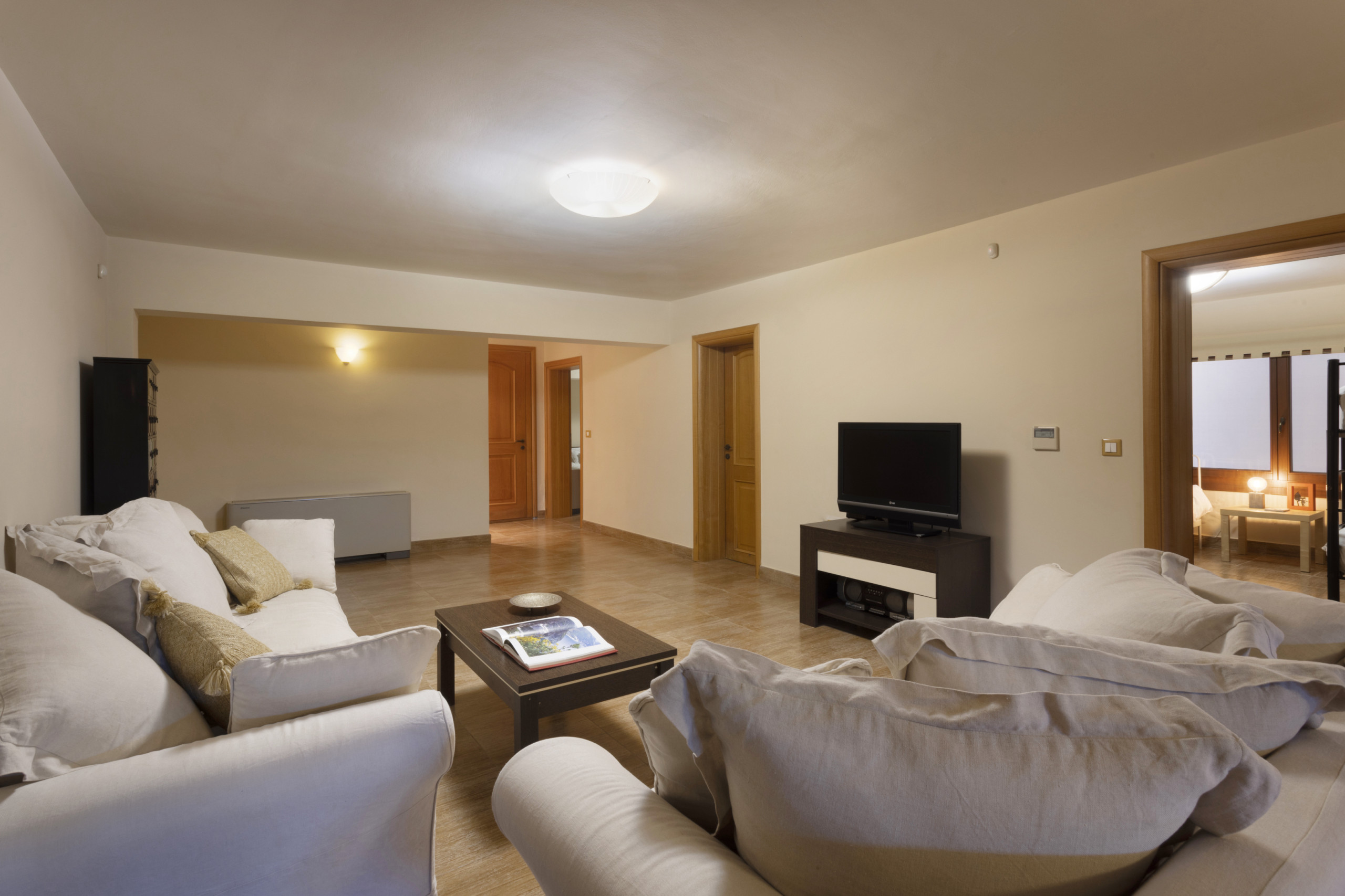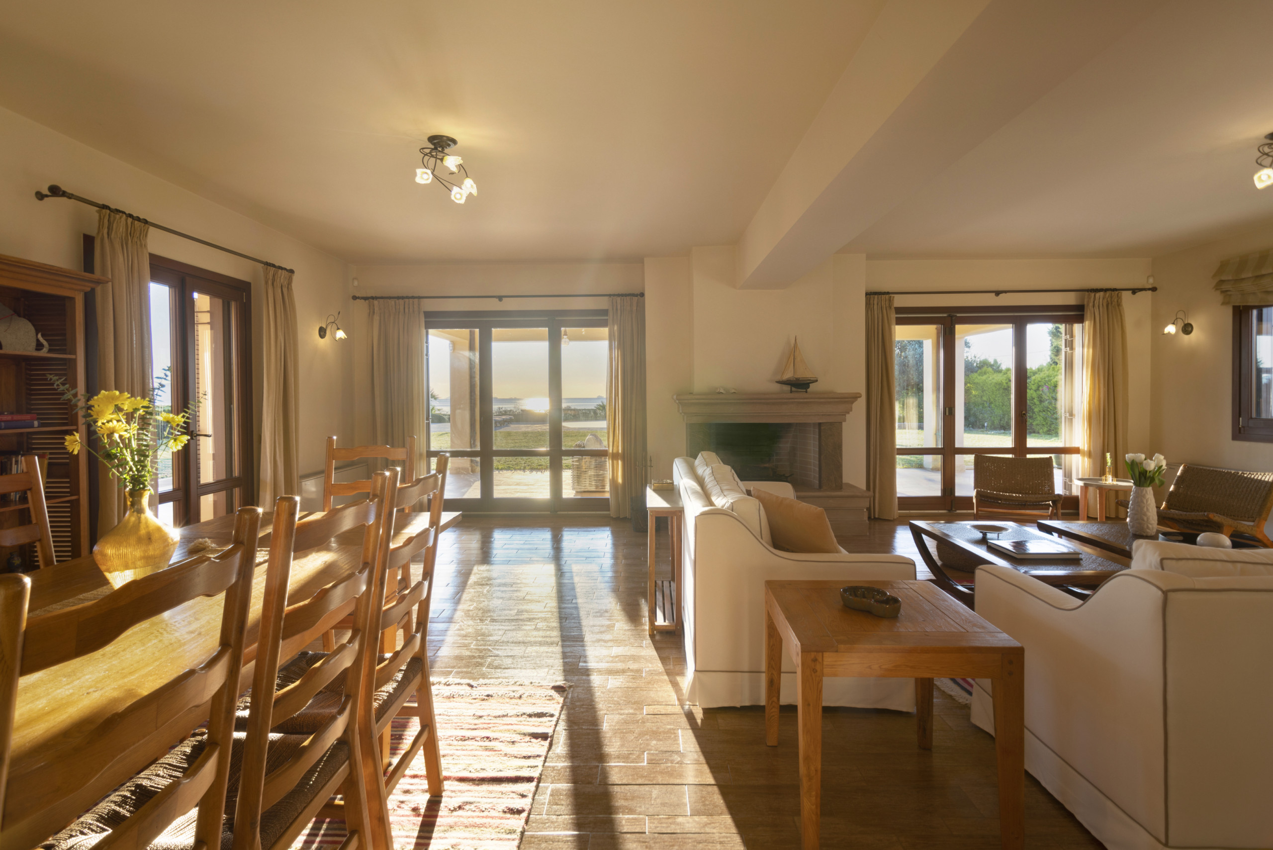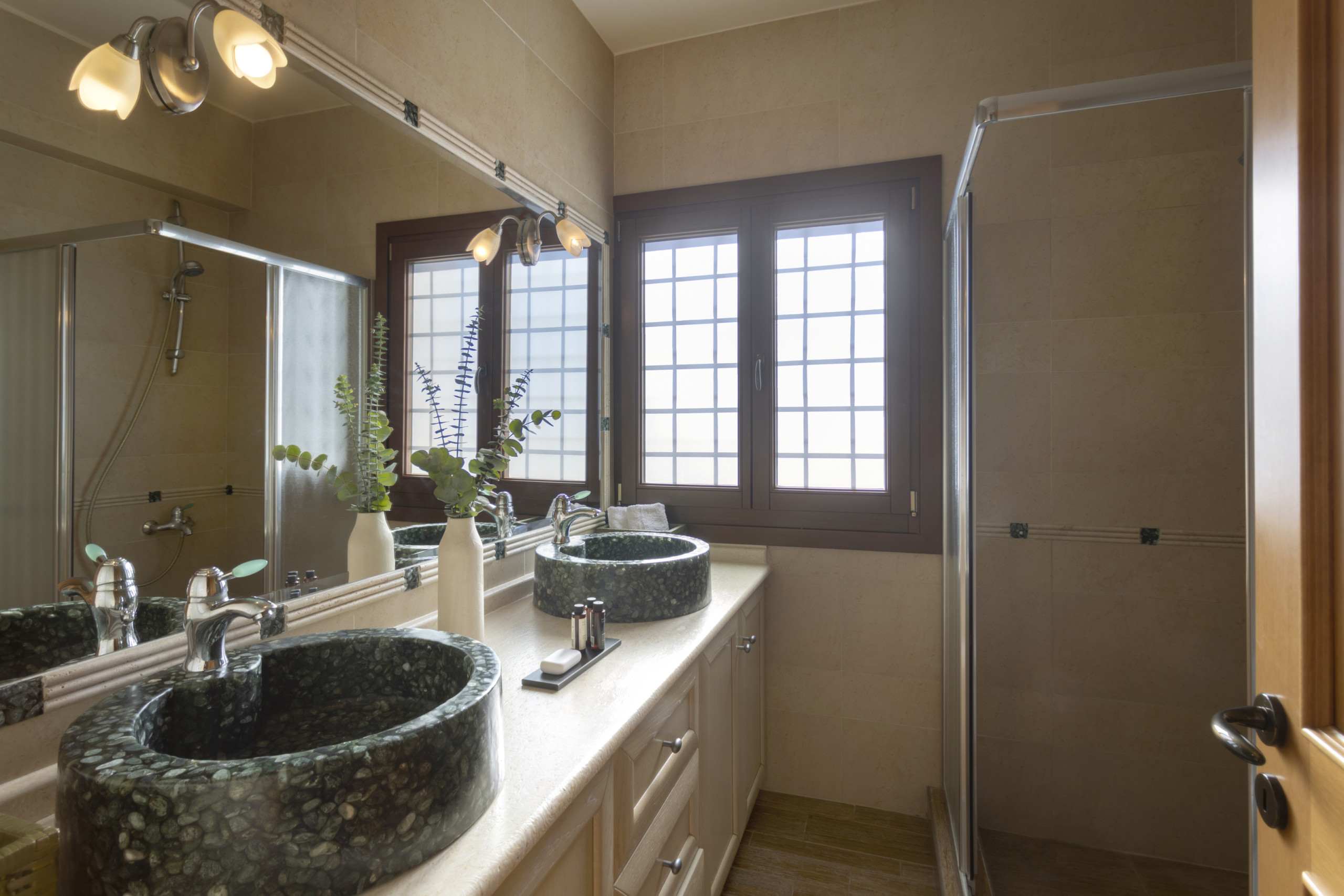 Spread across two levels, this private villa boasts an array of exceptional amenities. The upper level features a spacious living and dining room with a cozy fireplace and panoramic sea views. The fully equipped kitchen is perfect for preparing delicious meals, and a discreet guest bathroom adds convenience. The master bedroom on this level includes an en suite bathroom with a bathtub and a generous 50 sq.m private veranda, where you can savour your morning coffee while taking in the serene emerald waters.