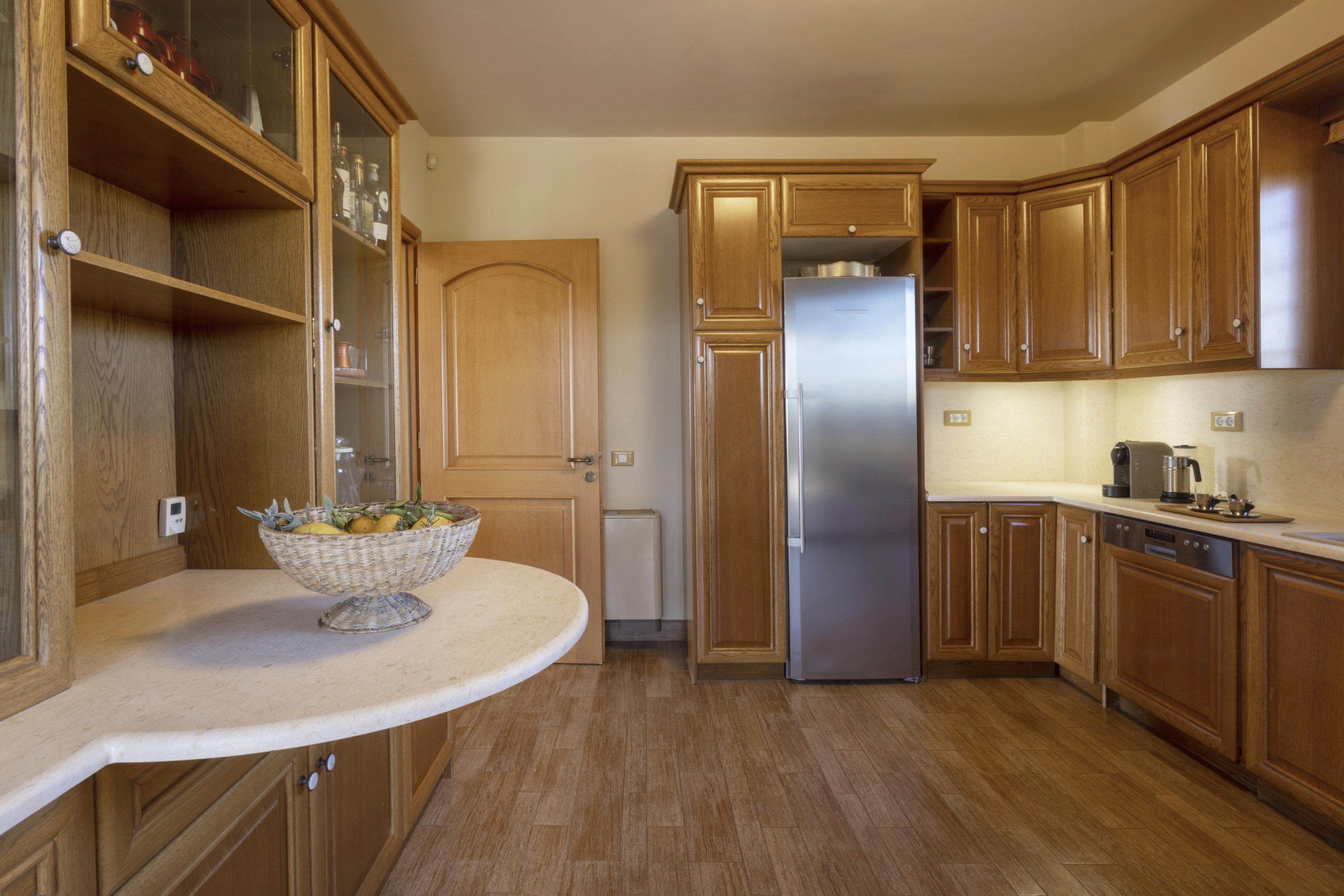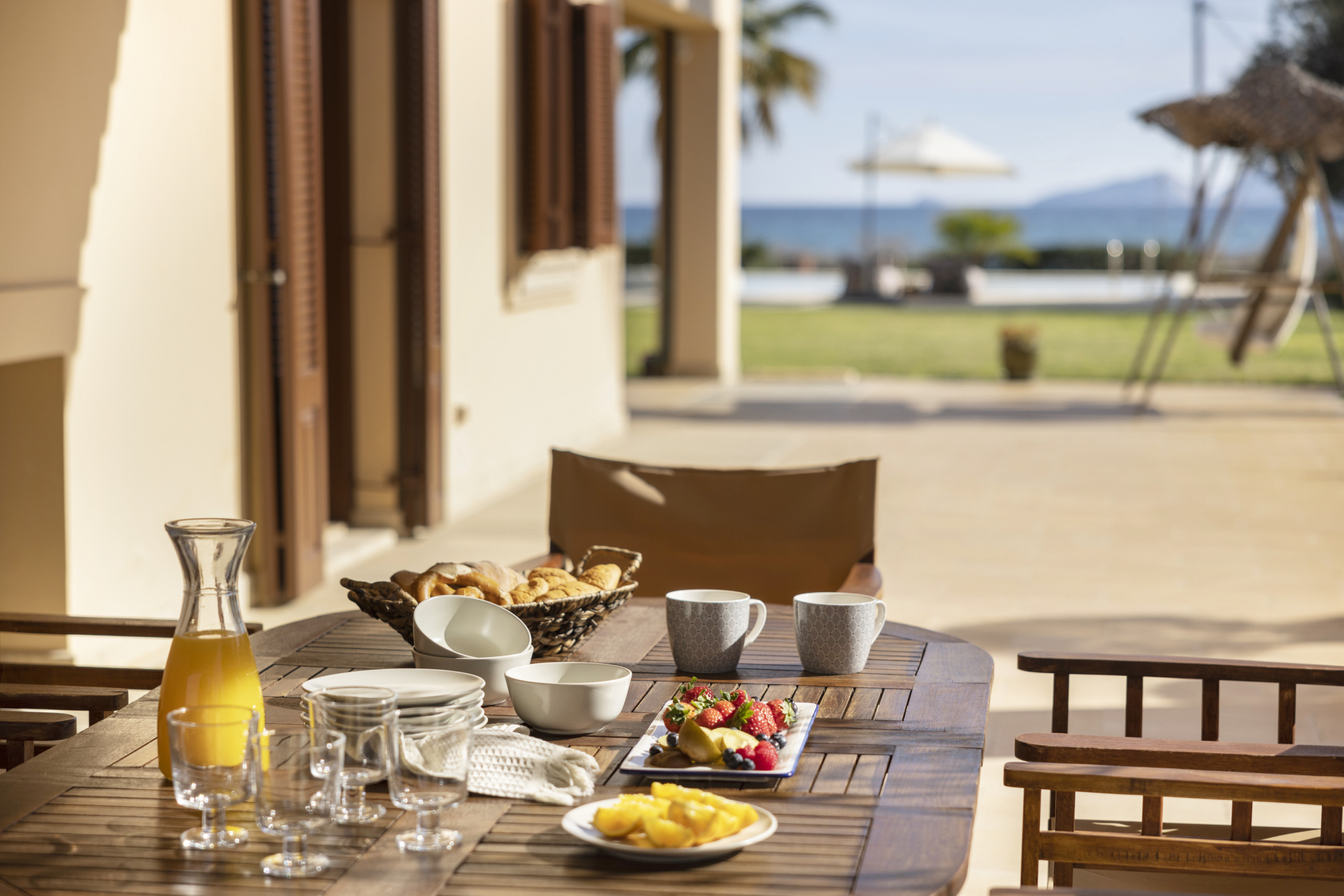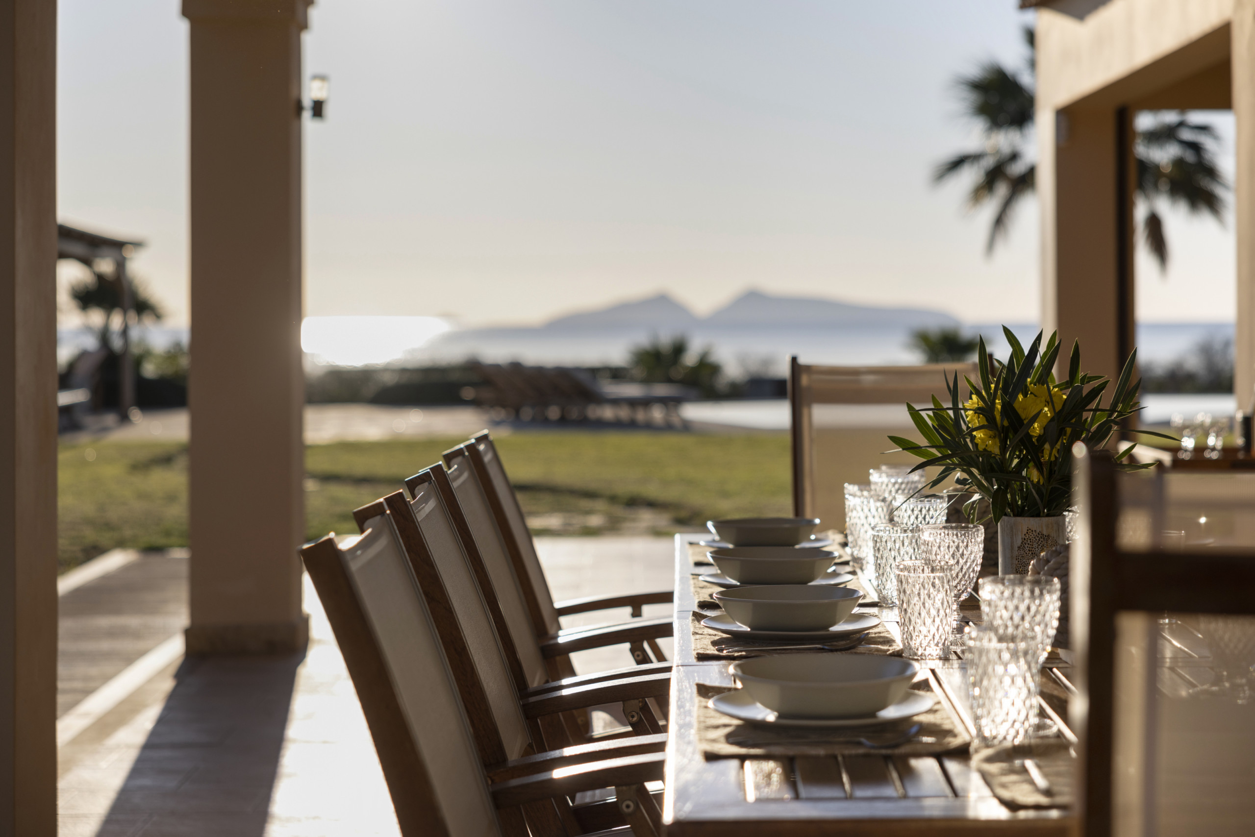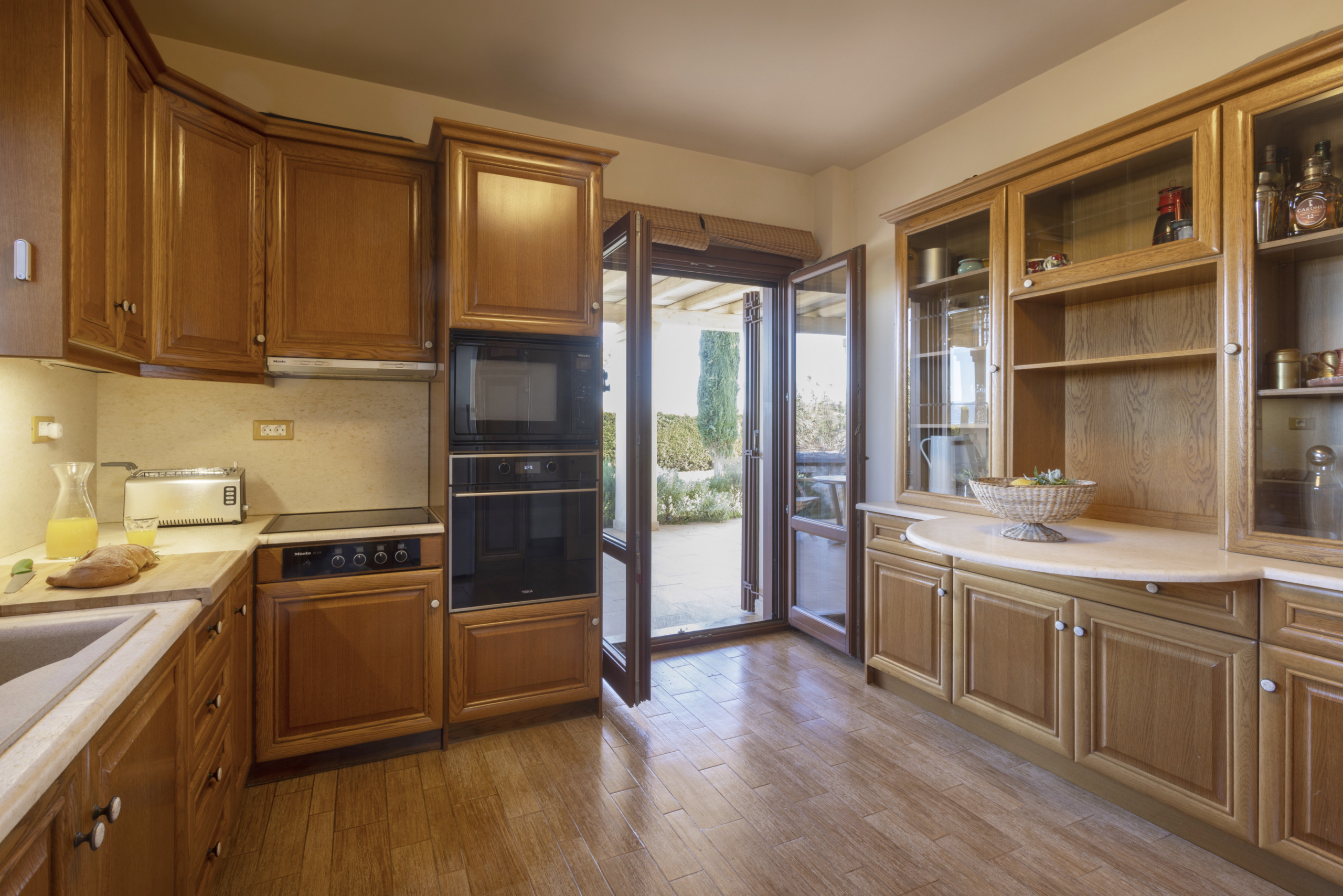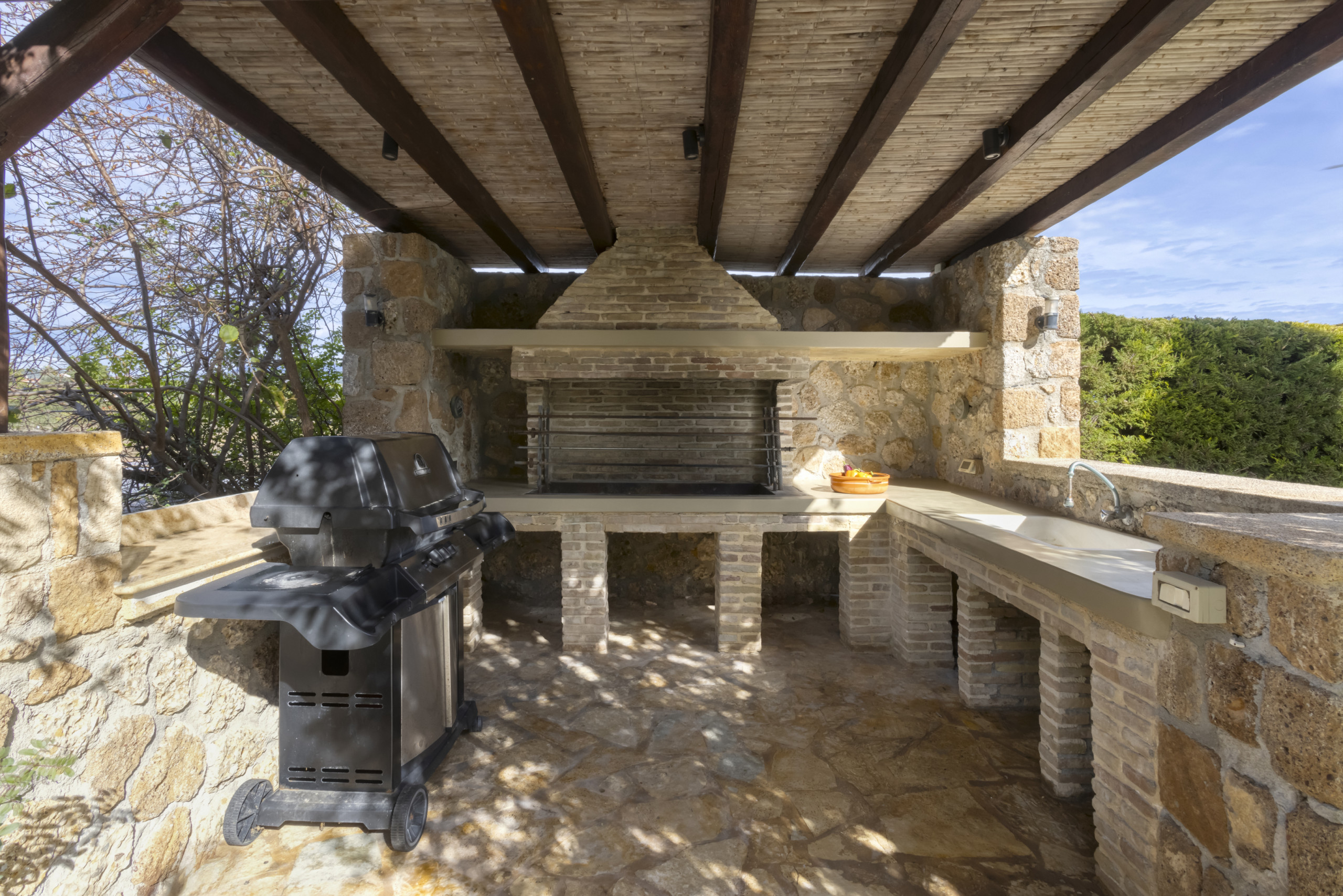 Outside, the villa boasts a generous outdoor space for you to enjoy. Immerse yourself in the 55 sq.m infinity pool, complete with sunbeds and umbrellas, while admiring the mesmerizing sea vistas. A shaded chill-out area with comfortable sofas is the ideal spot to witness the enchanting sunset. Indulge in relaxation at the pergola-covered lounge area with a bar, where you can savour a refreshing cocktail at any time of the day. The large sheltered BBQ area, adjacent to the outdoor dining and sitting area, features a long dining table that can accommodate numerous guests for unforgettable traditional Greek wood-fire BBQ dinners. Private parking and a beautifully landscaped garden complete the outdoor oasis.
