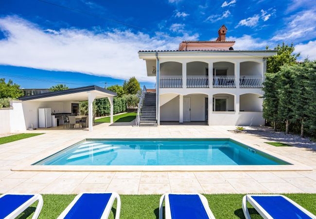 Guests have access to a villa with four bedrooms, two living rooms, two kitchens, three bathrooms and a garden with a grill and pool.