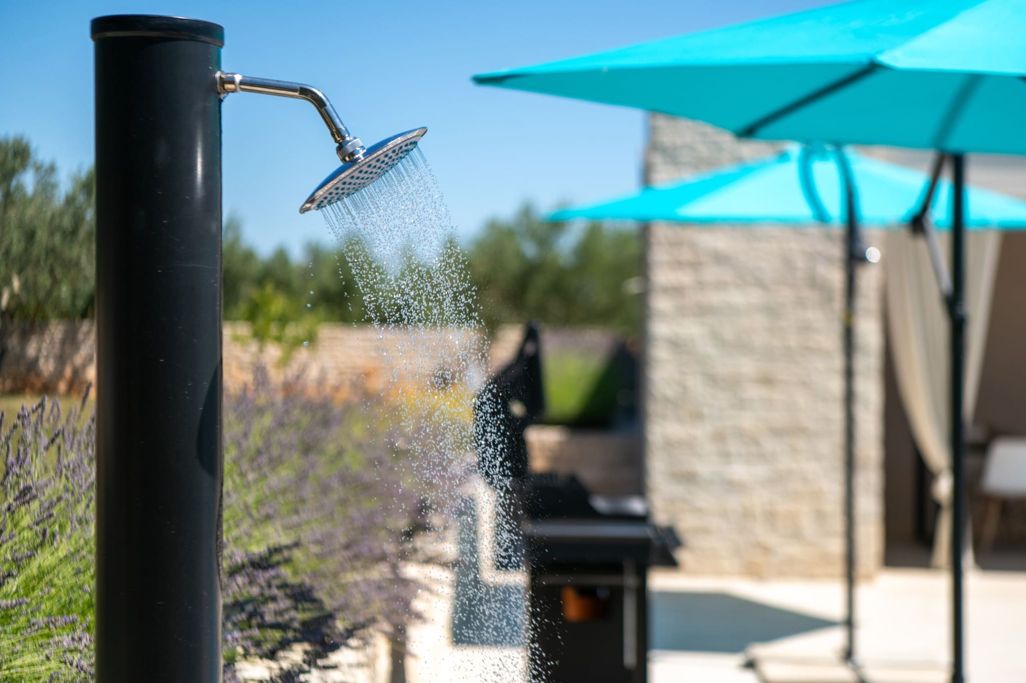 Private pool and jacuzzi are overlooking a big garden filled with beautiful plants, such as lavender, oleander and olive groves.