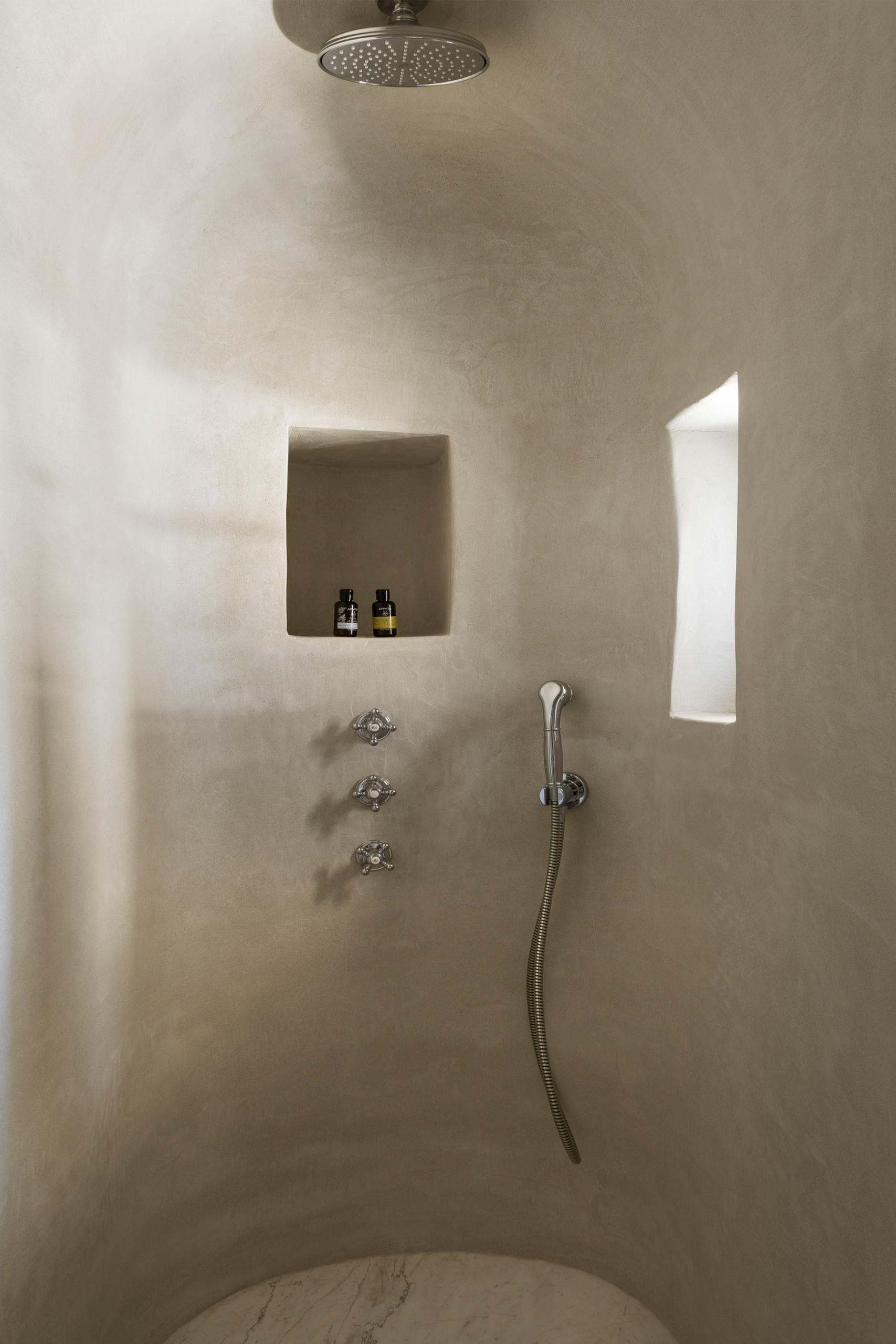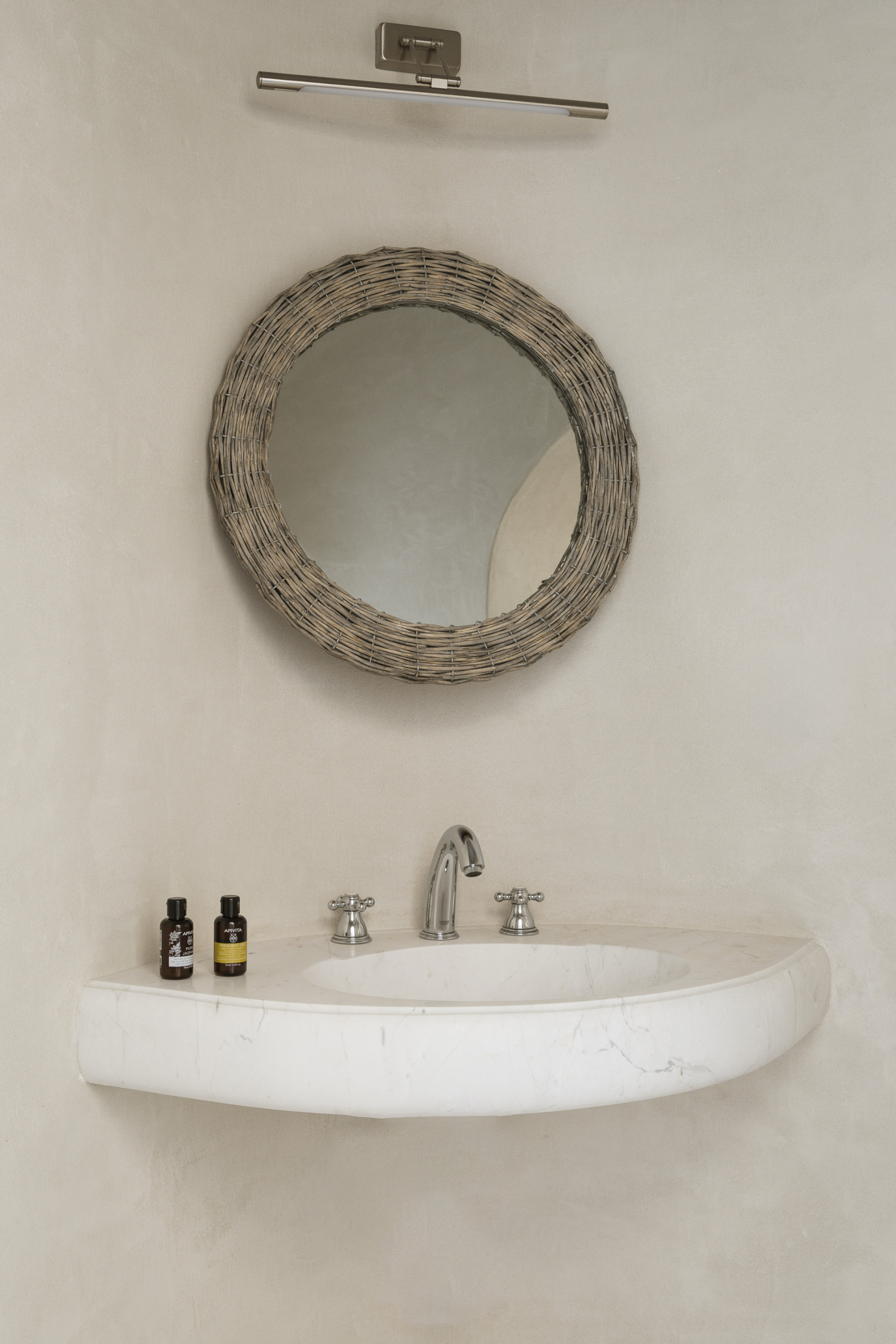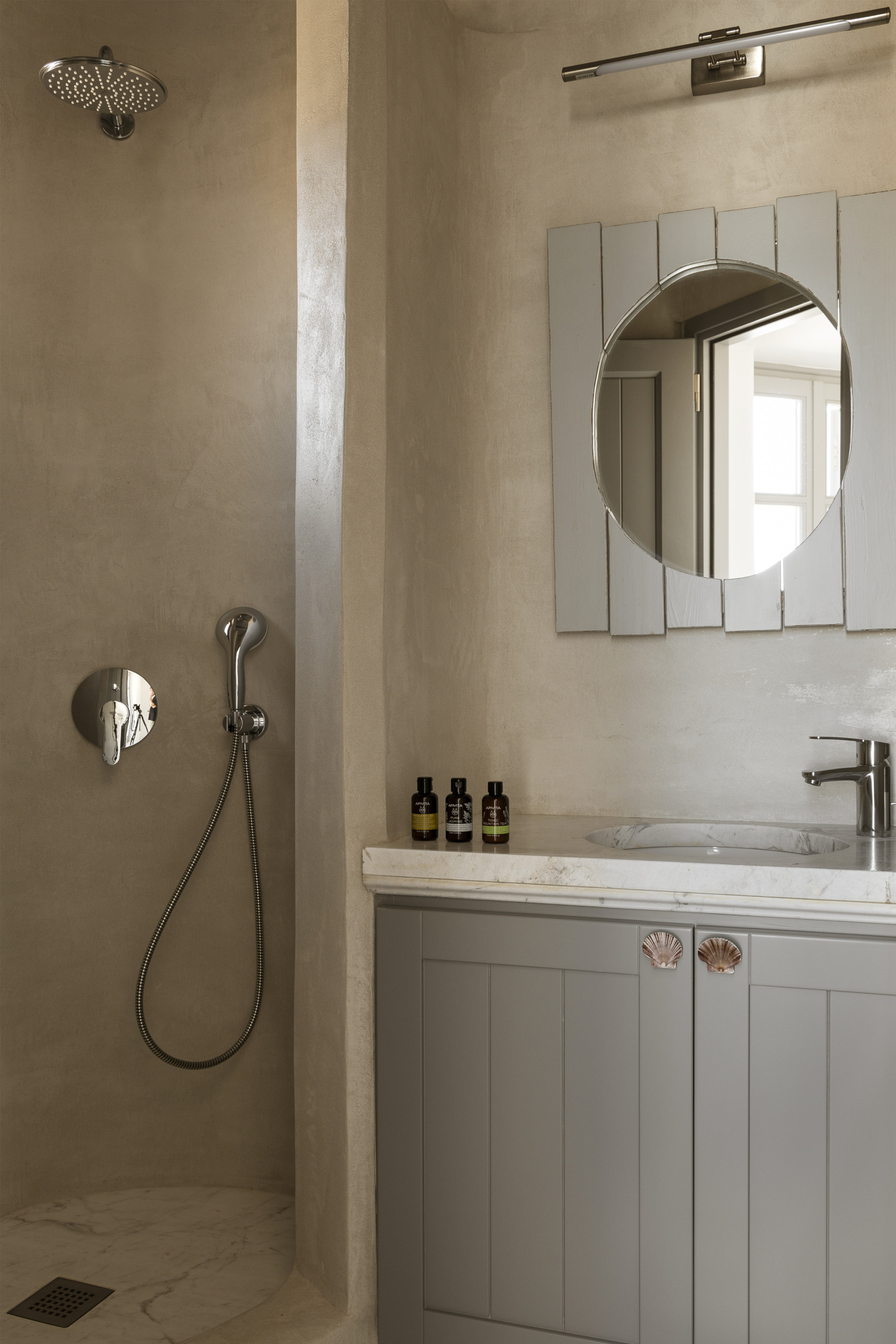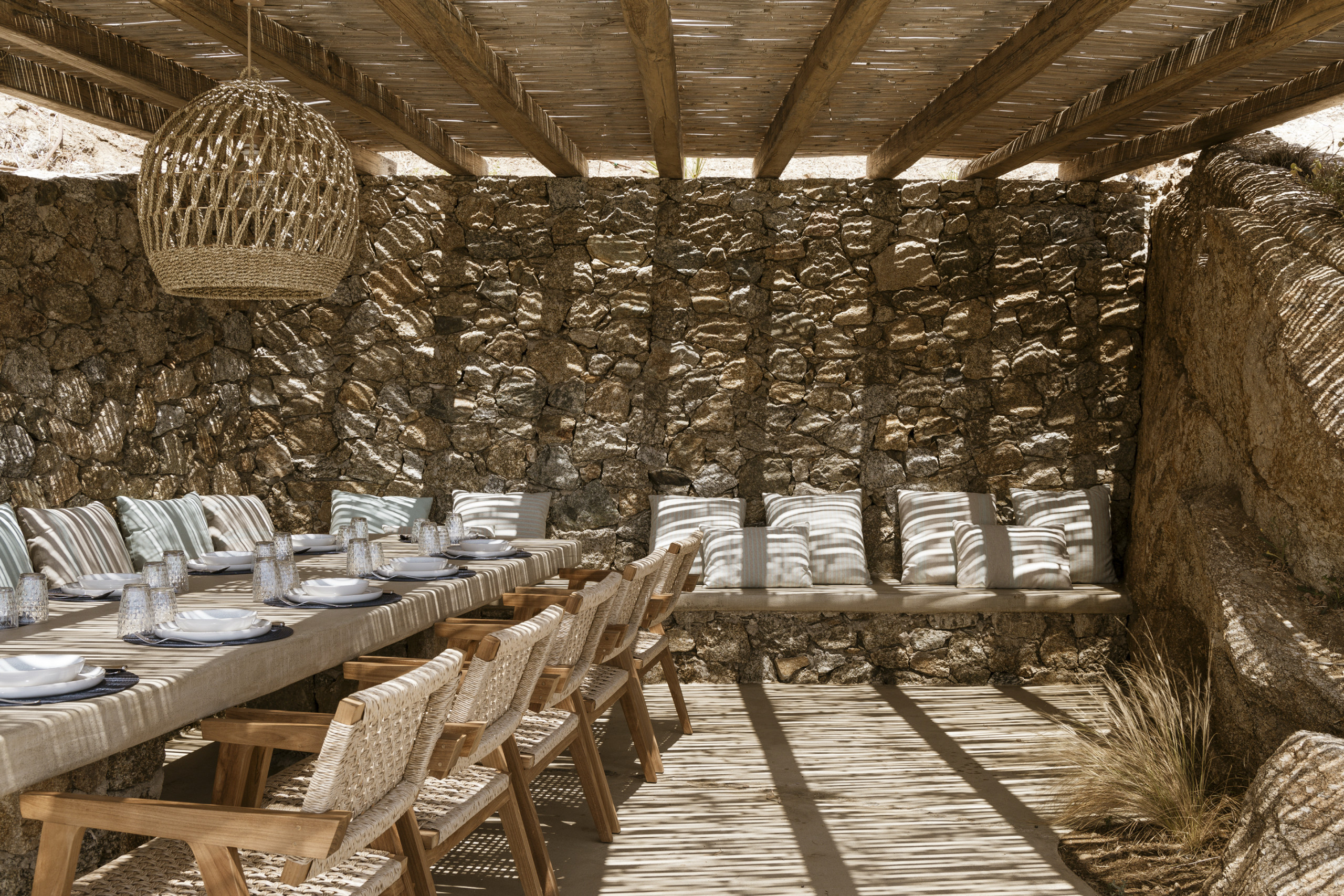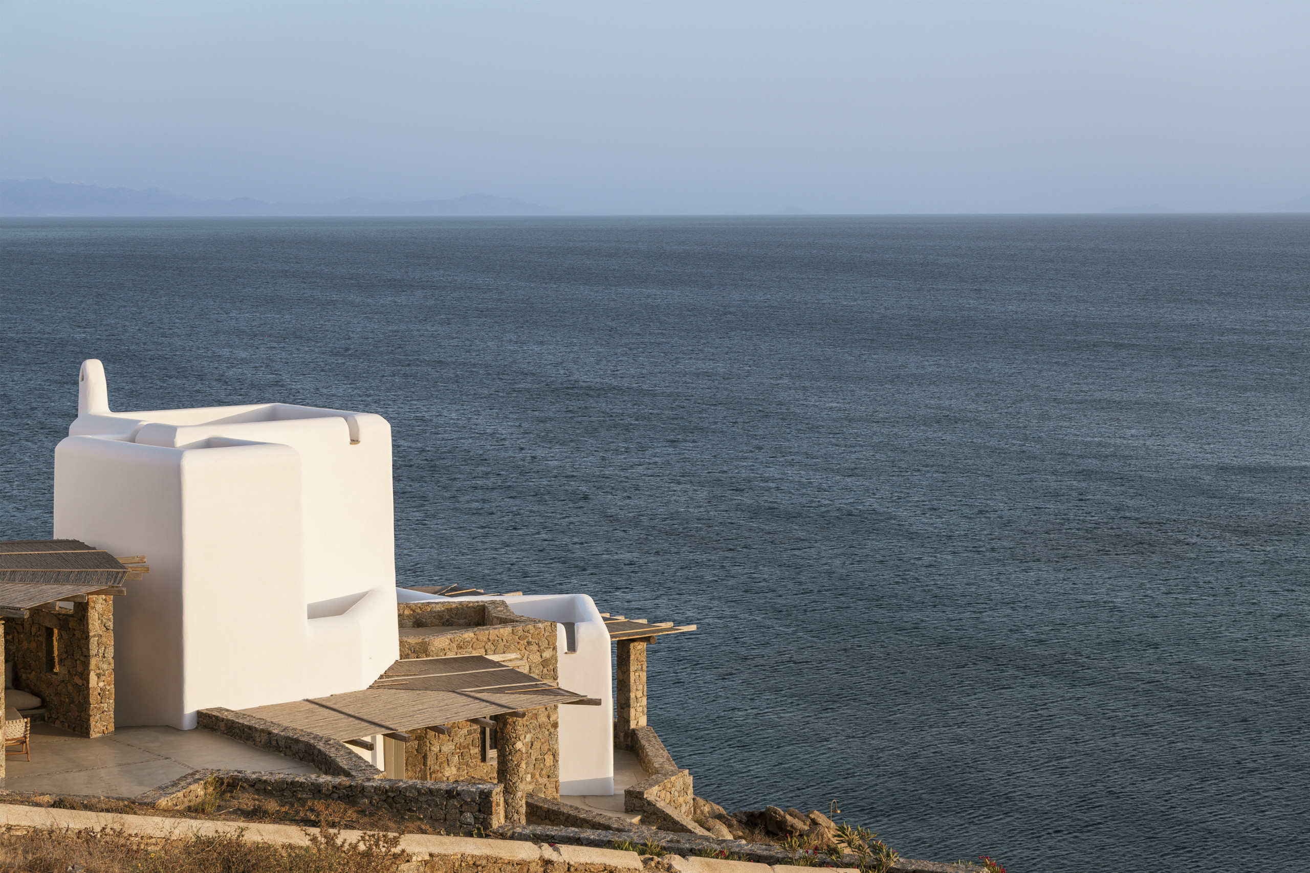 All the houses feature their own equipped kitchen, a cozy, relaxing living room and dining furnishings. In one of the houses, the dining and living room are a bit larger in case the whole group needs to gather inside. The bathrooms also bear the essence of the Cyclades with their traditional shower rooms and sinks while the bedrooms are elegantly decorated in bright white and beige hues with soft colour touches to let the natural light travel freely throughout all corners.