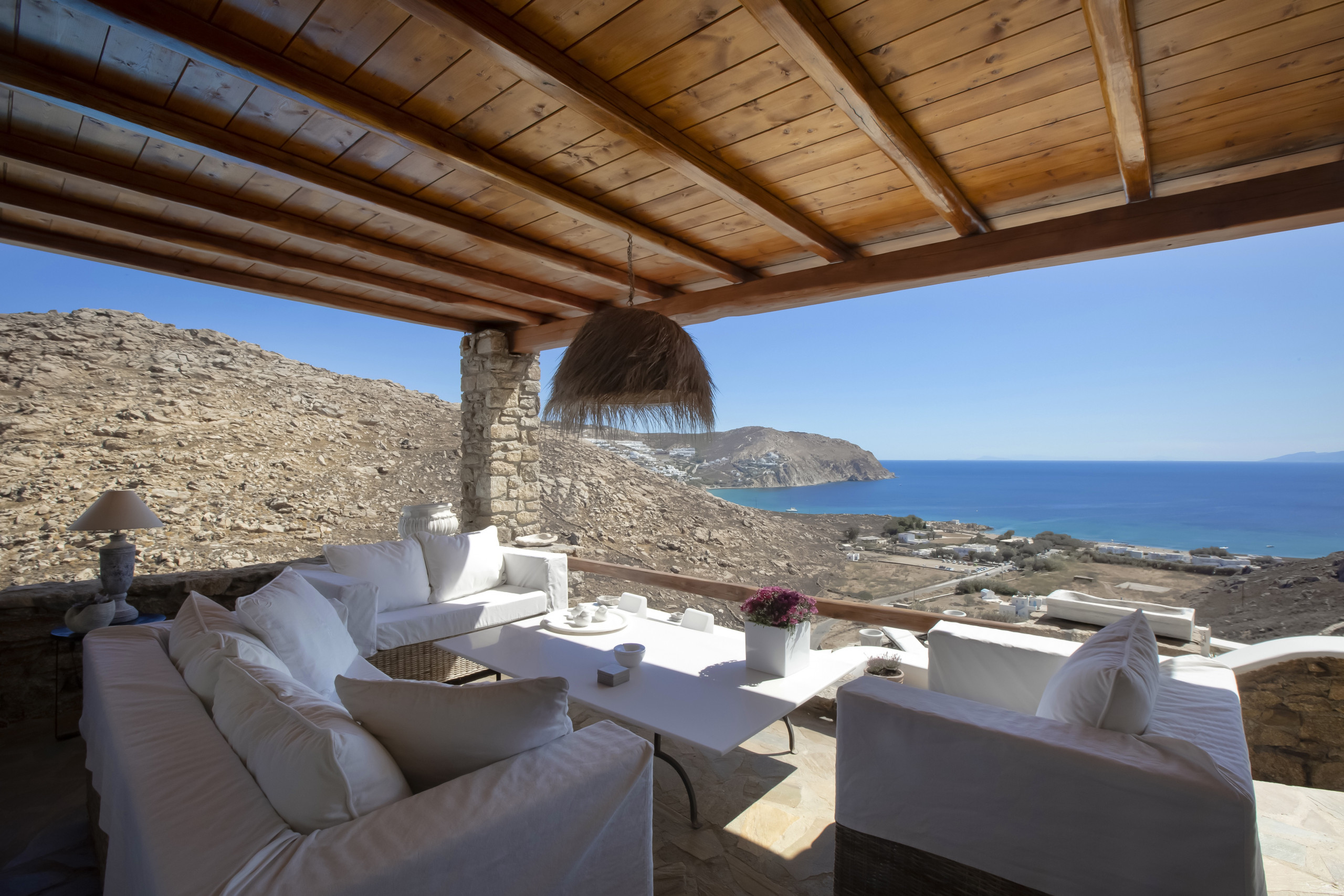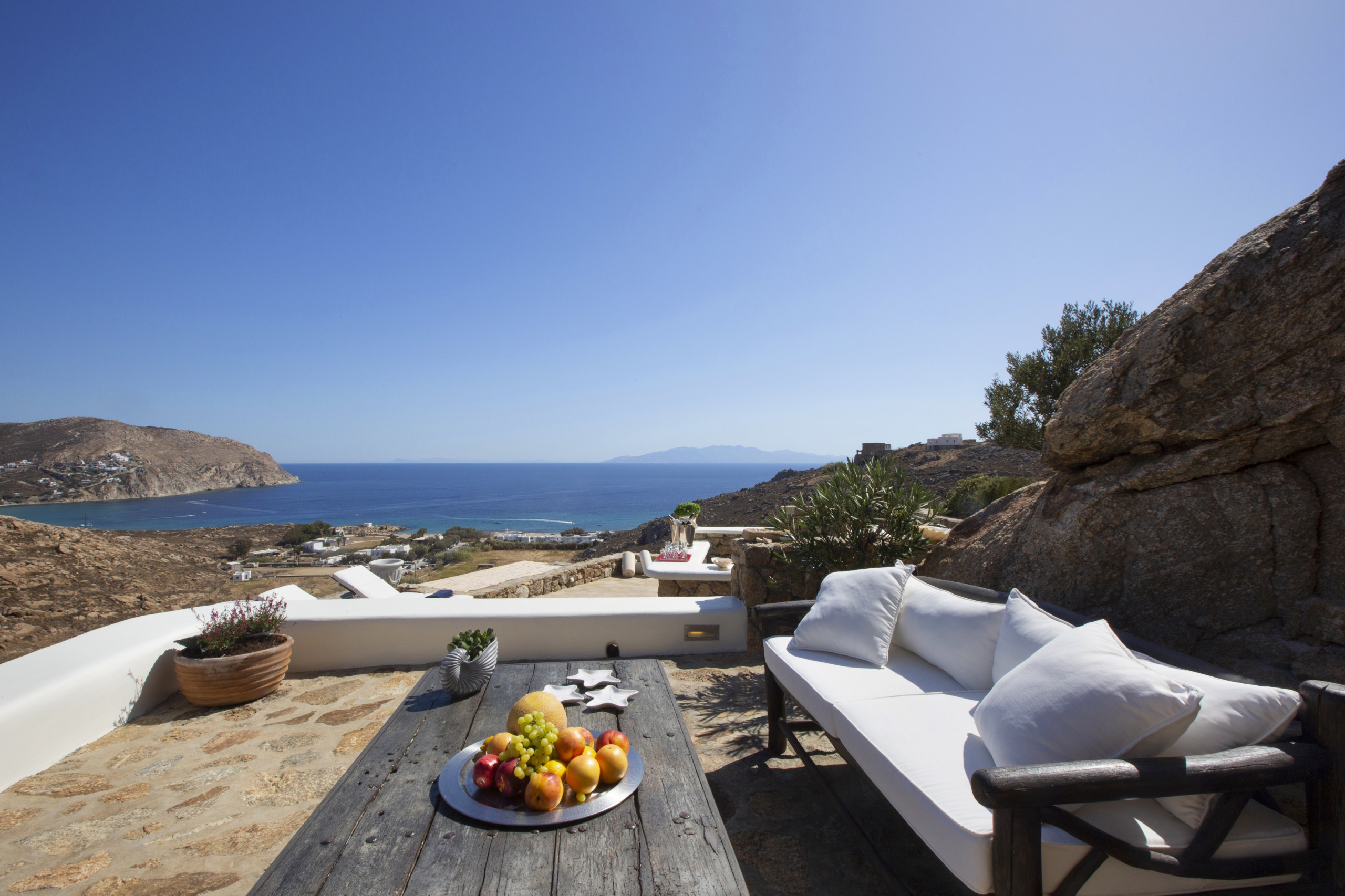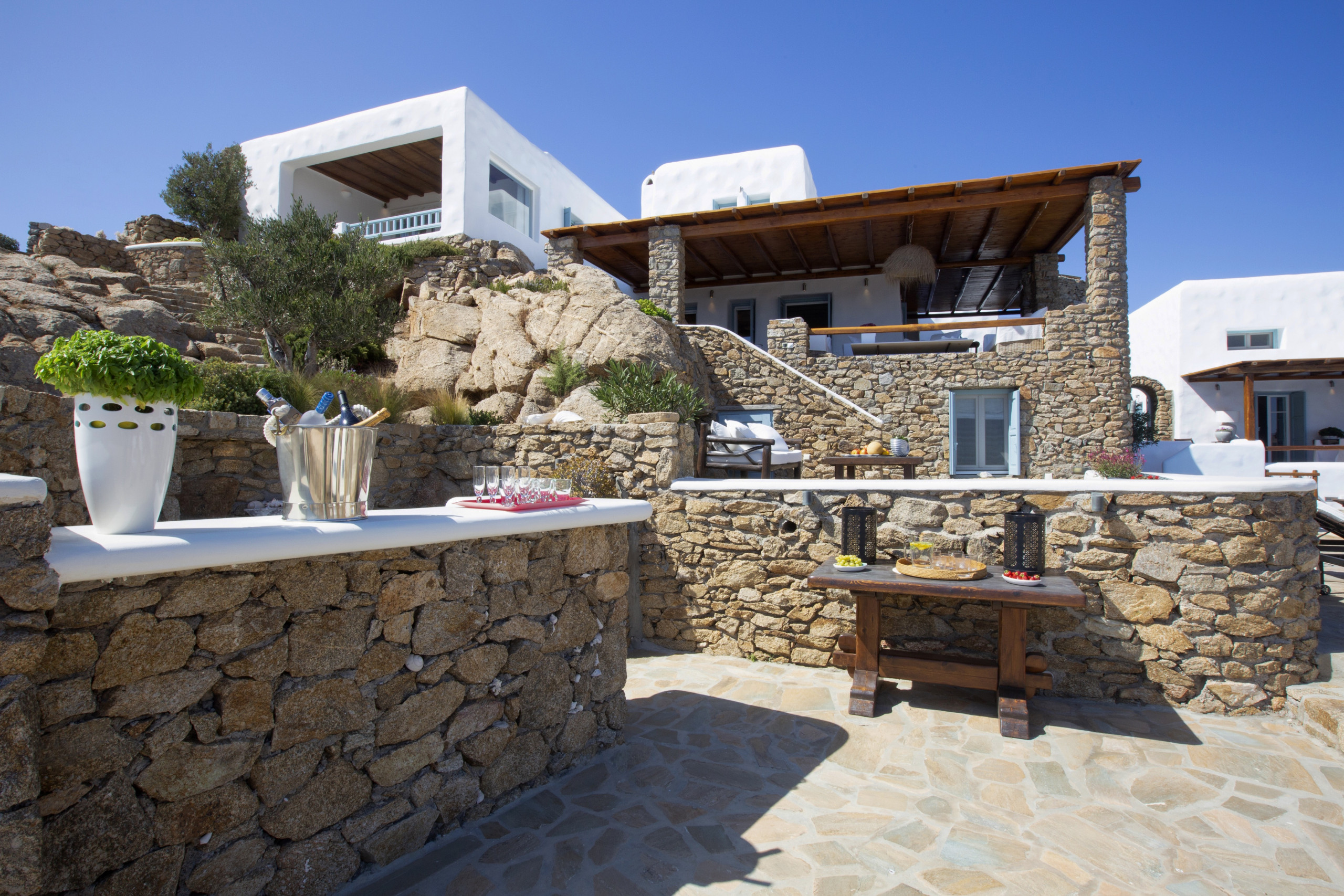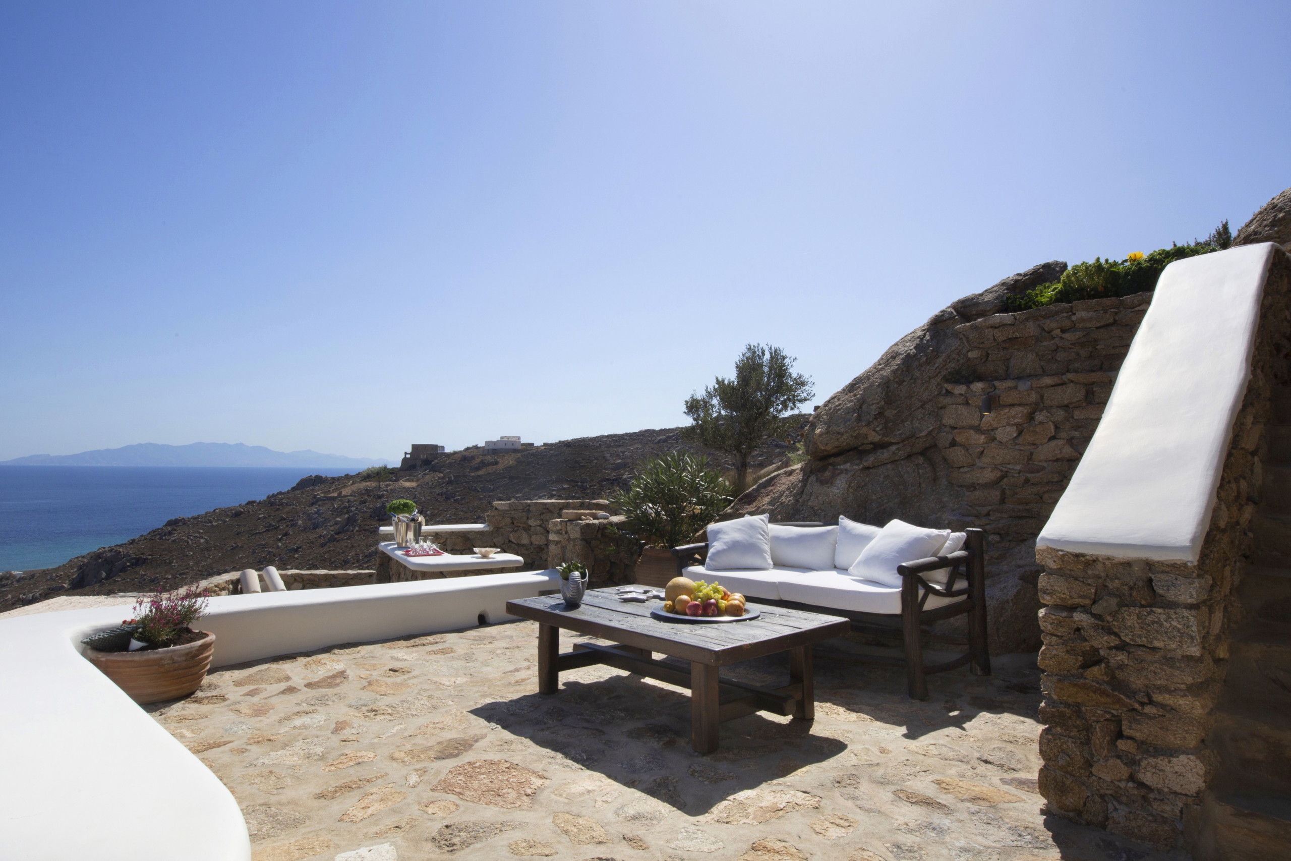 Perched on a hilltop with an encompassing and commanding view, you will relax by the pool, take pleasure in the outdoor bar or on one of its distinctively tiered verandas, delight in open-air dining, while enjoying discreet living areas in total privacy; then head out and enjoy all that Mykonos has to offer, like astounding beaches, Cycladic architecture and all facets of summer island life.