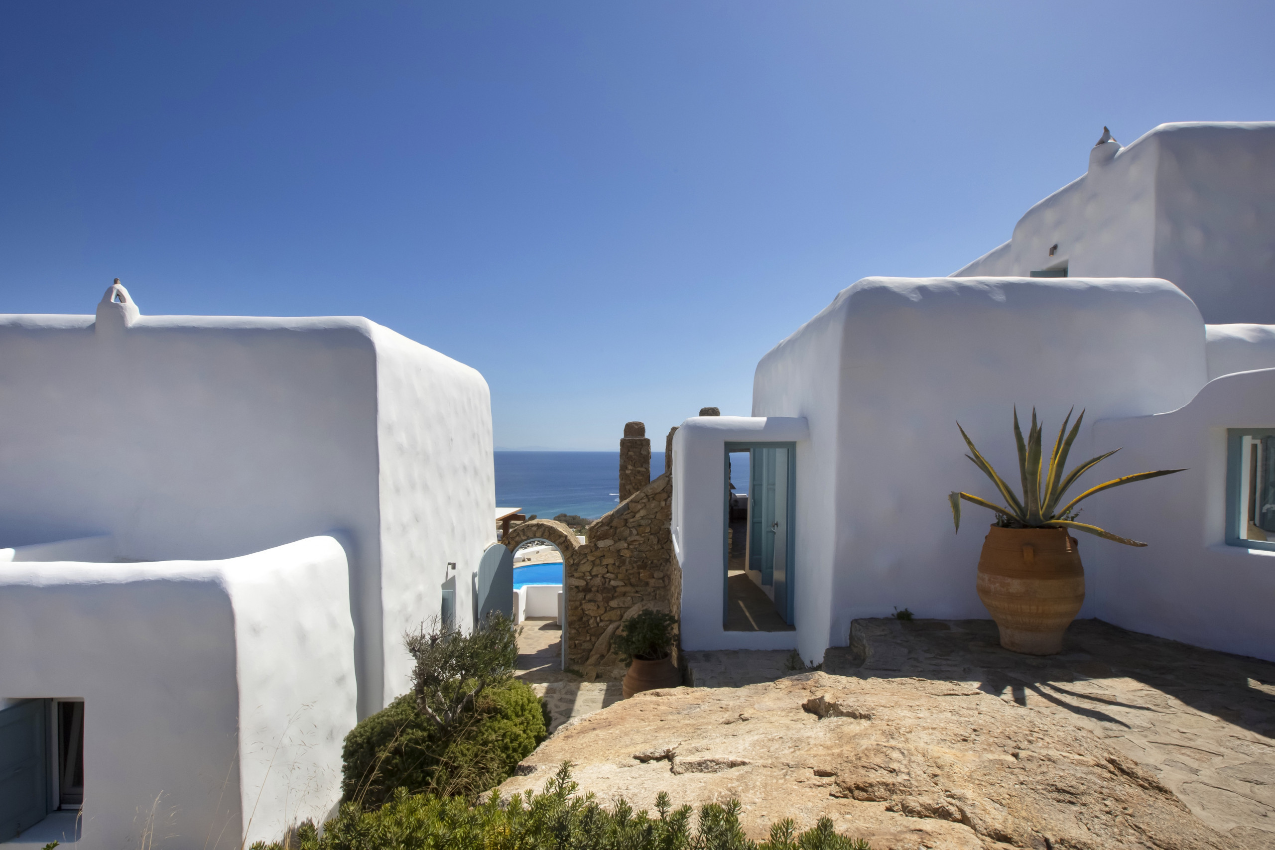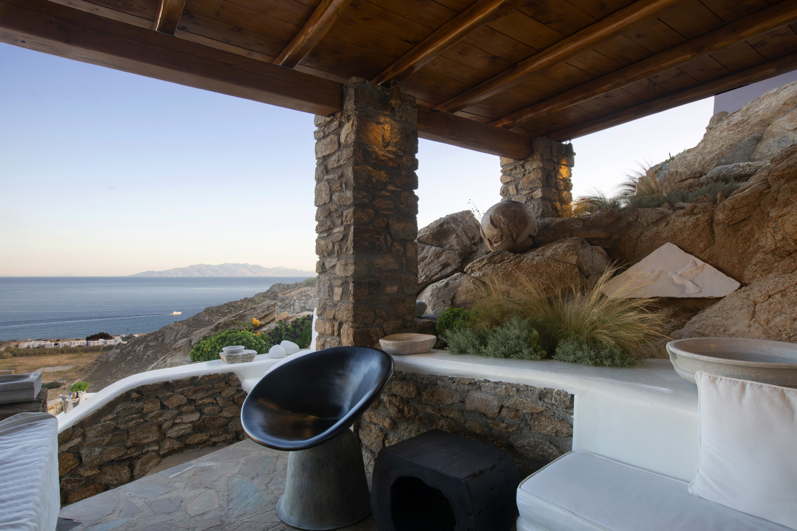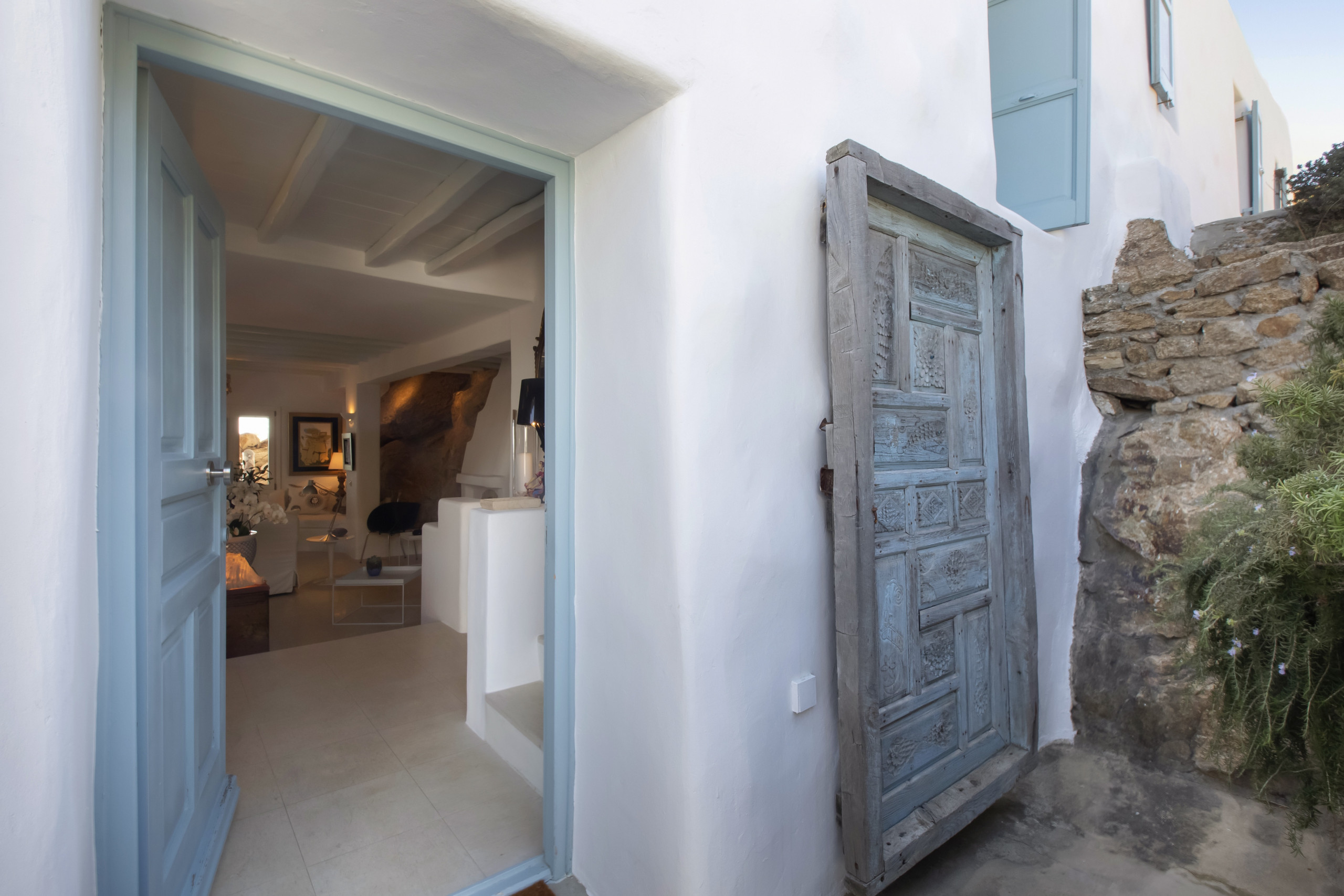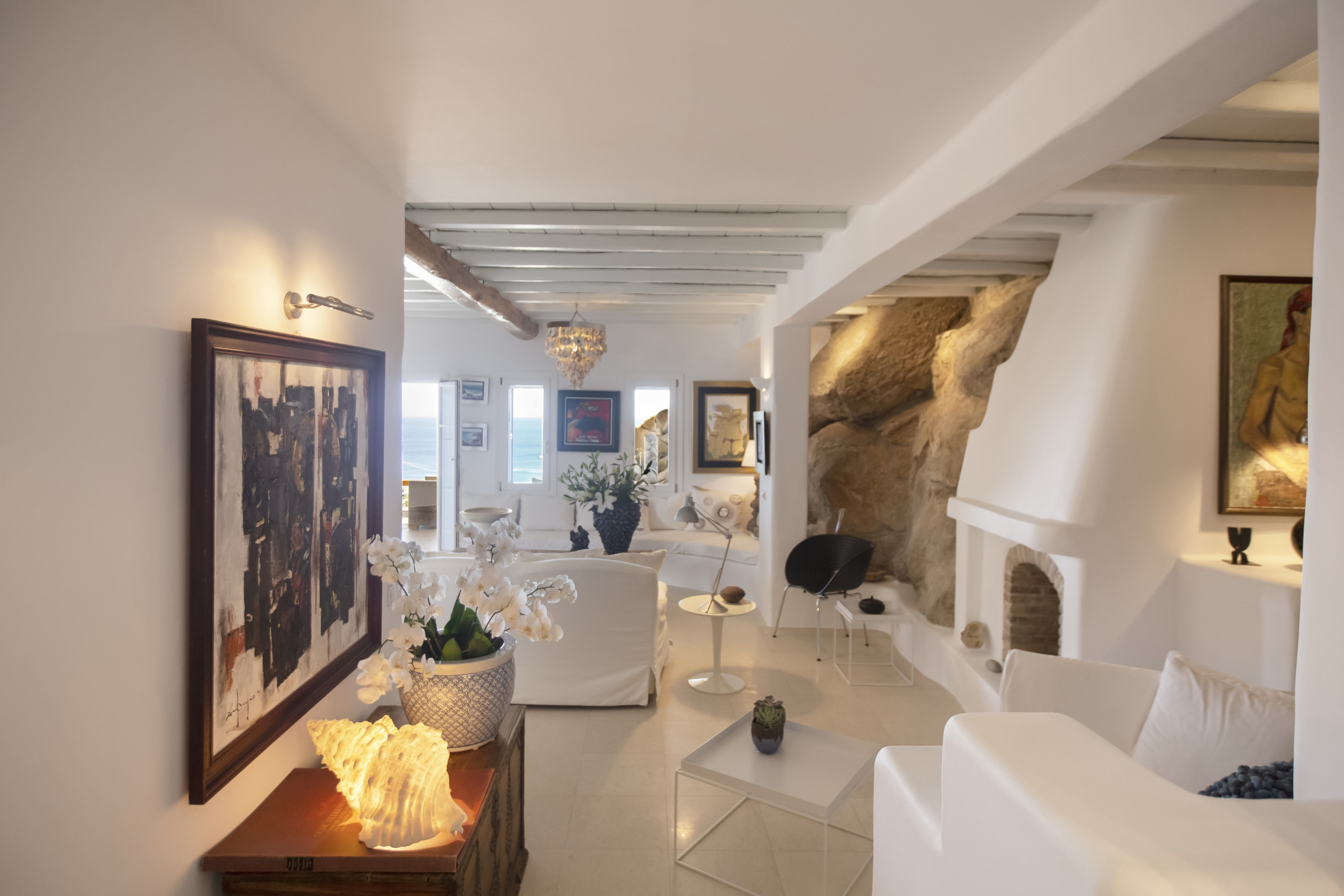 Mykonos itself forms part of the luxury Villa Aerie, a unique residence built among the island’s distinguishing Cycladic rocks and looking out over the Aegean’s tranquil waters, which is literally built into the granite rockface of the island. Villa Aerie’s eclectic interiors, staggering panoramic views, superb guest house, and distinctive pool & outdoor areas render this stunningly picturesque home an idyllic luxury destination in its own right.