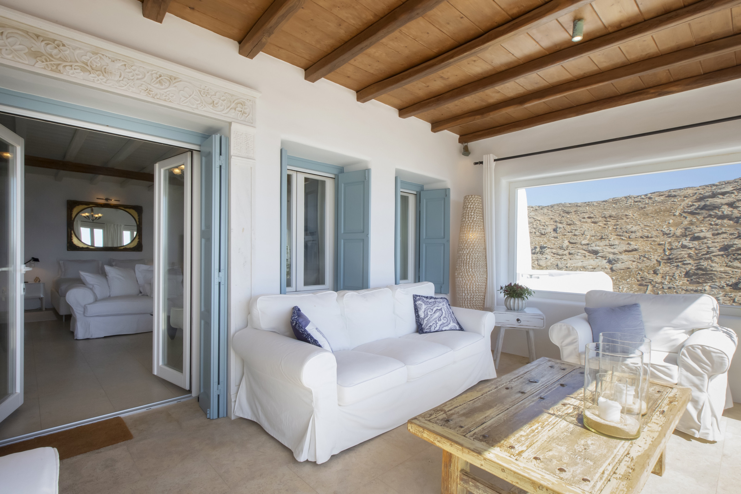 Located on the southern part of the island, above Agrari beach, the villa offers seclusion as well as quick access to an excellent beach. Elia, Super Paradise and Paradise beaches are all nearby. The Airport and the town of Ano Mera are a 7-minute drive from the Villa.