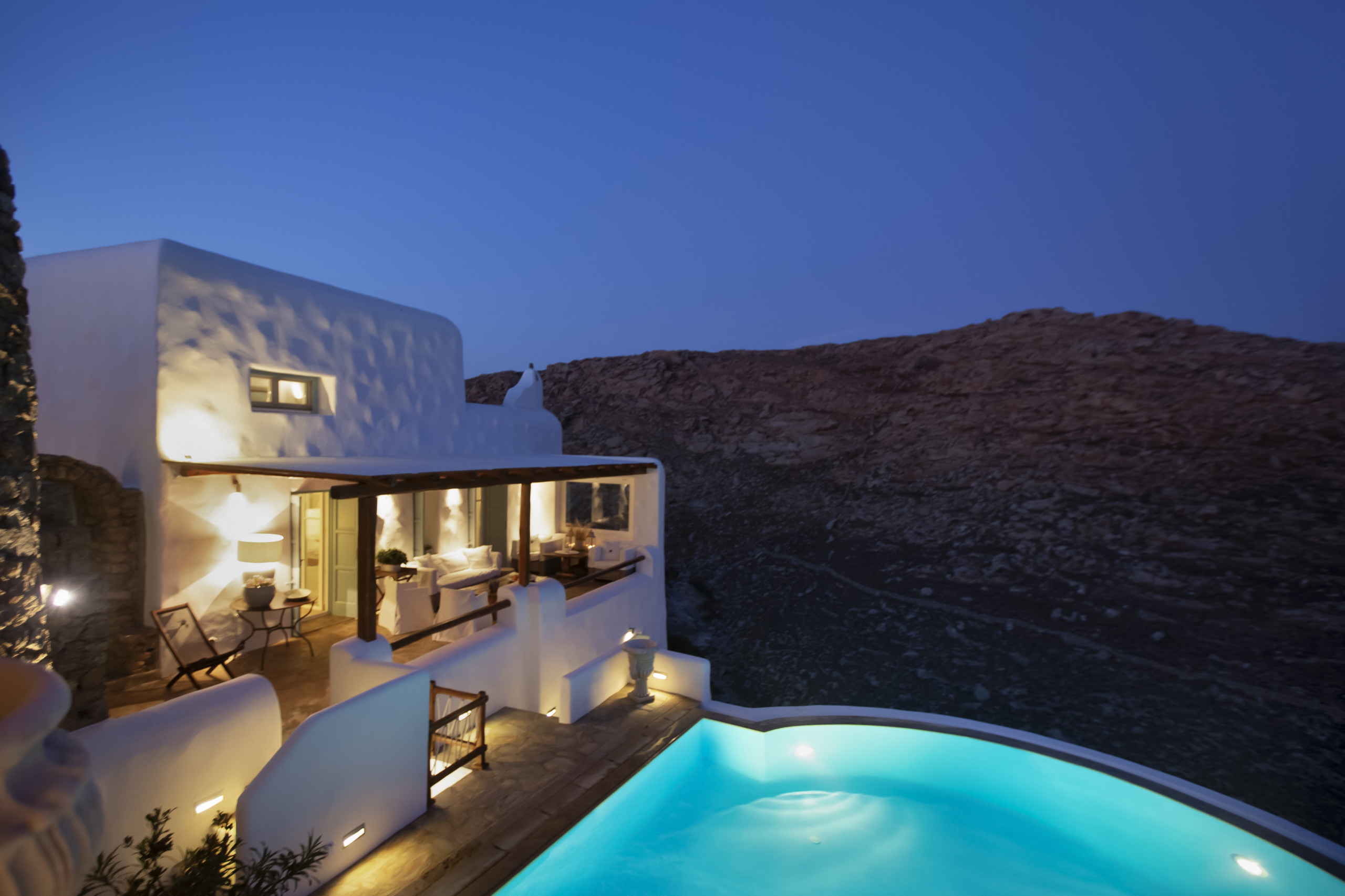 In a nutshell: Villa Aerie, while offering a tranquil setting, is perfectly situated and poised to offer the ultimate amount of choice in planning out your day in Mykonos. You decide between enjoying a relaxing evening at home or on one of the many easily accessible island settings, or experiencing Mykonos’ vibrant restaurant scene & pulsating nightlife, famous the world over, which is a mere 15 minutes away in Mykonos Town.
