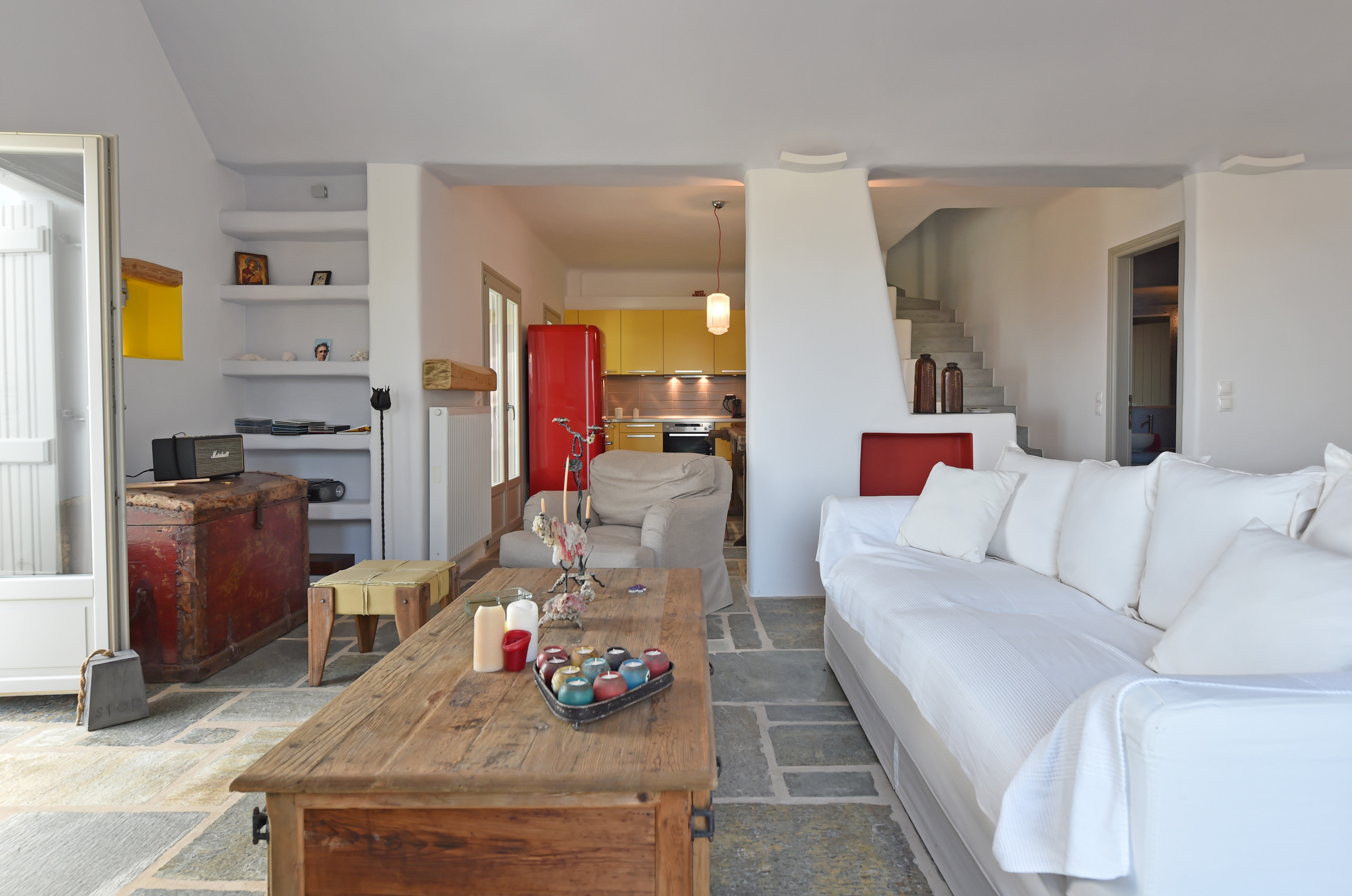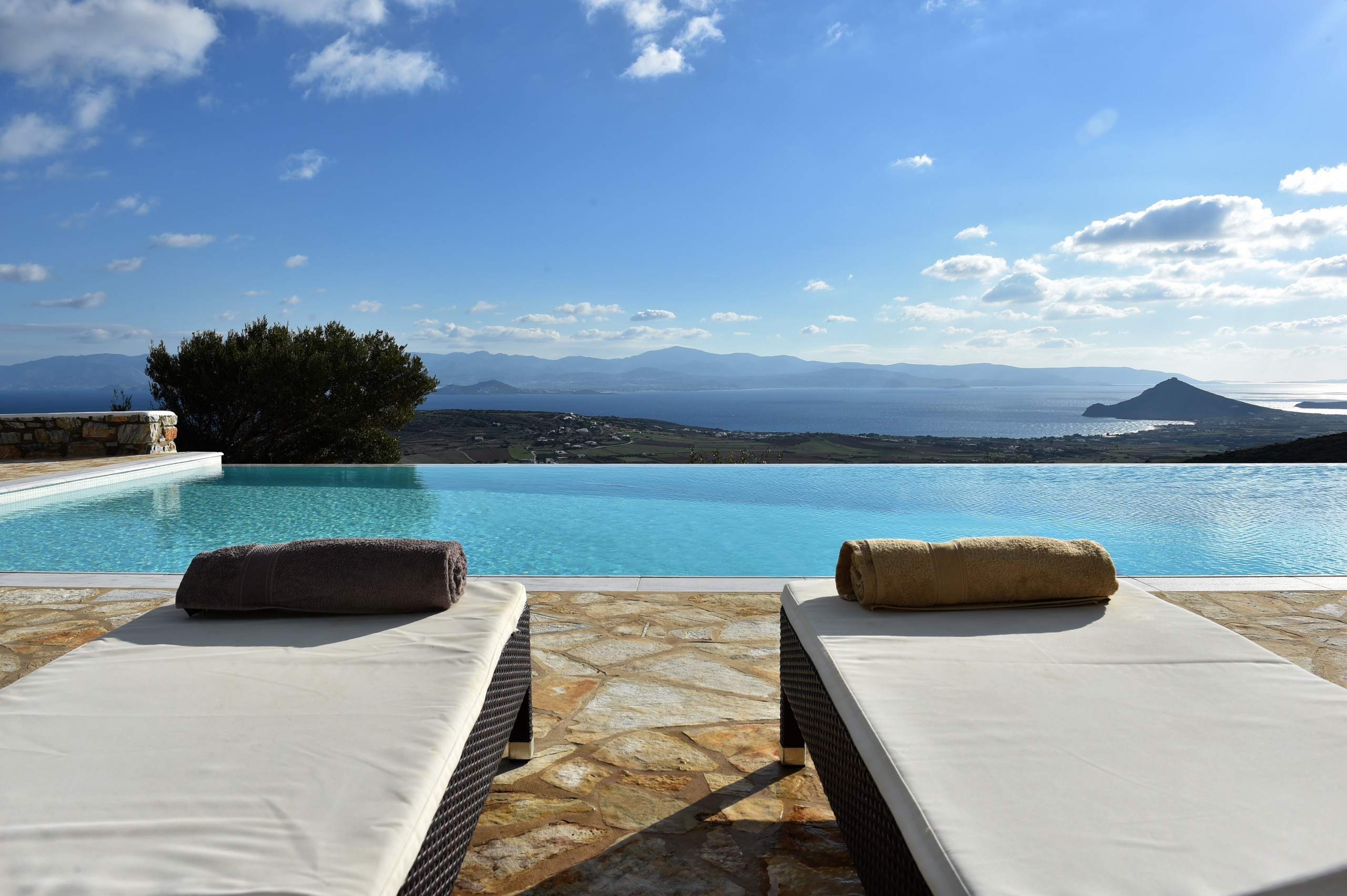 Explore Paros' numerous beaches, all within easy reach from Villa Acqua, the closest just 10 minutes away. The nearby listed traditional settlement of Isterni adds to the local charm. Villa Acqua guarantees privacy on the hillside, accompanied only by its sister villas, Villa Moonlight and Villa Oliviers, all available for rental by large groups.