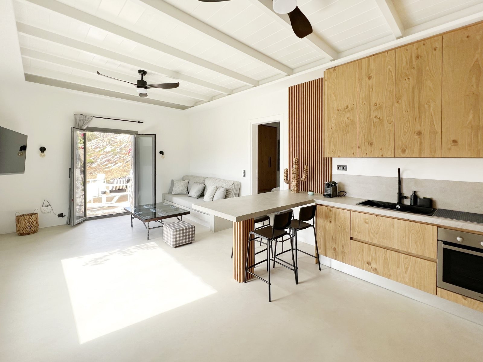 Nestled on the gentle slopes of a hill in the sought-after Kolimbithres area, Kolimbithres Rock Villa represents an embodiment of refined design and understated luxury. This splendid 310m2 villa seamlessly integrates with Paros' unique landscape, showcasing a delightful blend of rocky formations and lush greenery.