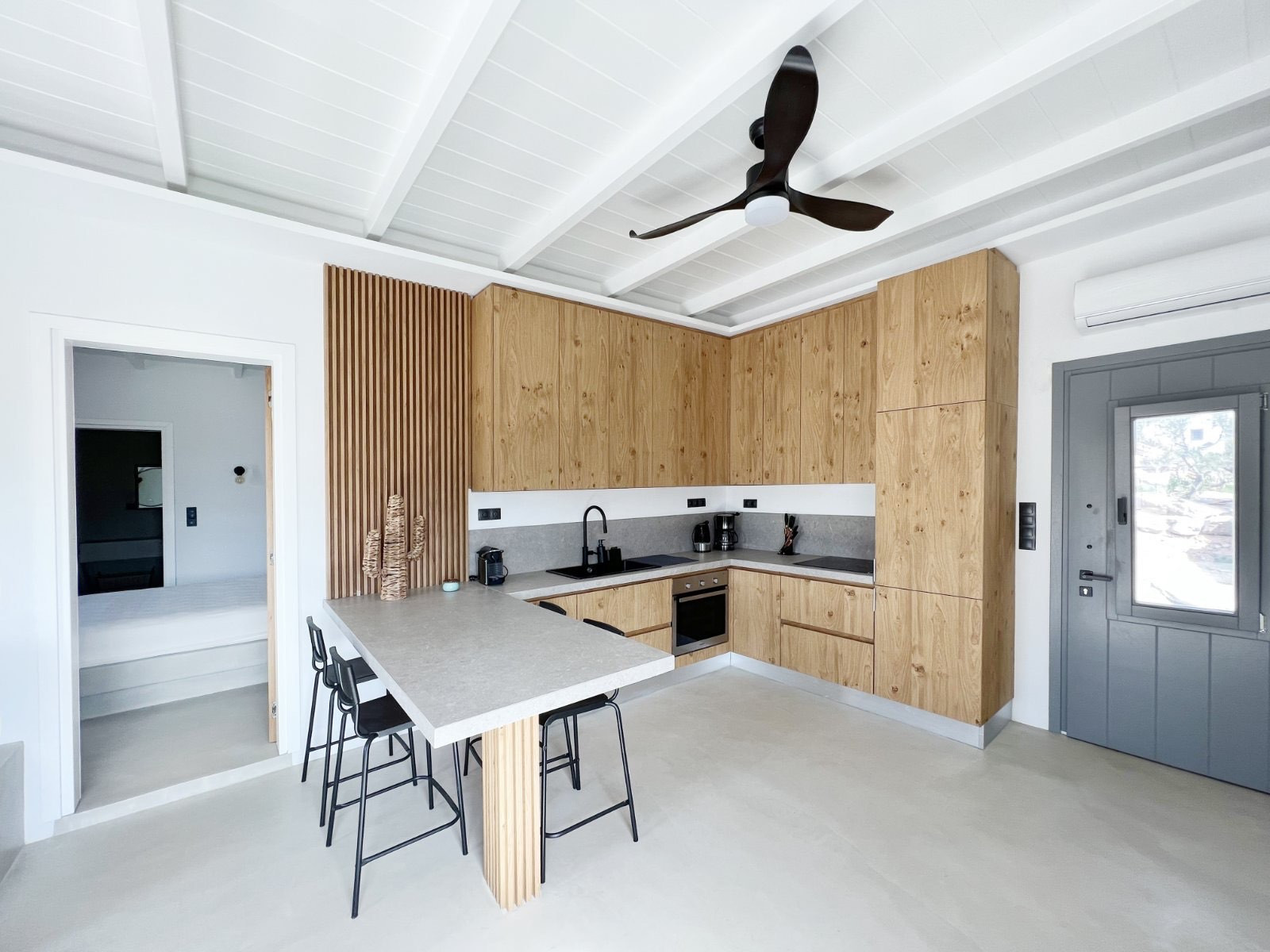 Comprising two units, the main house and a guest house, both rival each other in exclusivity, style, and modern conveniences. The main mansion features a fully-equipped kitchen for culinary explorations, a luxurious living room with a high-end sound system providing direct access to the outdoor pool area through balcony doors overlooking the mesmerizing Aegean Sea.