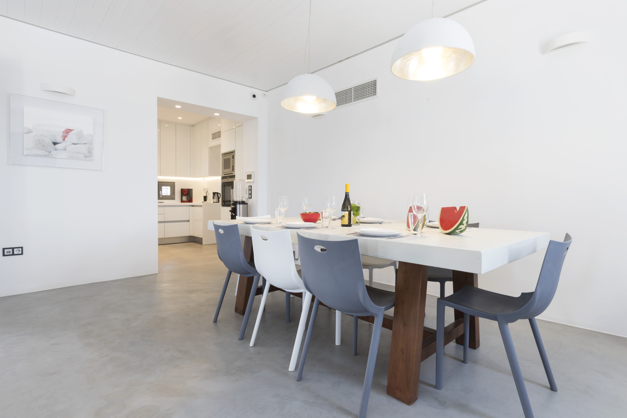 An elegant indoor dining area for eight complements the alfresco dining options, offering plenty of opportunities to unwind and enjoy delicious meals.