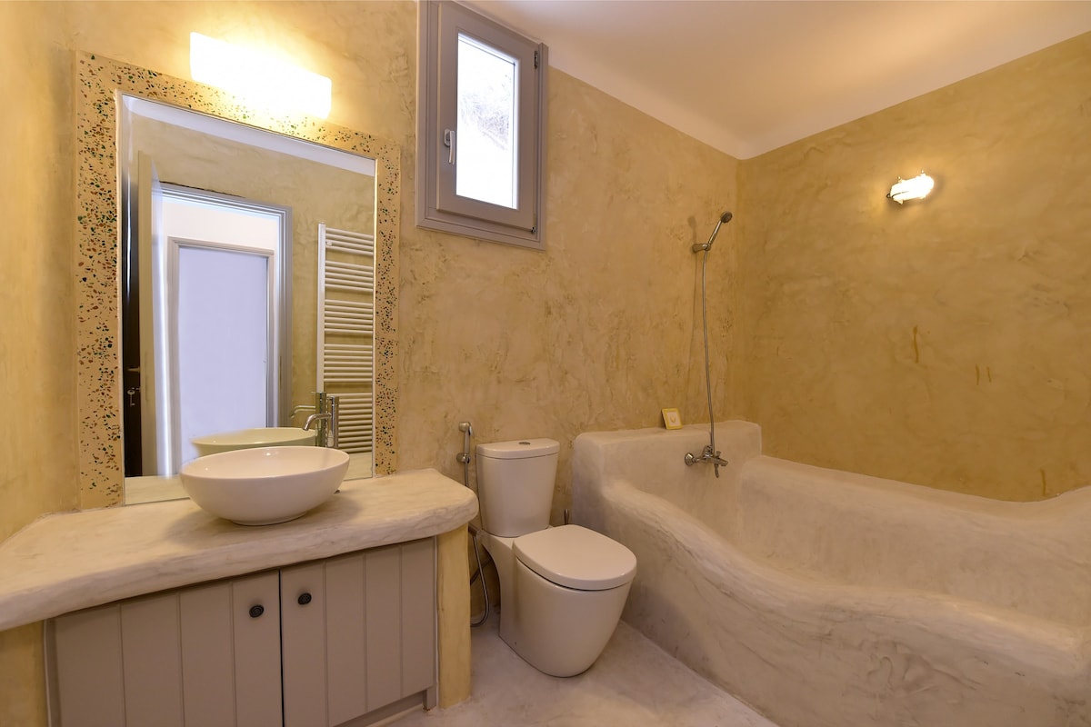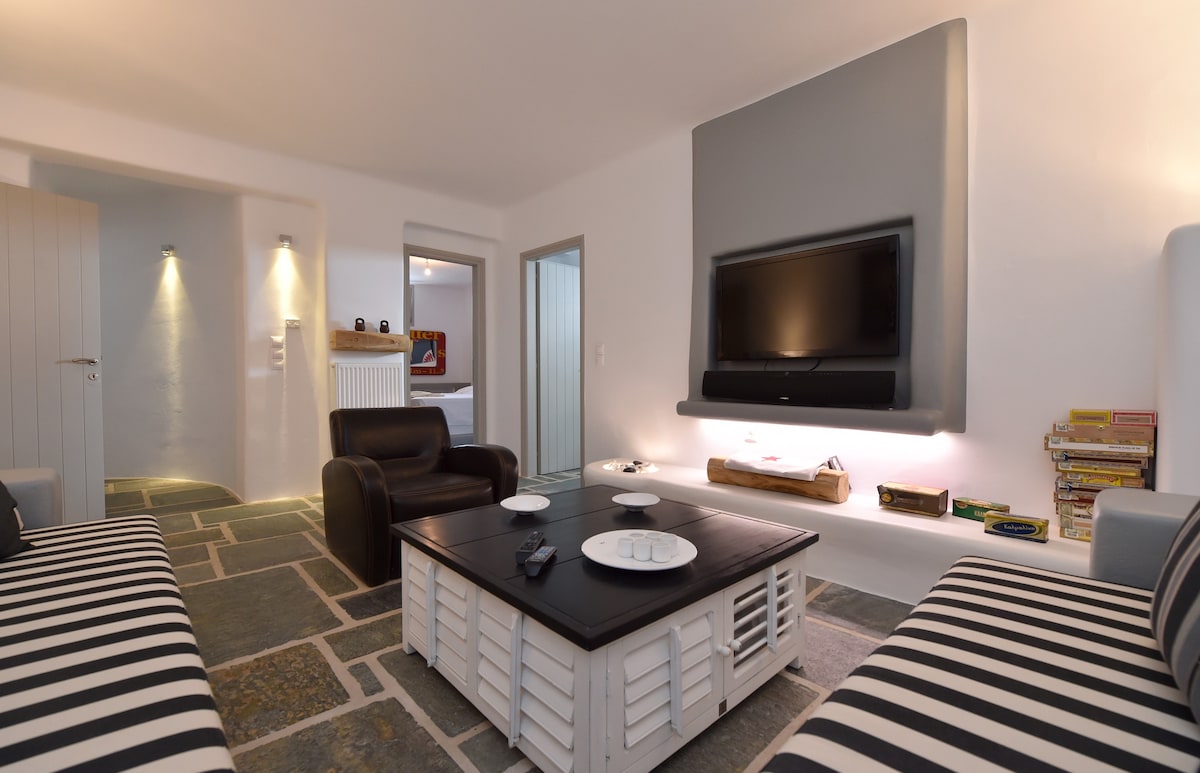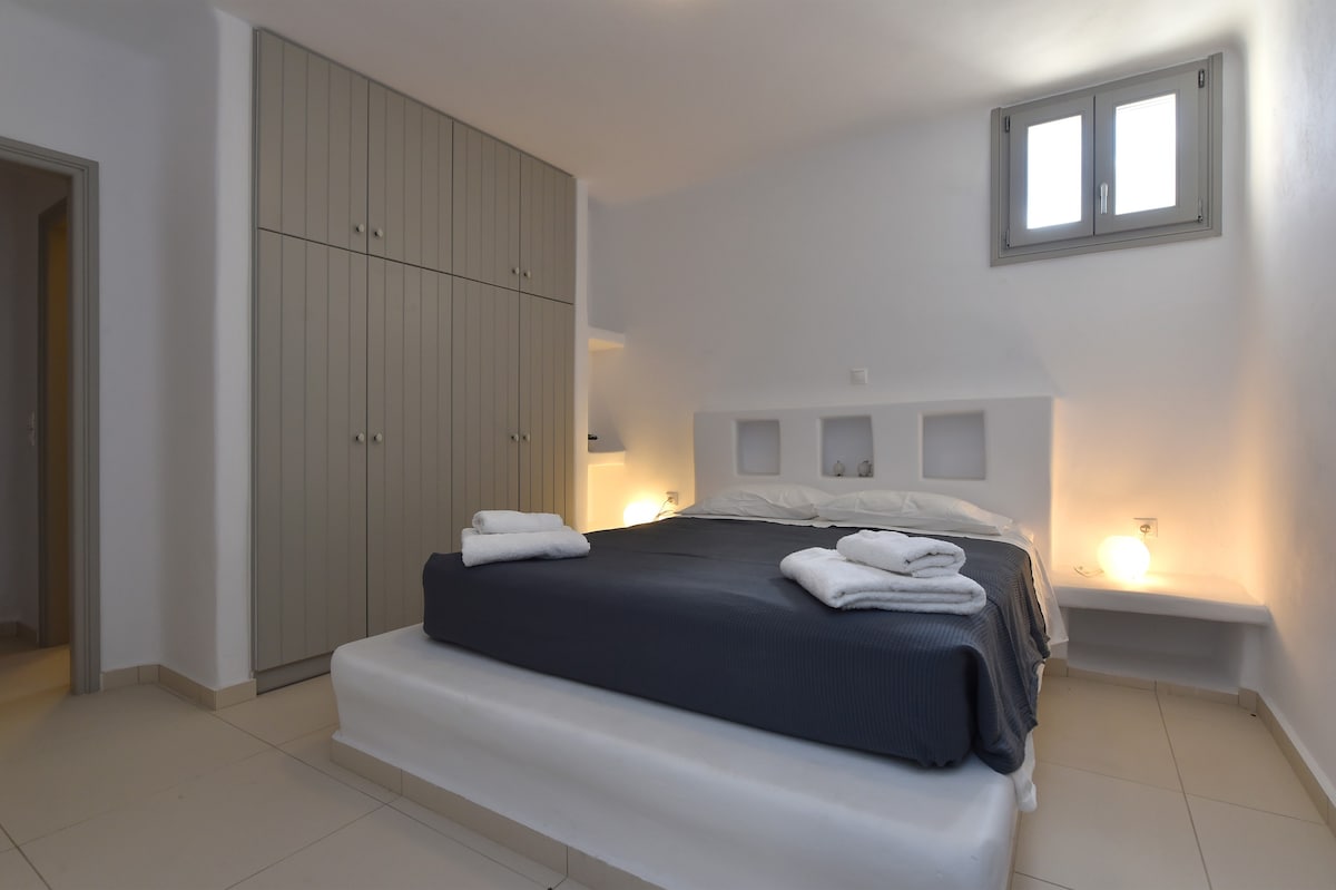 The villas are around 30’ away from the airport and just an 2' drive from the town of Naousa, with its traditional Cycladic cobbled streets, multitude of bars, restaurants and shops.