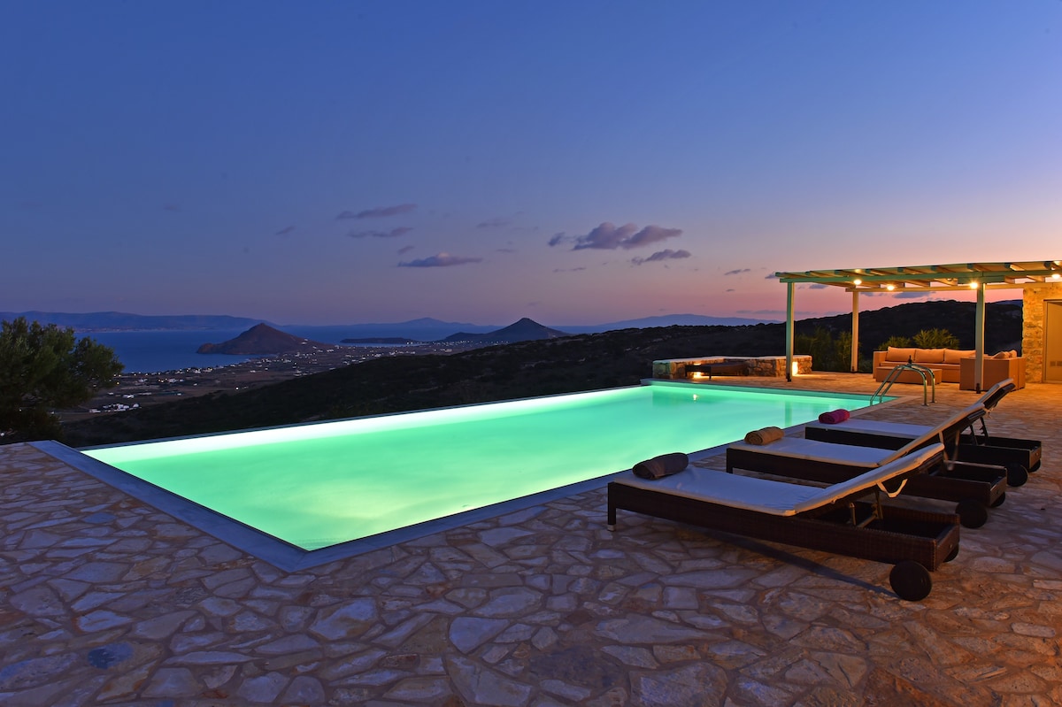 Prepare for the holiday of a lifetime in this exquisite 3 villa complex, carved on the hillside, and enjoying use of an infinity pool with panoramic views over the Aegean Sea. These are stunning and very exclusive homes, ideal for those looking for a secluded and tranquil spot and even has its own helipad! Your group of up to 26 people will feel completely in harmony with the villa’s natural surroundings and stylish, minimal interiors.