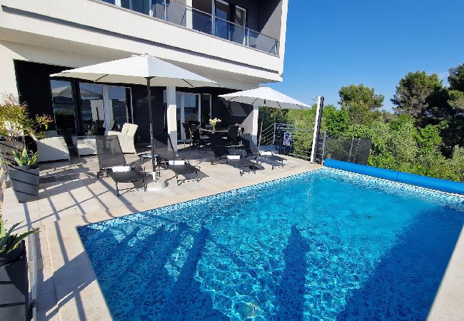 Villa Pura Vida is situated on a wonderful location in Pomer, with sea view from every room.