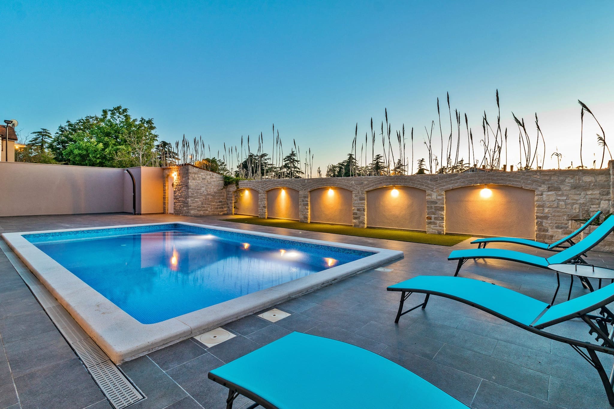 Guests have access to a private illuminated swimming pool, sun deck with sun loungers, outdoor dining area and a grill/BBQ.