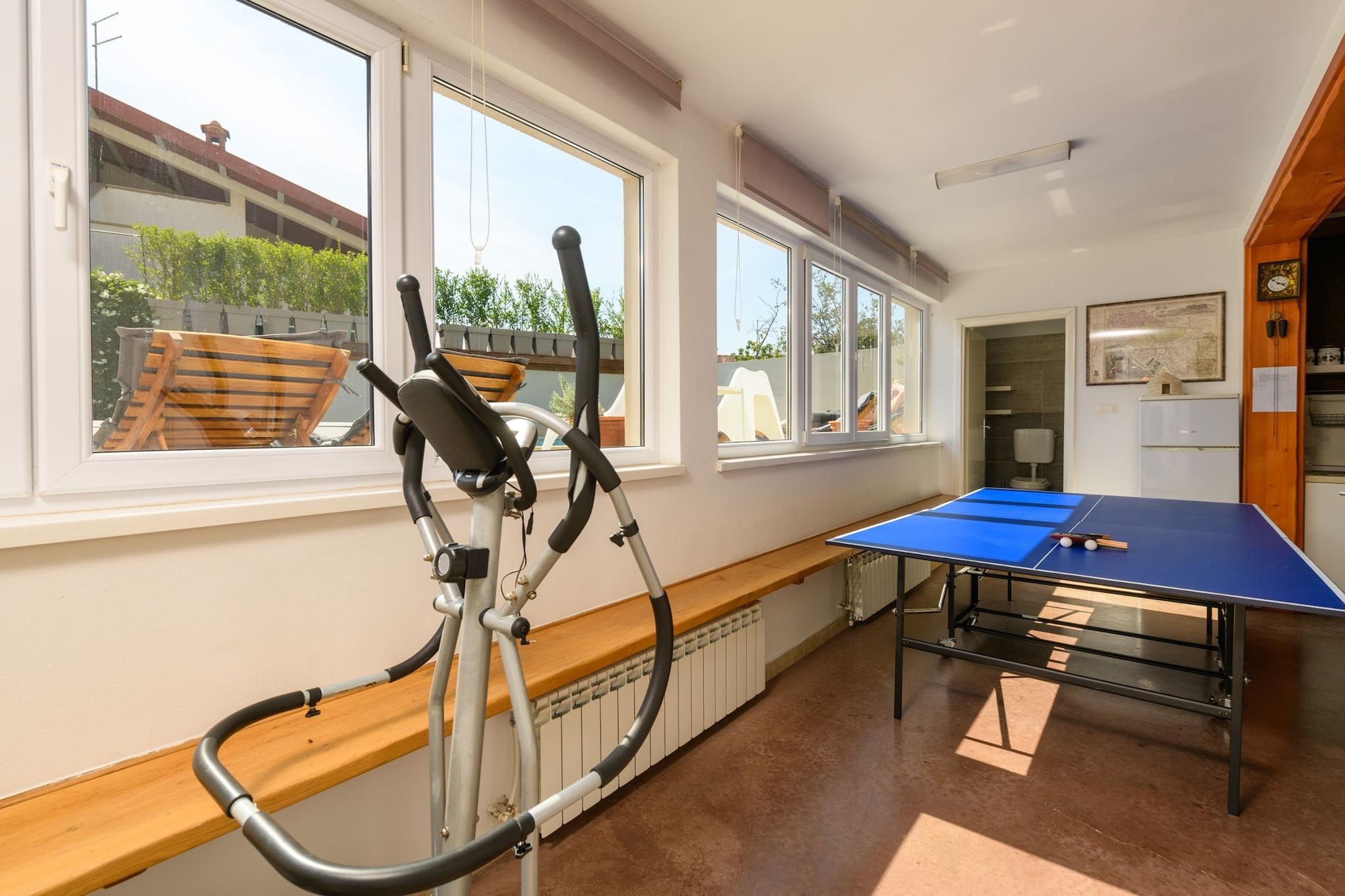 Traditional Istrian room where guests can relax and prepare meals is located on ground floor. It contains dining area, BBQ/fireplace, fitness equipment, table tennis and darts.