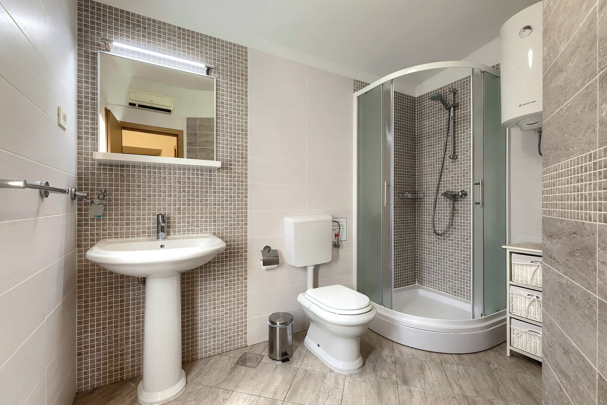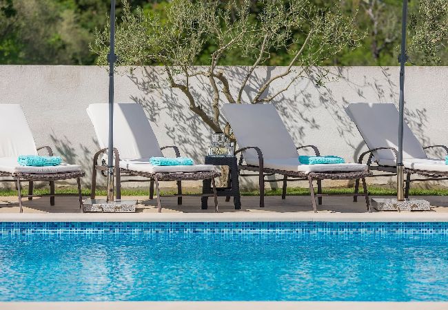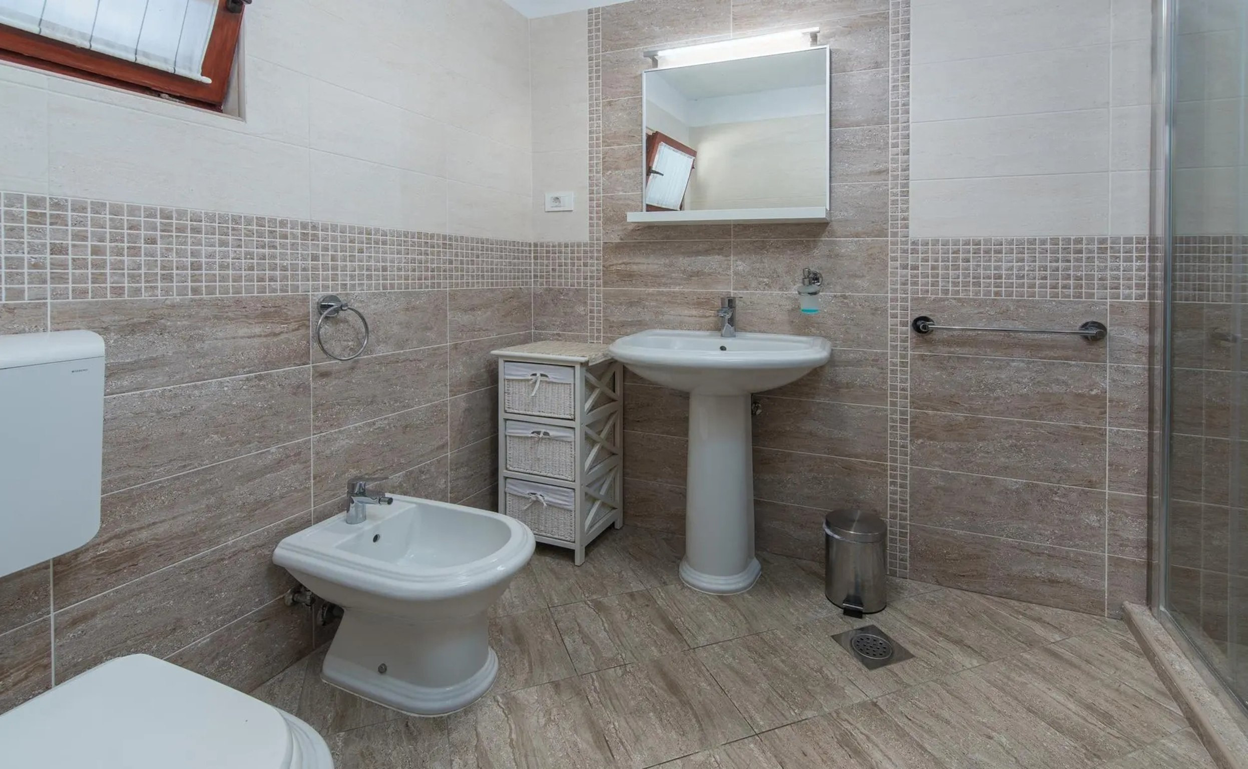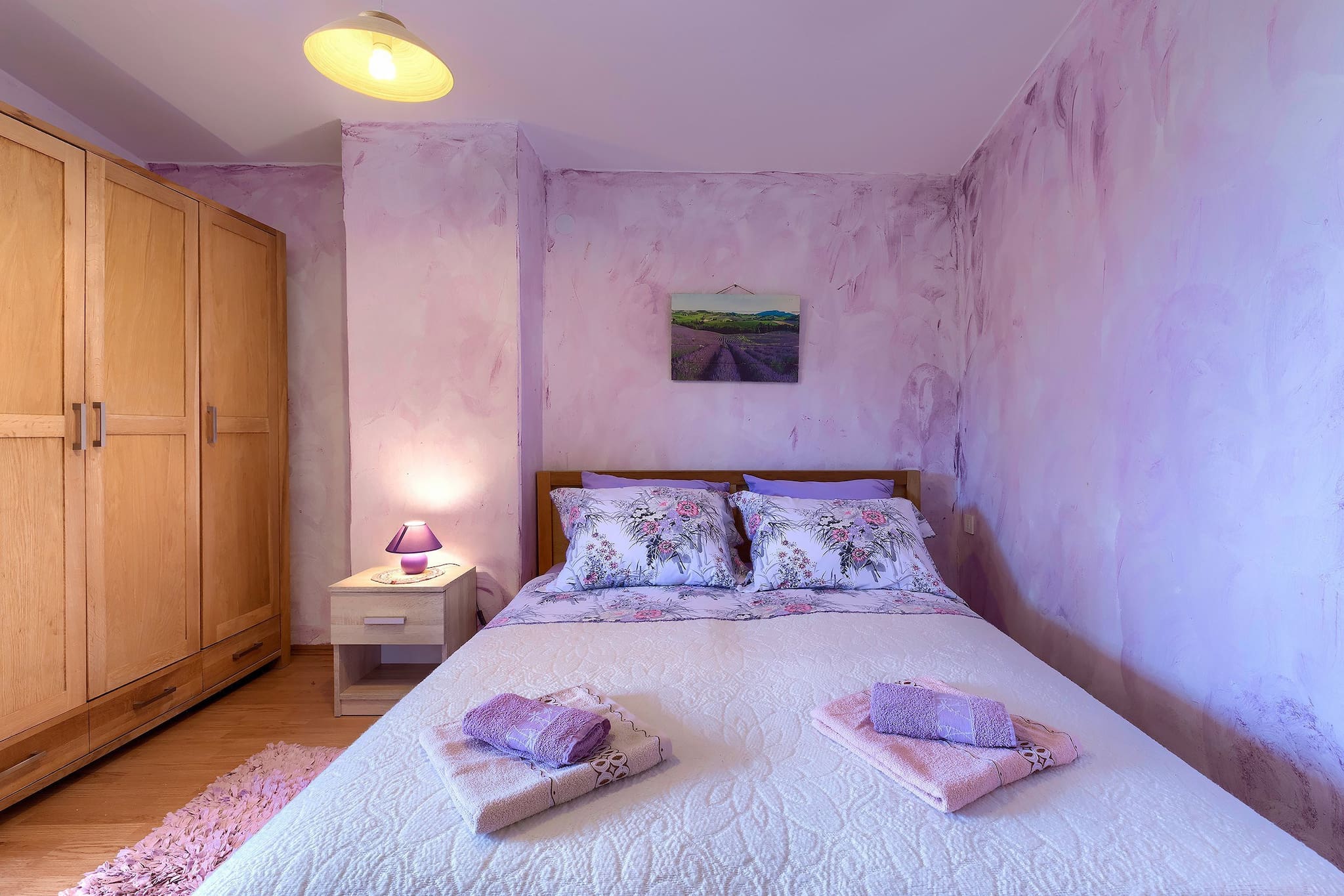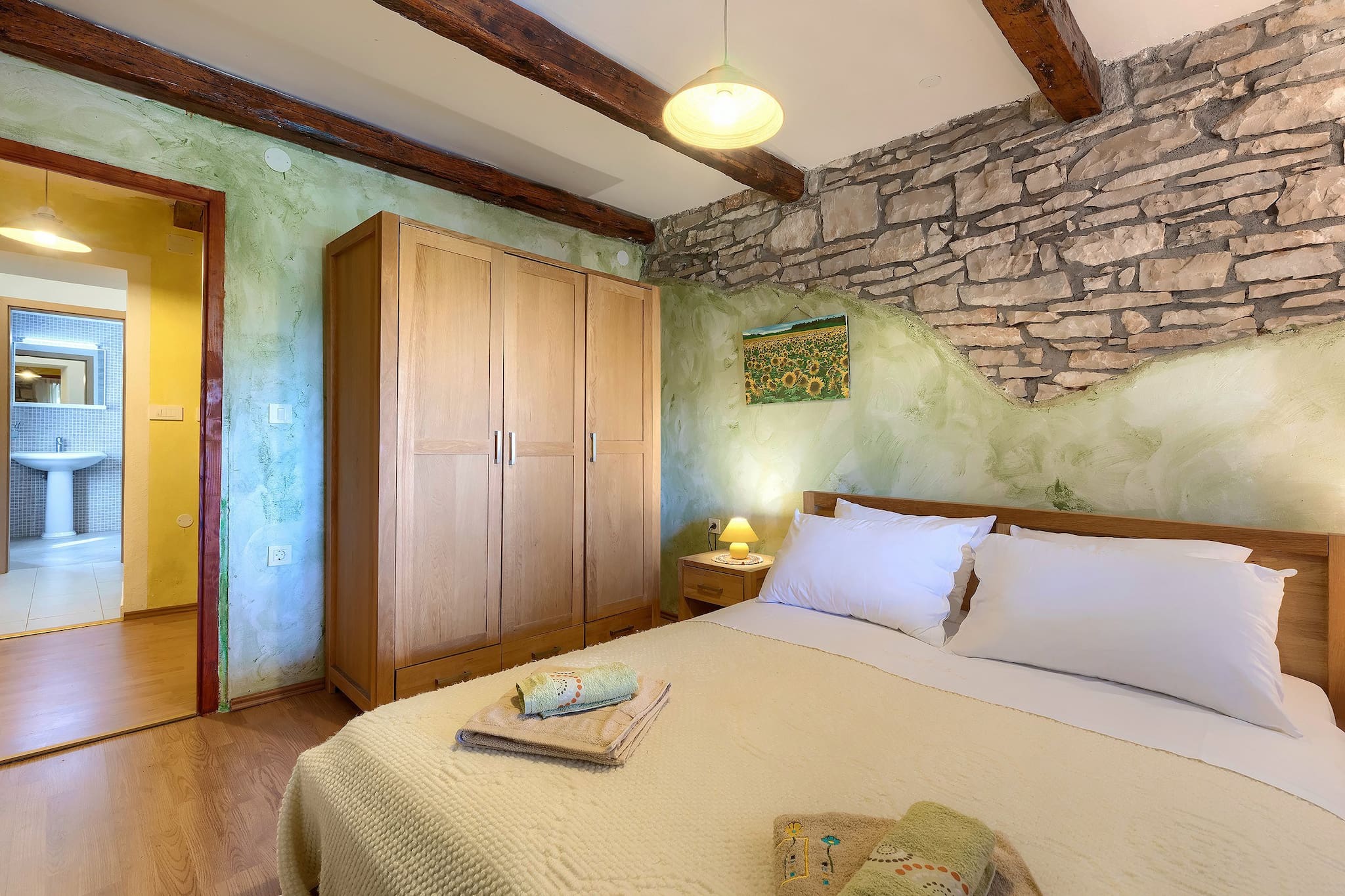 Villa Prisedi, features extremely nice rustic interior and exterior design. Guests can enjoy many additional contents, such as an: outdoor swimming pool, outdoor heated shower, entertainment room with table soccer, darts, PS4 console, fireplace grill on a roofed terrace, free Wi-fi, air-conditioning and free parking for three vehicles. Children's swing and climber are located in the garden.