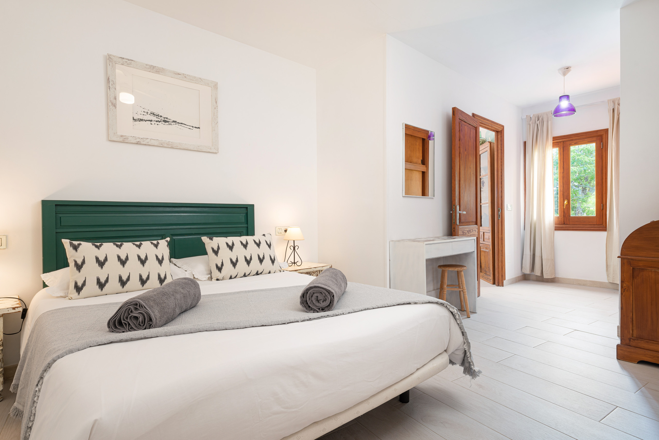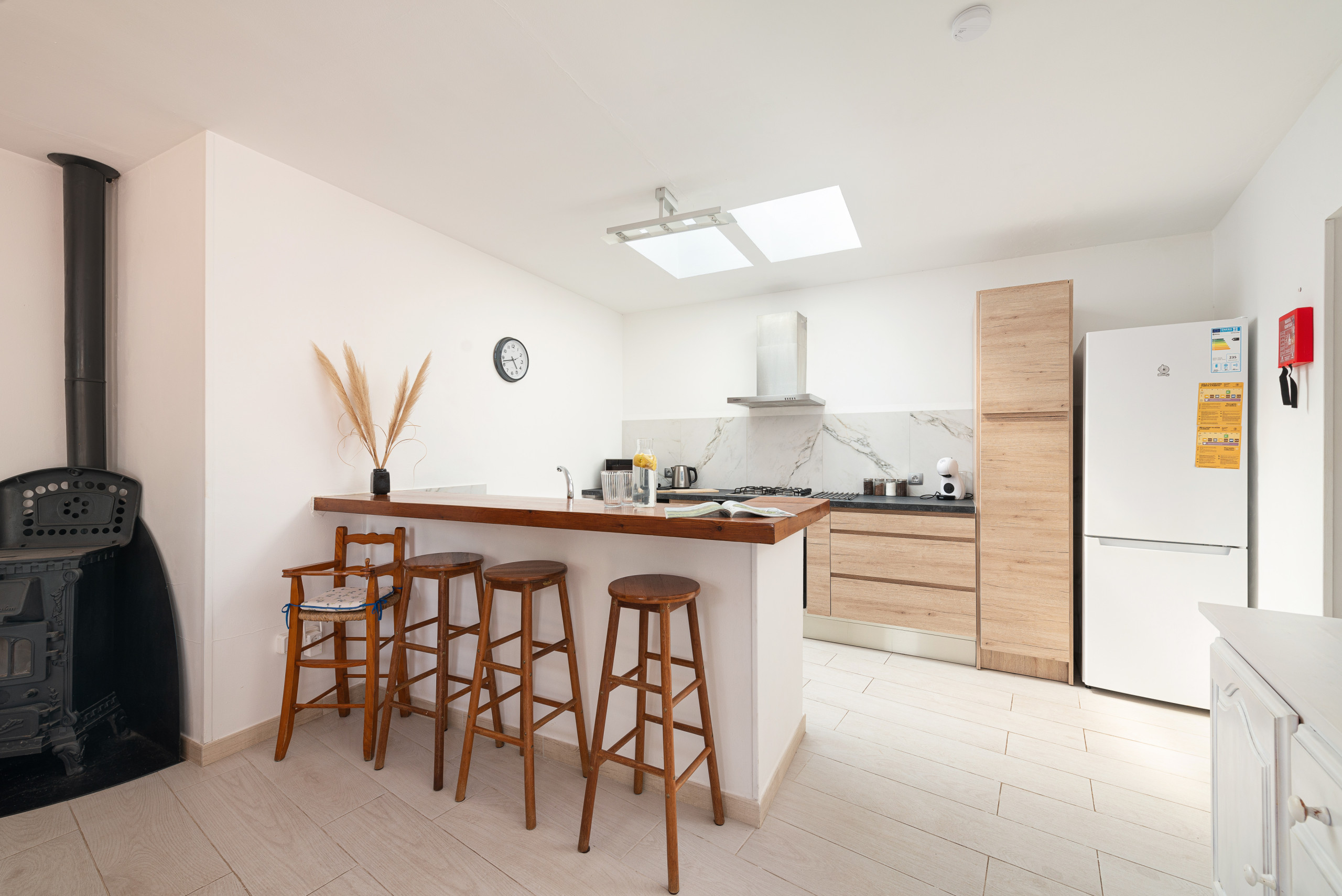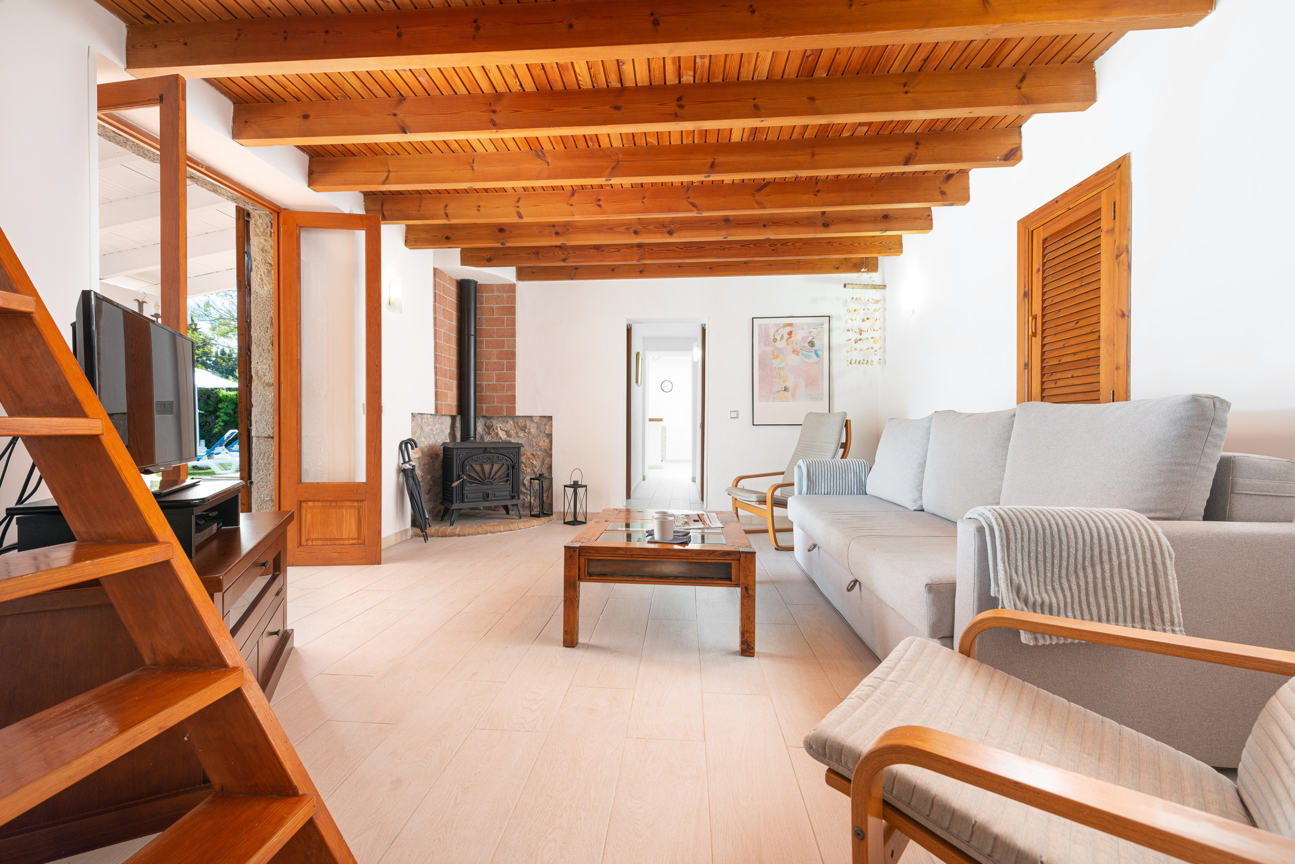 Beautiful holiday home located in the residential area of Crestatx, 2.5 km from the town of Sa Pobla, where you can enjoy its famous tapas in its bars and restaurants. The main entrance leads directly to the living room, from where you can access the first floor of the house via some stairs, where there is a spacious room with sofas that can be used as a games room or living area. The kitchen is fully equipped and integrated with the dining room. The bedrooms are located on opposite sides of the house, one with a double bed and en-suite bathroom and the other with two single beds. There is also a second full bathroom. The 8 x 4 metre swimming pool is surrounded by a beautiful and spacious garden where you can enjoy wonderful sunny days. There is also a covered porch and a barbecue with a dining table for up to 6 people. The beautiful beaches of Puerto Pollensa and Alcudia are about 12 km away, a 15-minute drive.