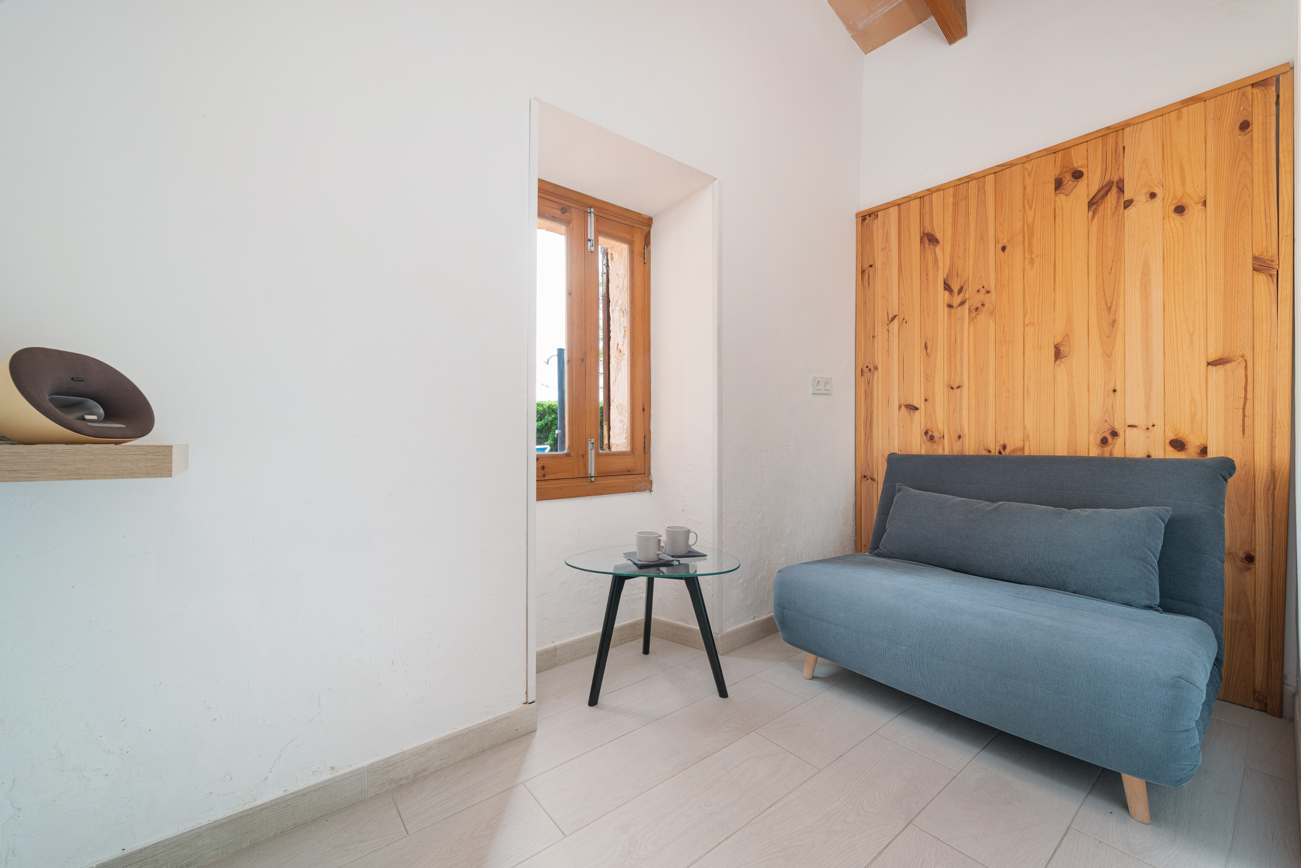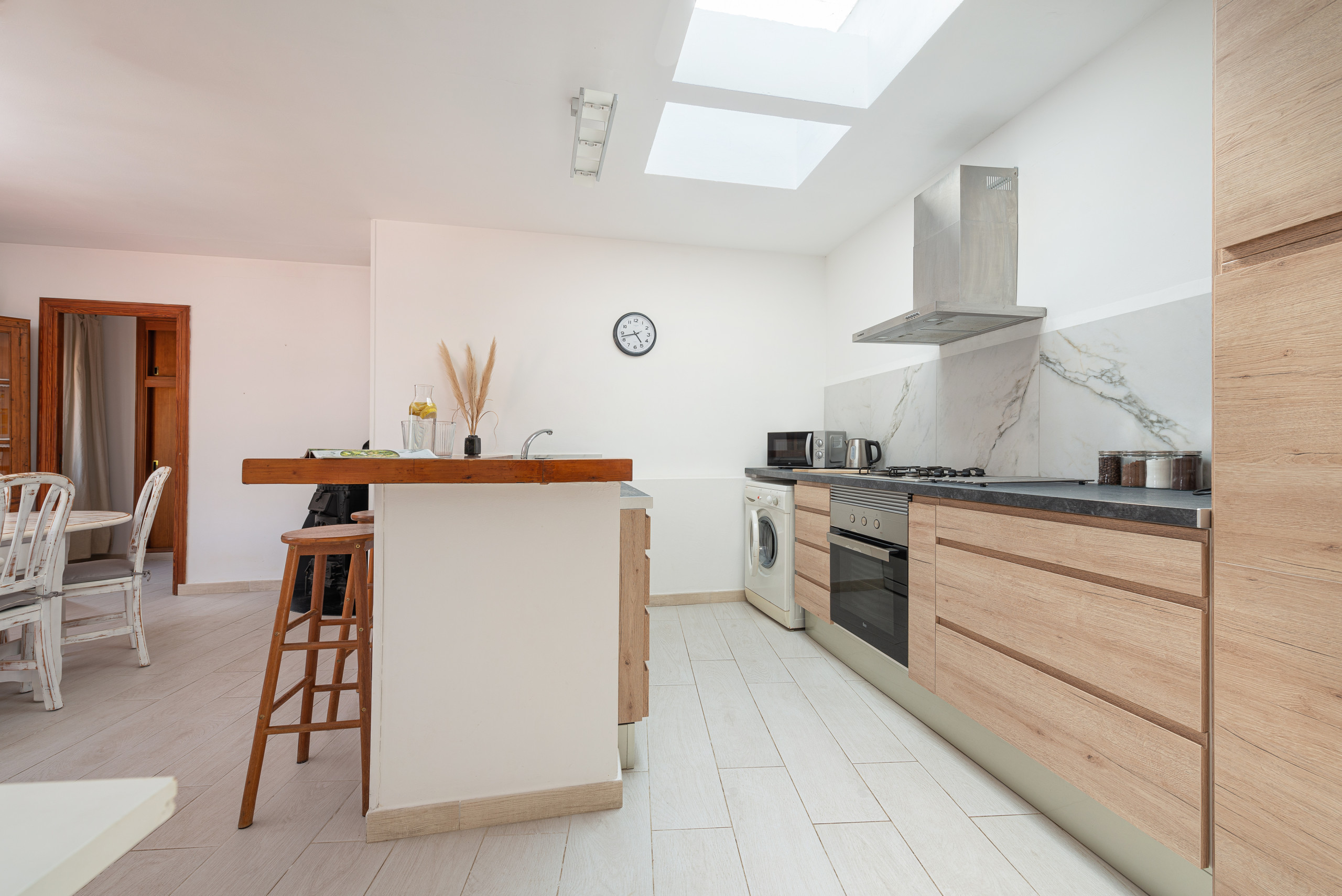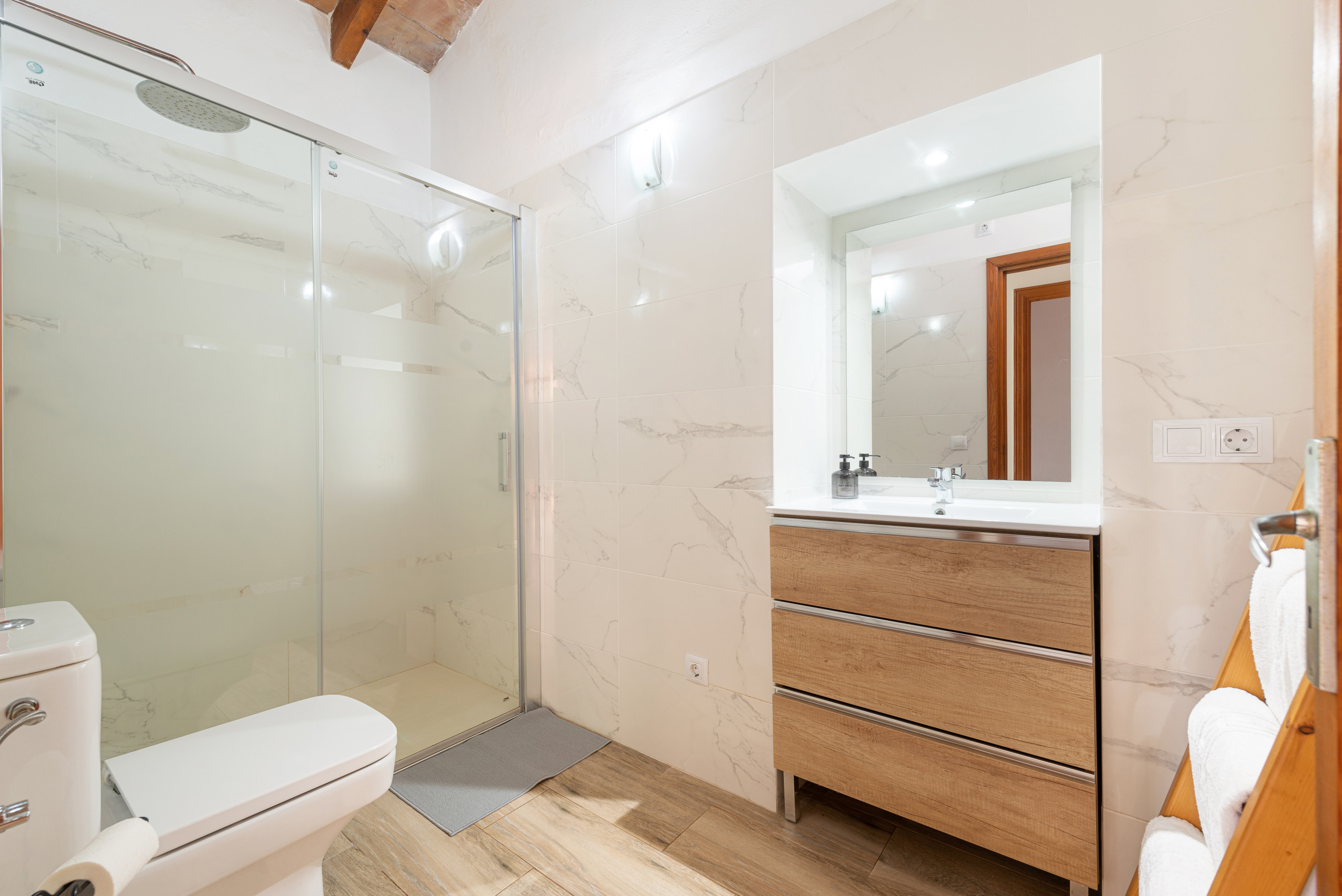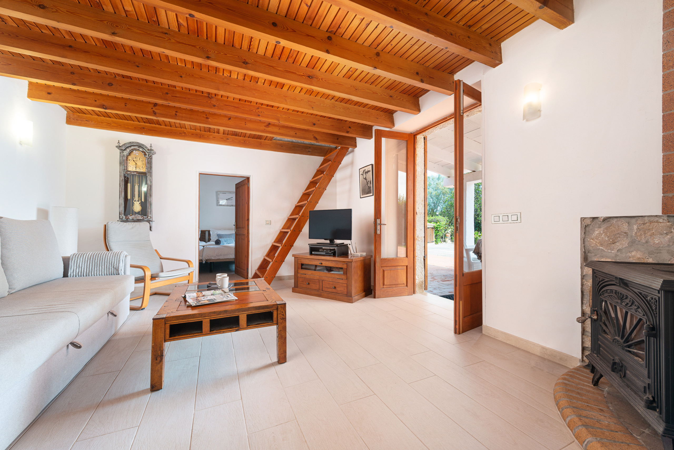 Beautiful holiday home located in the residential area of Crestatx, 2.5 km from the town of Sa Pobla, where you can enjoy its famous tapas in its bars and restaurants. The main entrance leads directly to the living room, from where you can access the first floor of the house via some stairs, where there is a spacious room with sofas that can be used as a games room or living area. The kitchen is fully equipped and integrated with the dining room. The bedrooms are located on opposite sides of the house, one with a double bed and en-suite bathroom and the other with two single beds. There is also a second full bathroom. The 8 x 4 metre swimming pool is surrounded by a beautiful and spacious garden where you can enjoy wonderful sunny days. There is also a covered porch and a barbecue with a dining table for up to 6 people. The beautiful beaches of Puerto Pollensa and Alcudia are about 12 km away, a 15-minute drive.