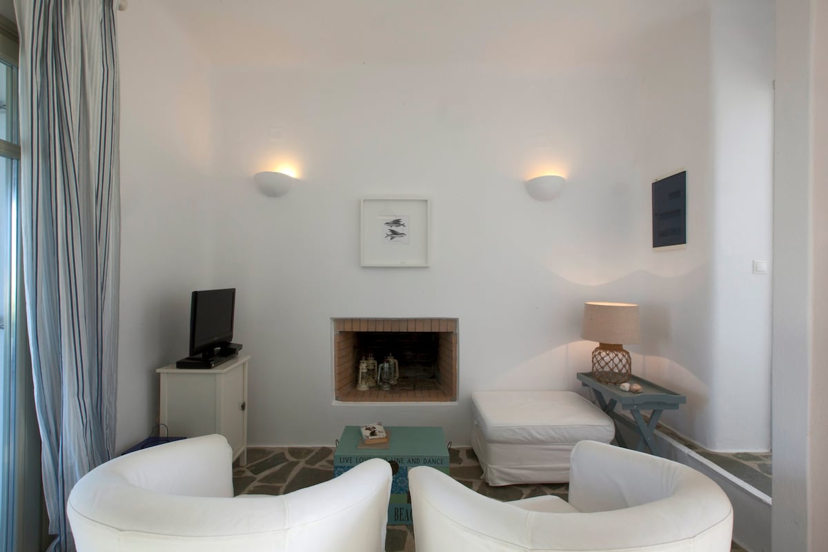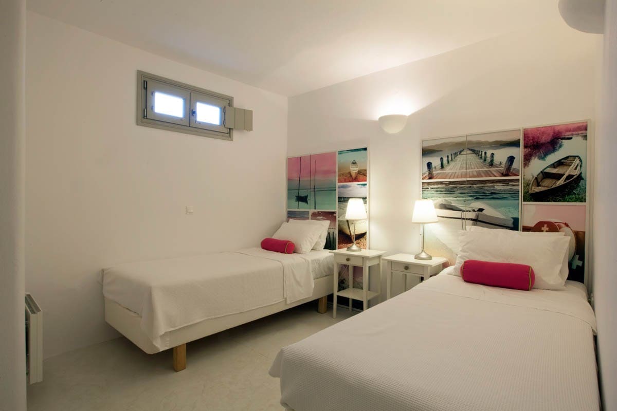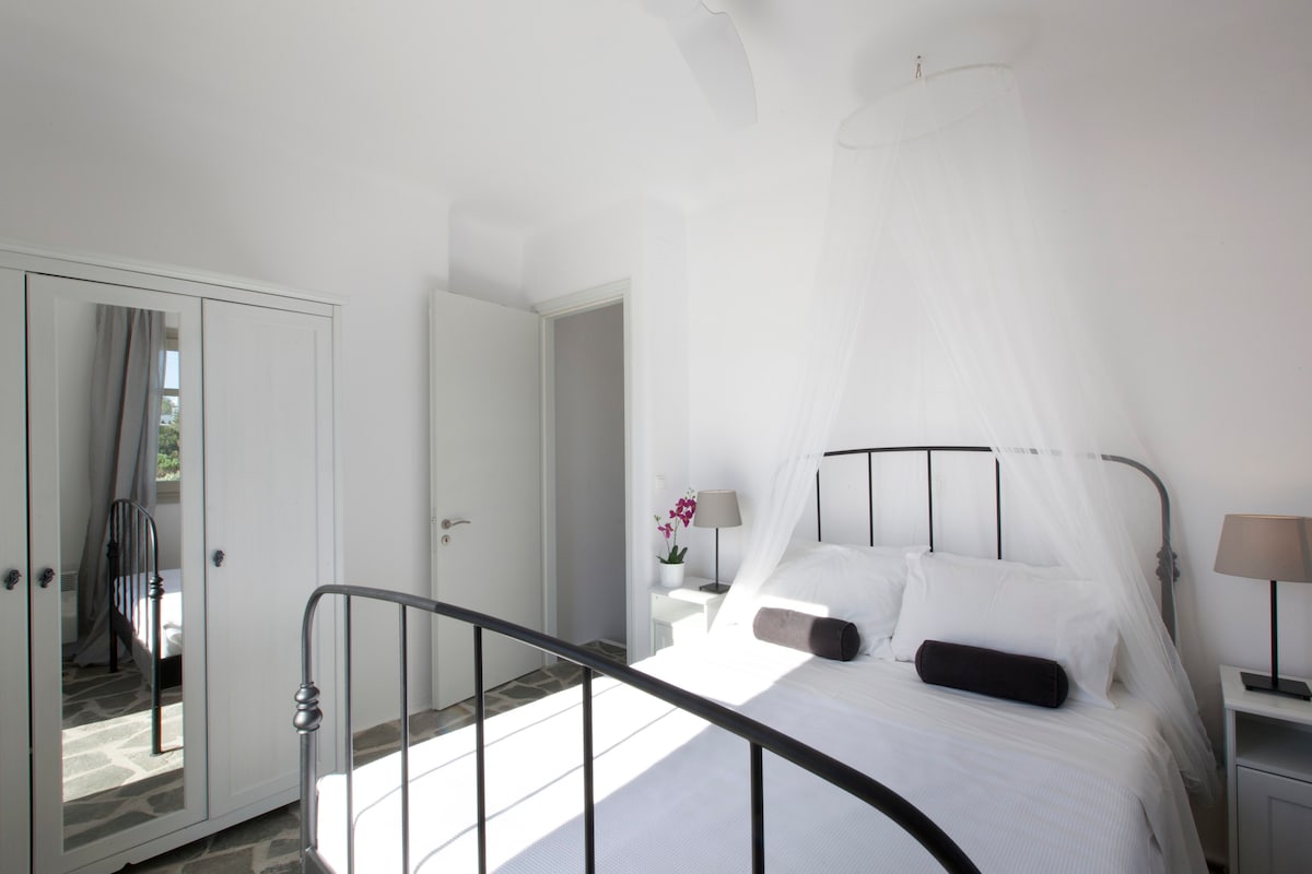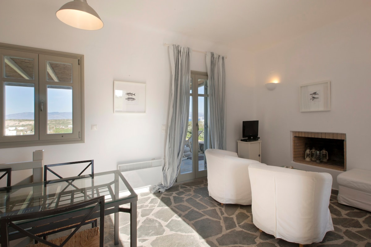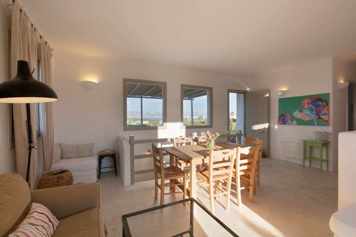 You will be located at the tranquil and exclusive area of Santa Maria in Paros. After a few minutes’ walk, you will be swimming in the beautiful sandy beaches of Santa Maria, possibly the best beach on the island for small children.