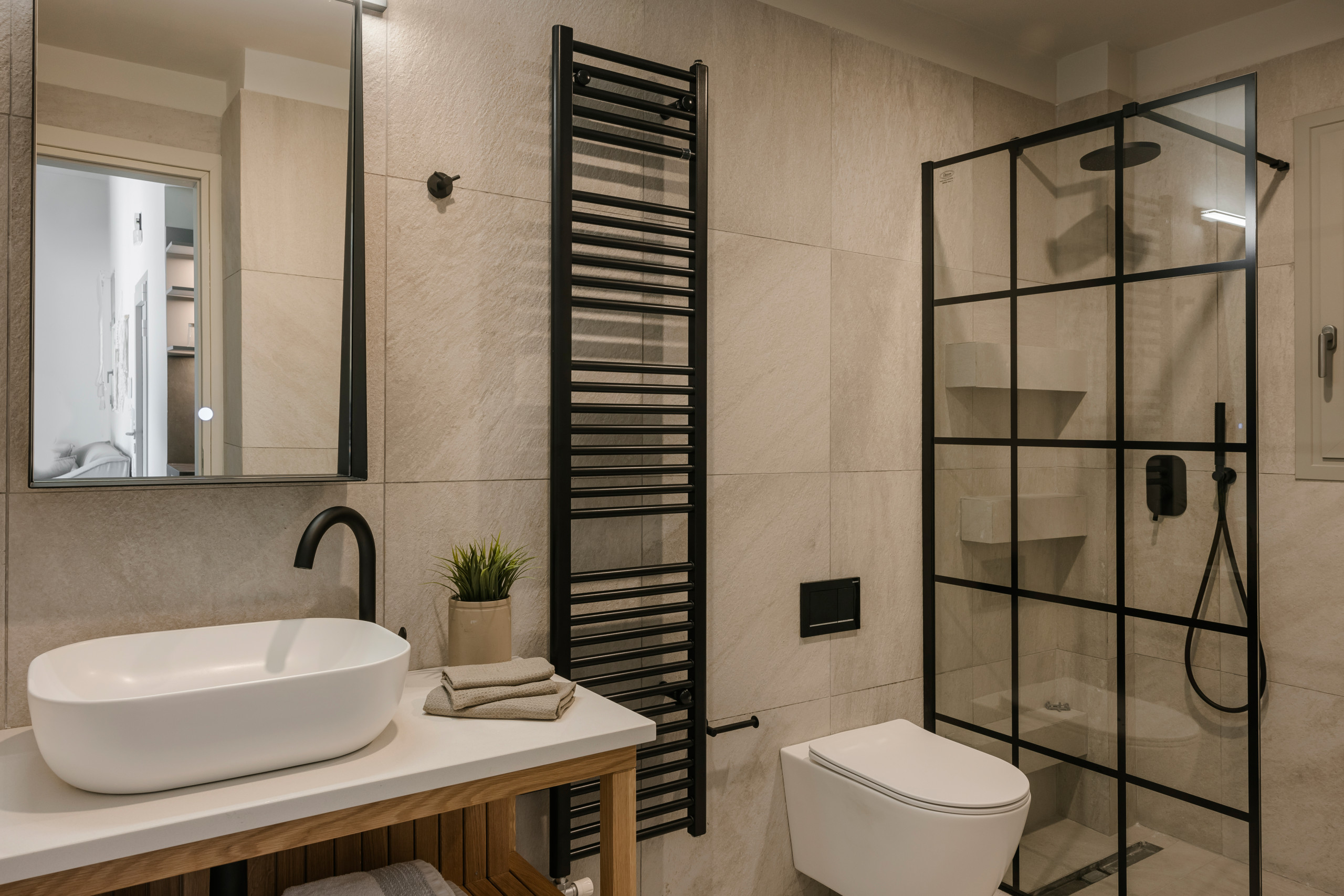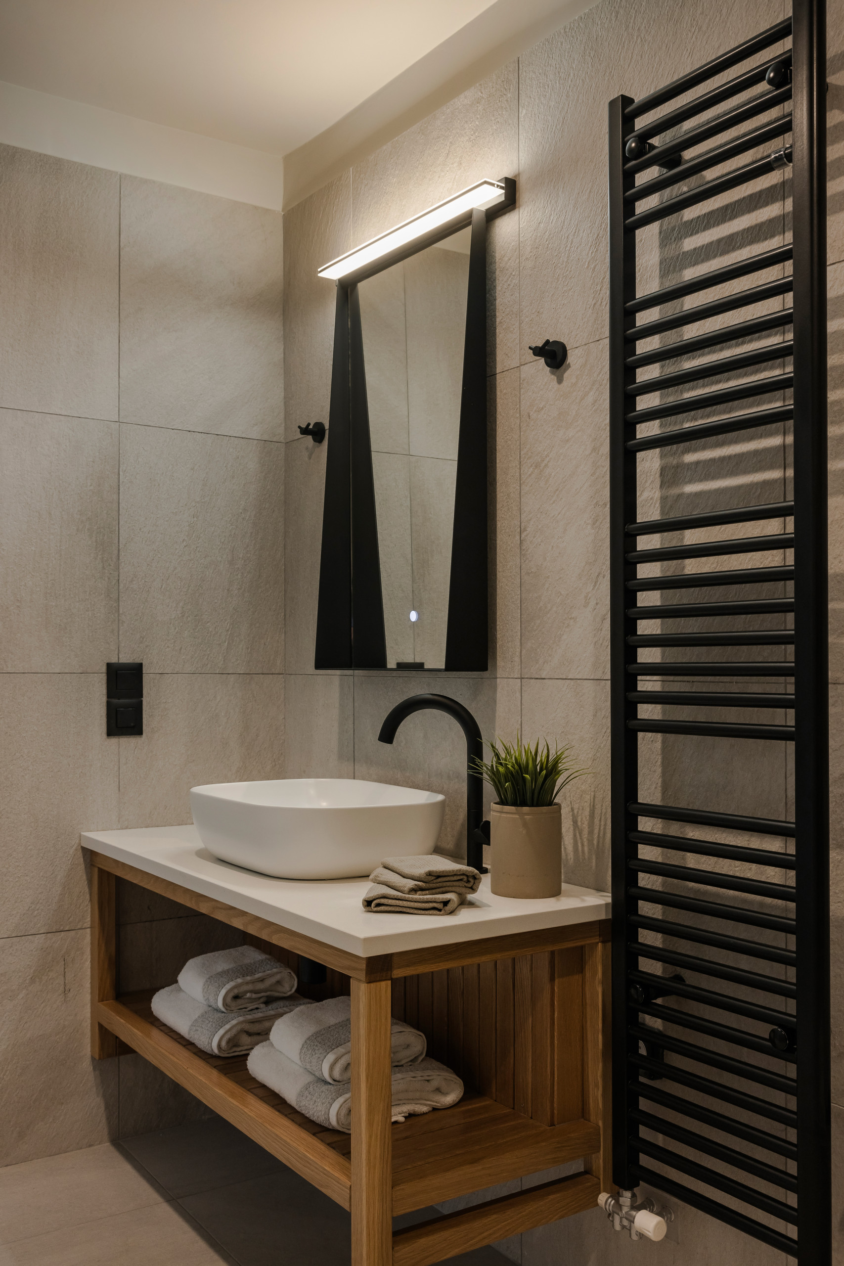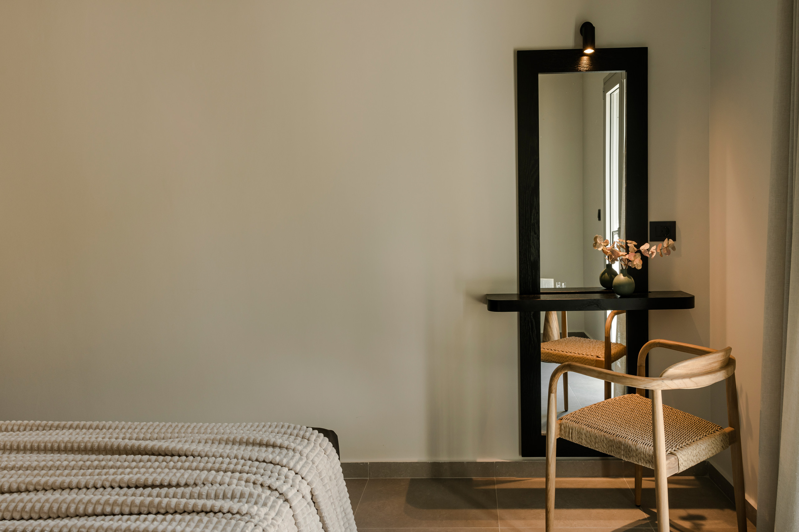 The king size bedroom also open out onto the terrace . The quality of the decor is second to none, boasting neutral shades of beige, grey and white and a charming minimalism that creates a calm, peaceful ambience. The shower room has a great quality with black chrome and glass. The swimming pool and terrace have lawn chairs to relax among the trees. The swimming pool also benefits from the use of eco – non chlorine products.