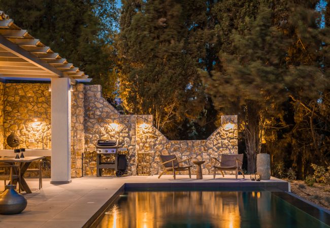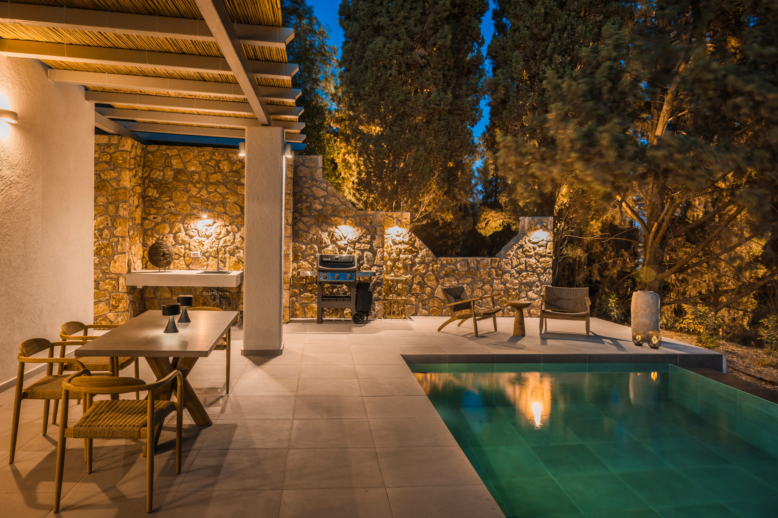 Brand new for 2023, this fabulous villa is a perfect place to relax among the Kefalonian nature! You can admire the stars laying in bed, eat breakfast on your private terrace and feel the tranquility immersed in this green ocean of trees !